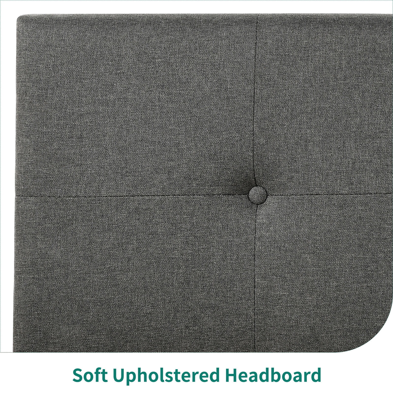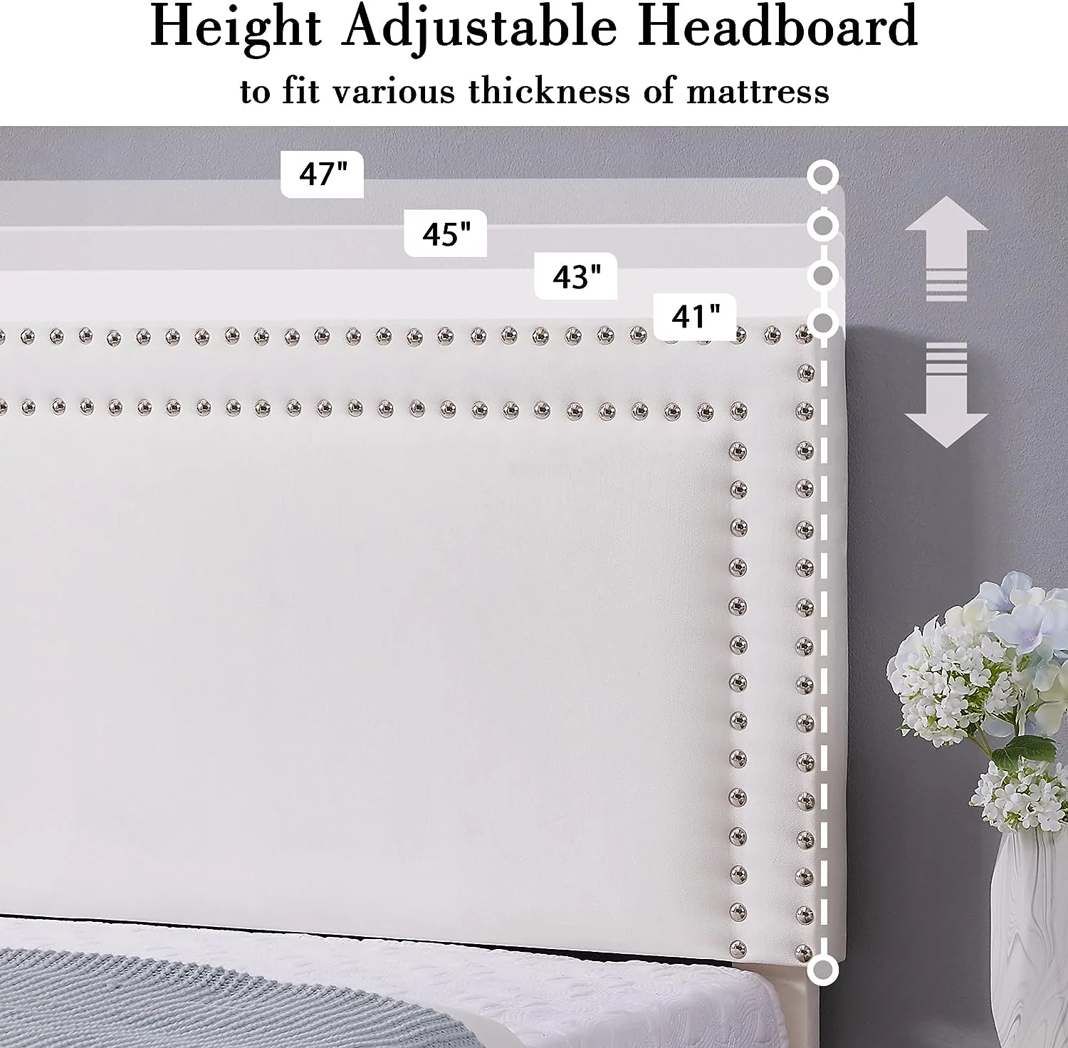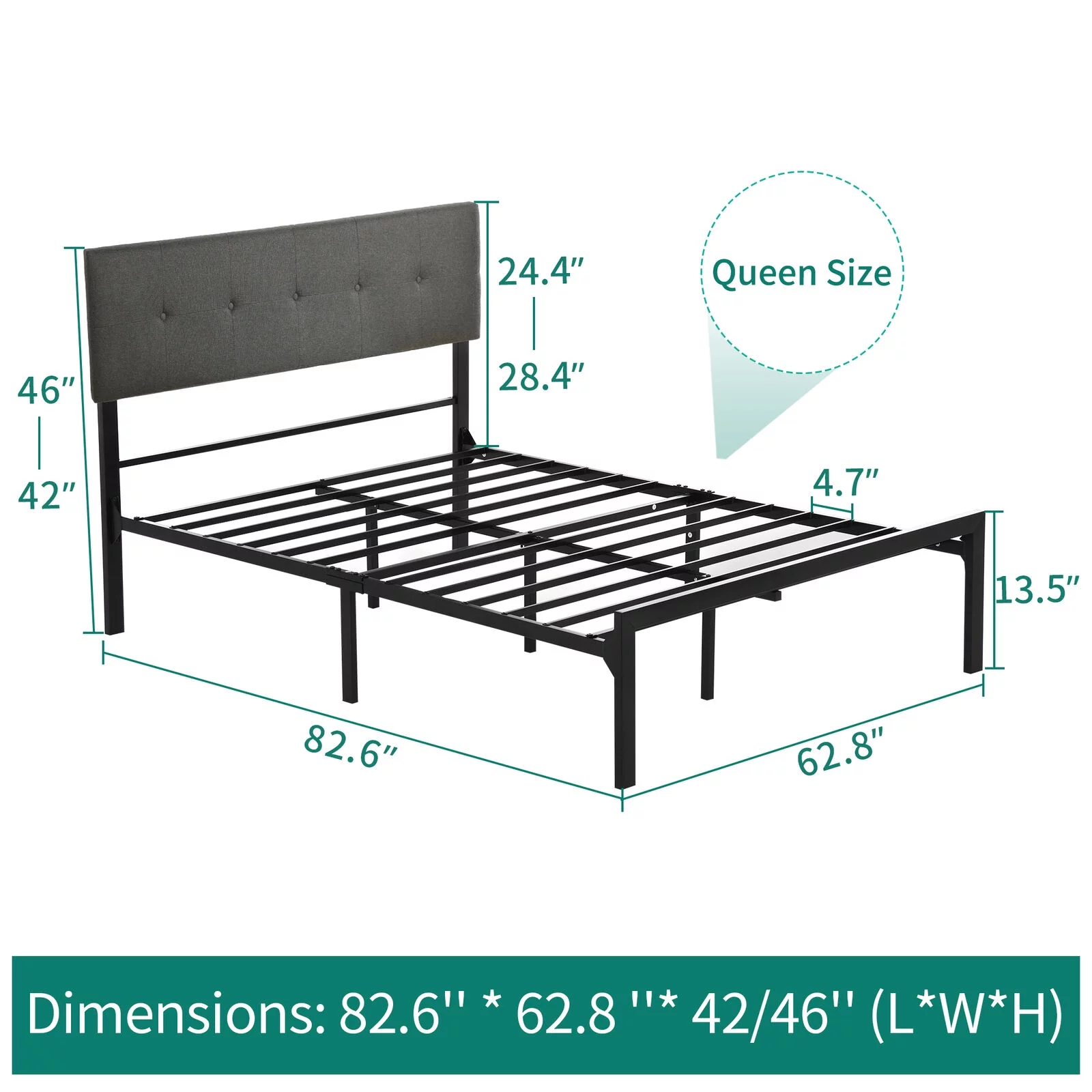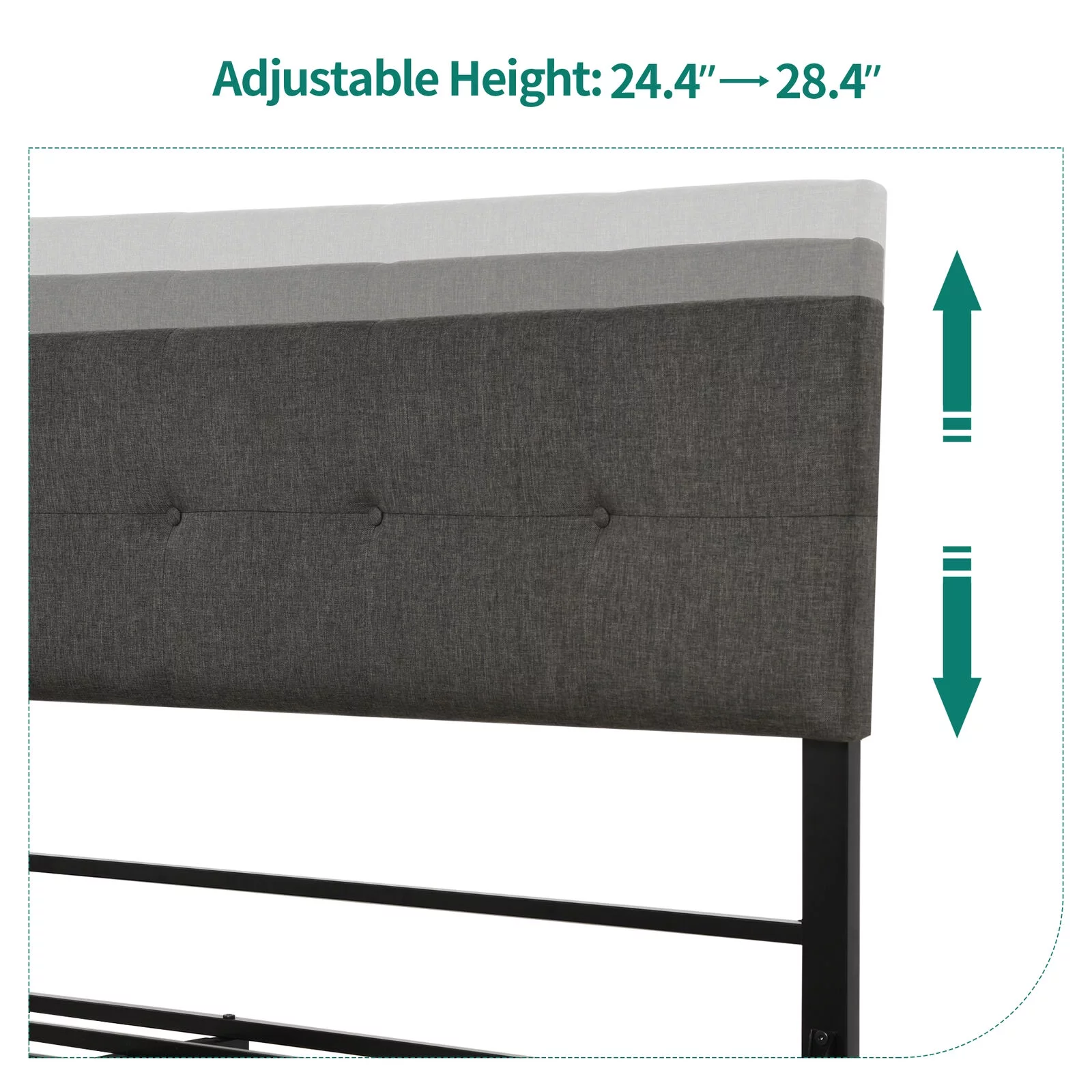 Dextrus Upholstered Platform Bed Frame with Adjustable Headboard Metal Slat, No Box Spring Needed (Queen)