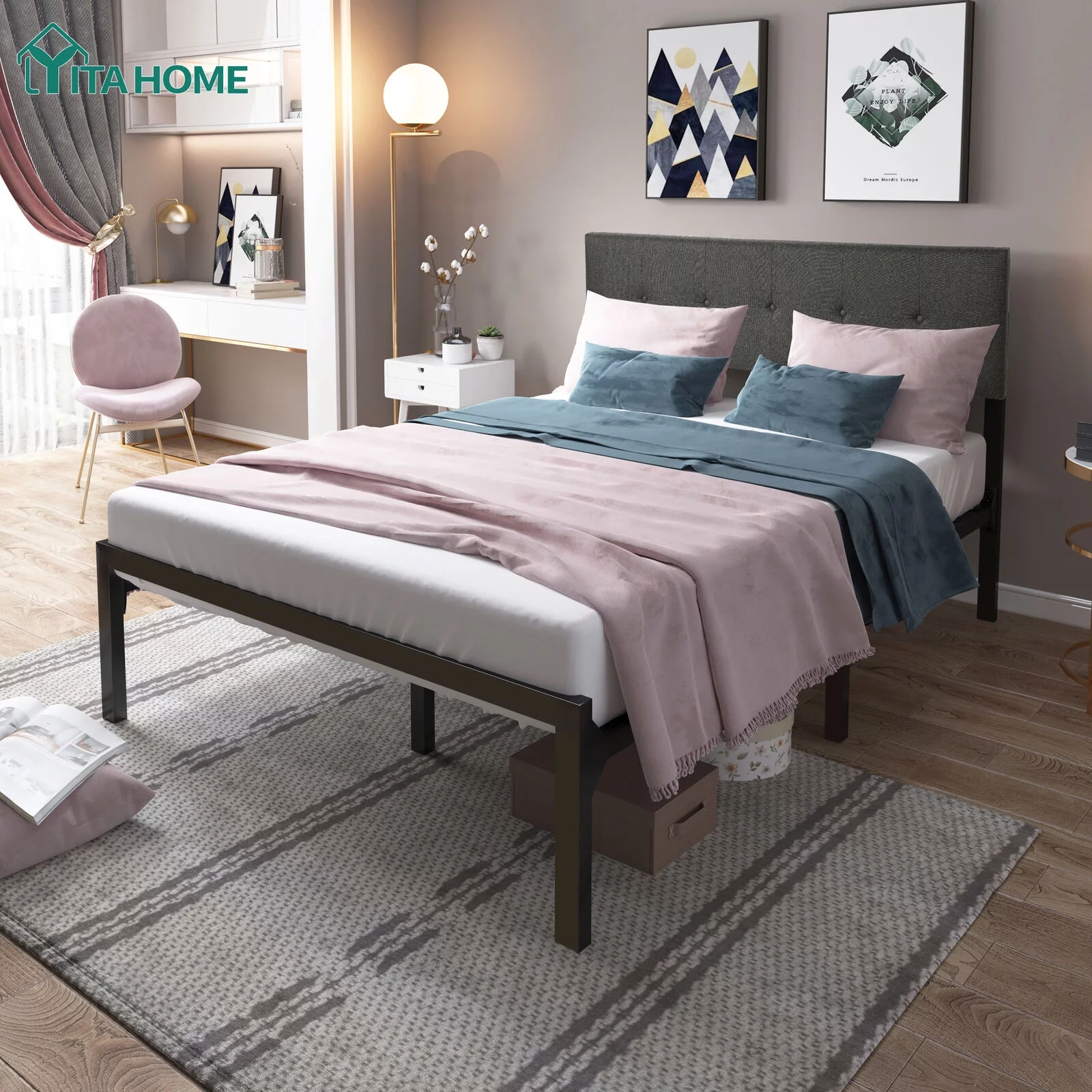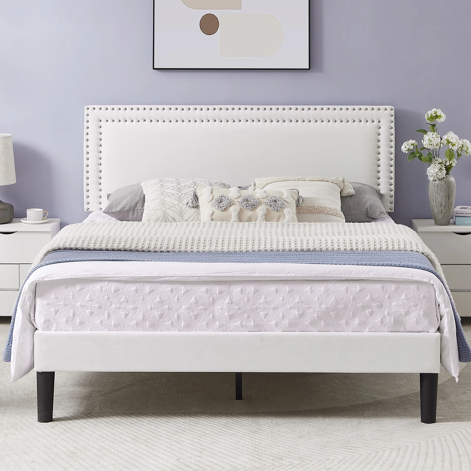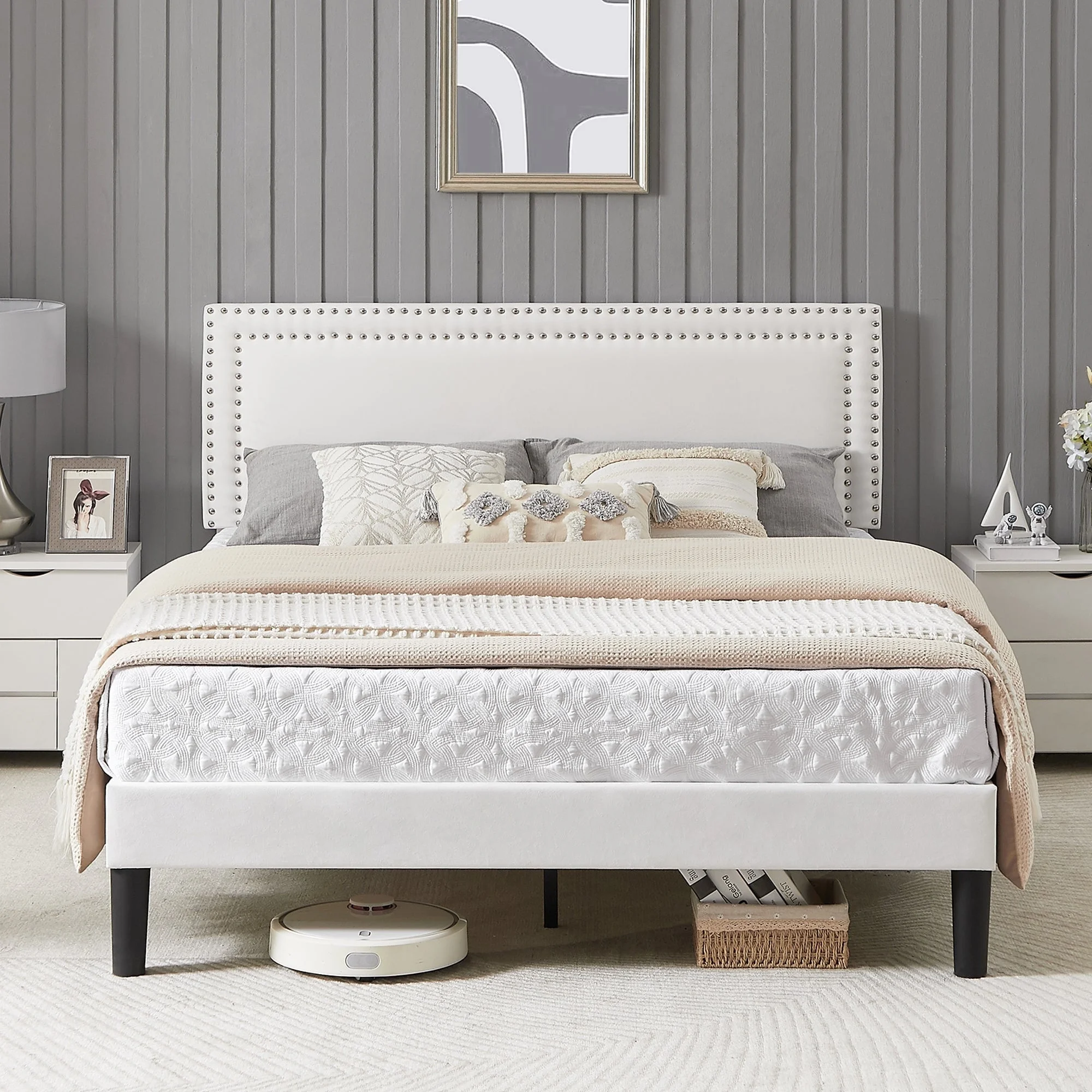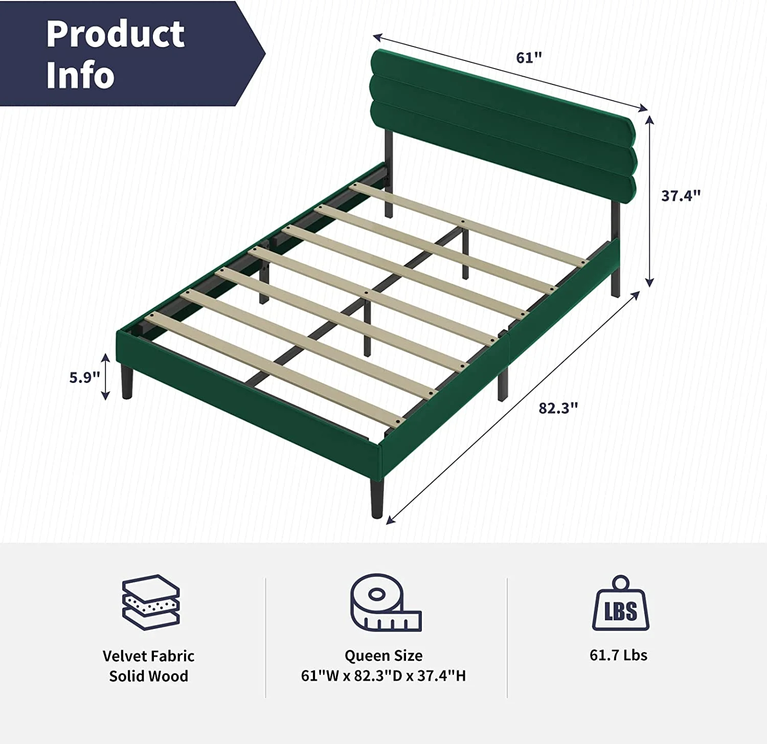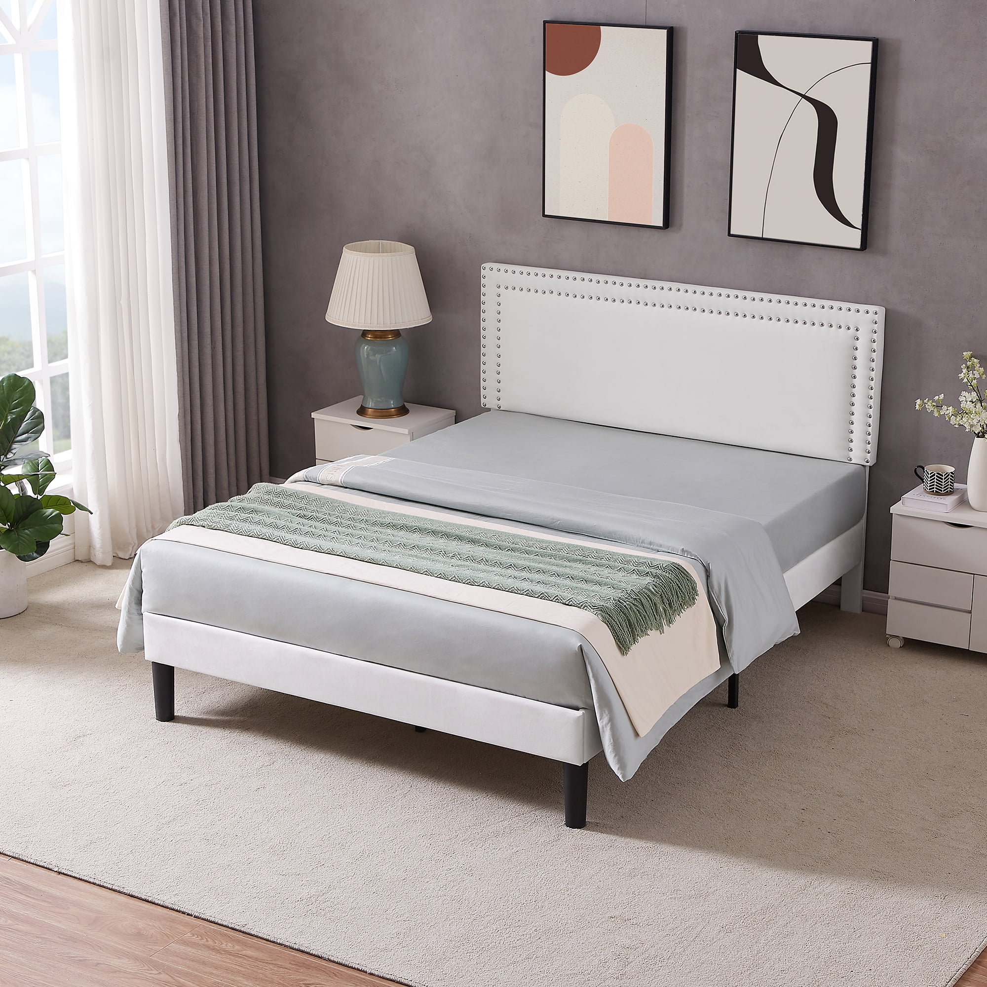 Dextrus Upholstered Platform Bed Frame with Adjustable Headboard Metal Slat, No Box Spring Needed (Queen)