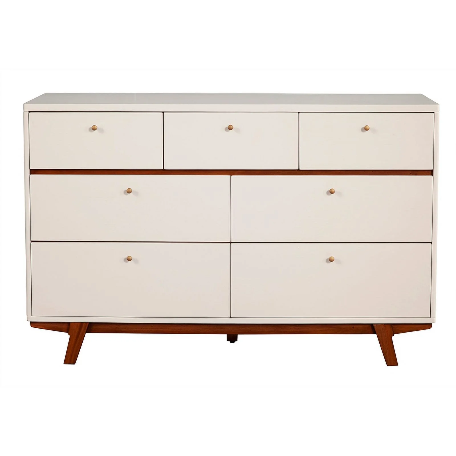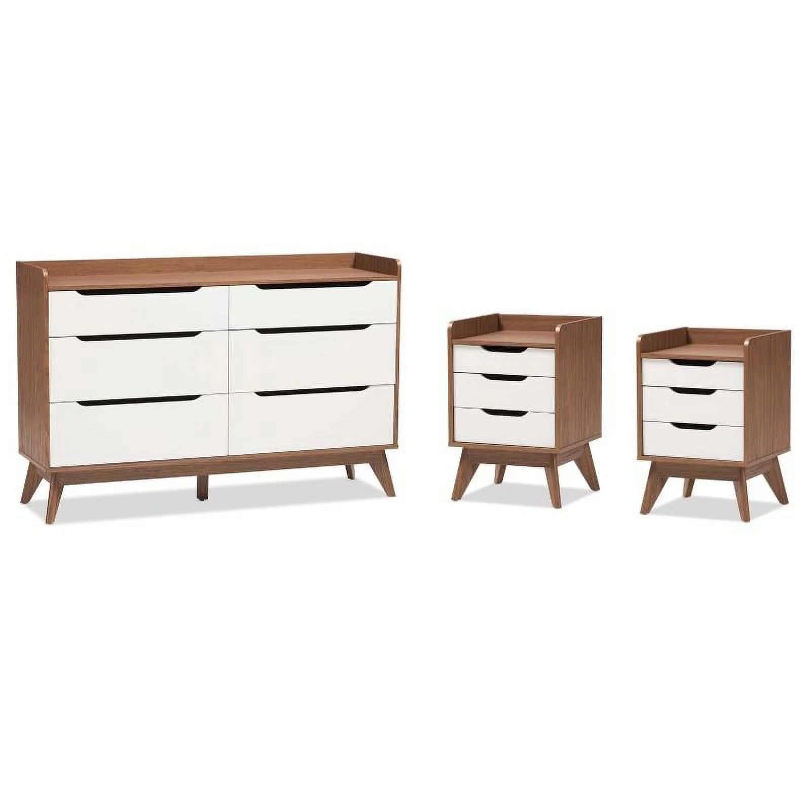 Home Square 2 Piece Bedroom Set with Dresser and Nightstand in White and Walnut