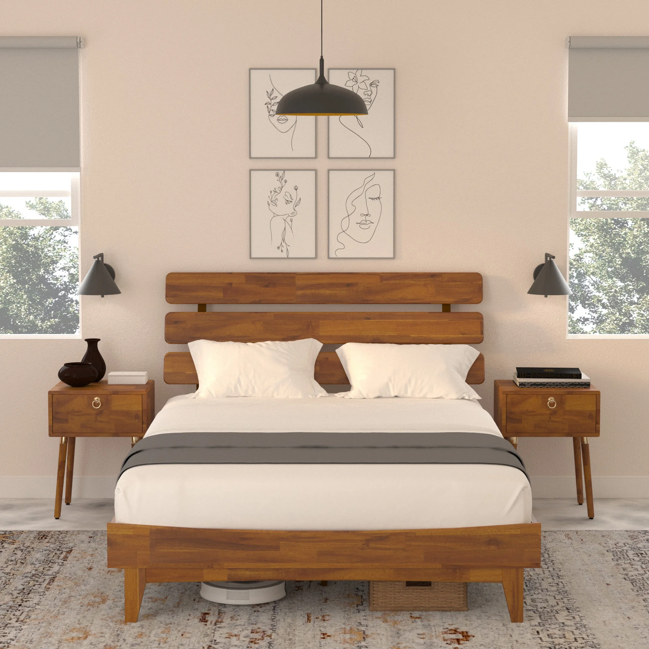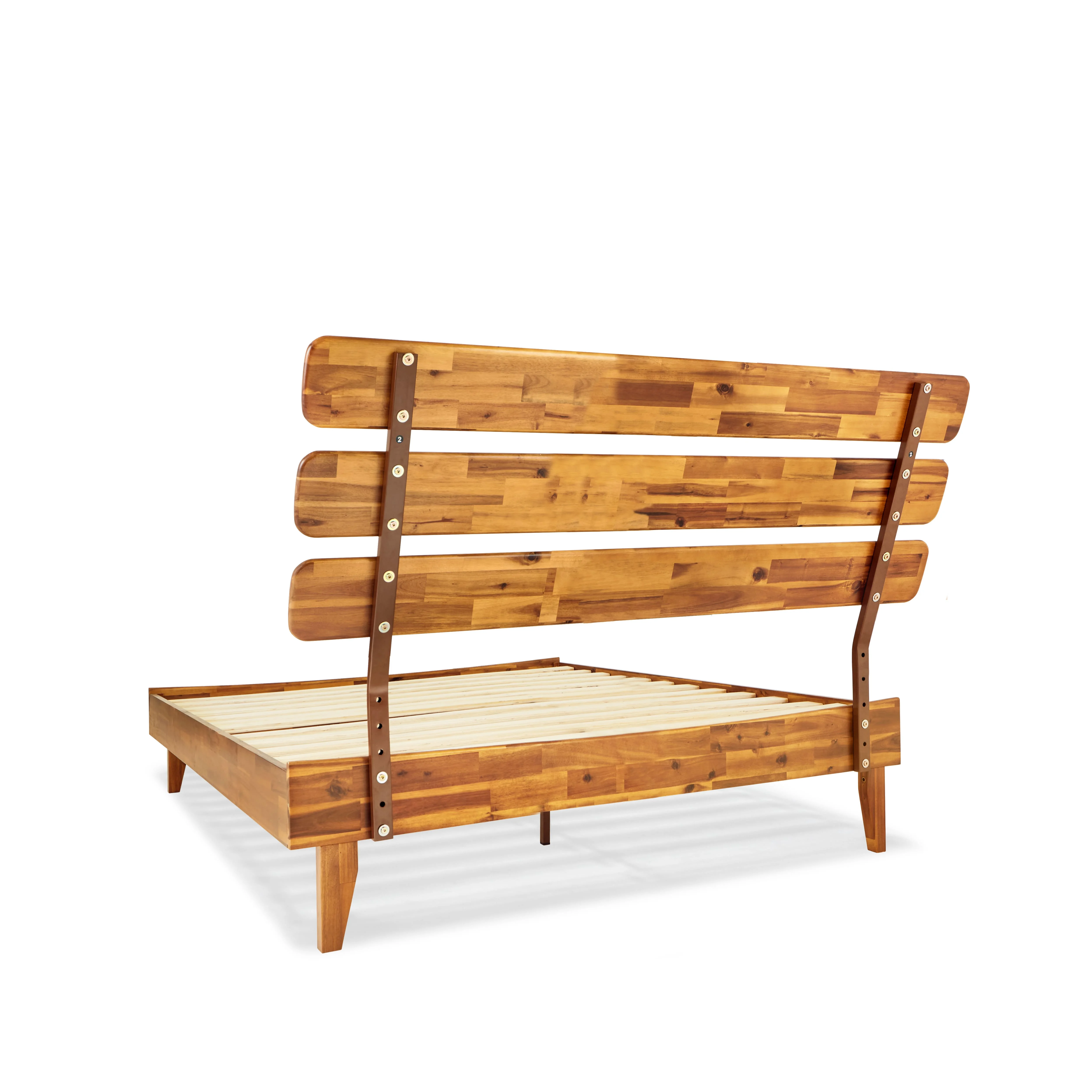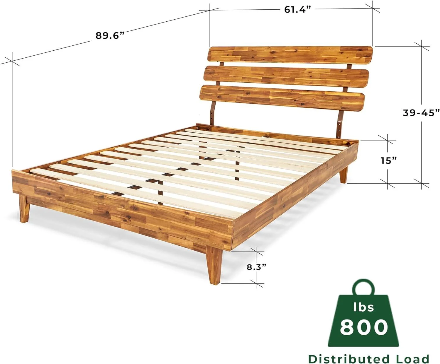 BME Dalen 45" Bed Frame Queen, Adjustable Headboard, Mid-Century, Solid Wood, Caramel