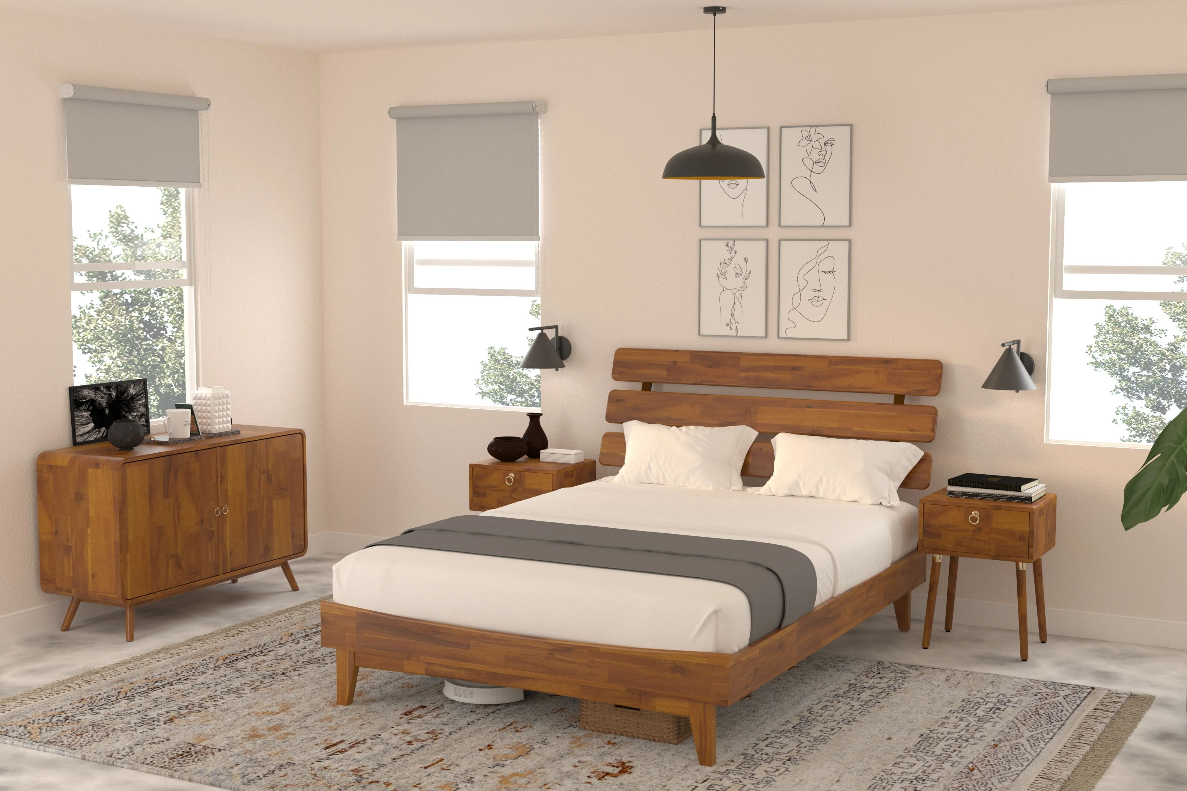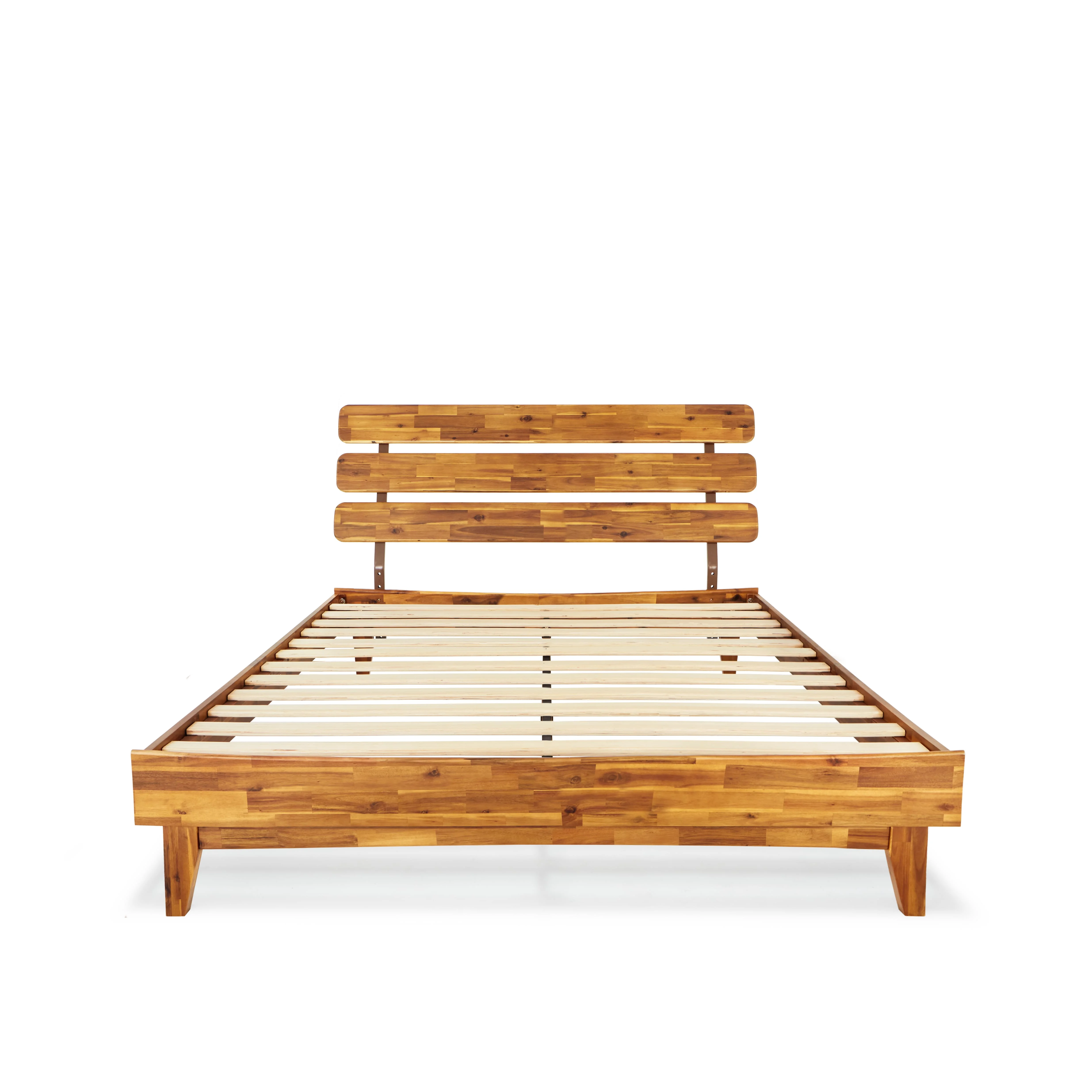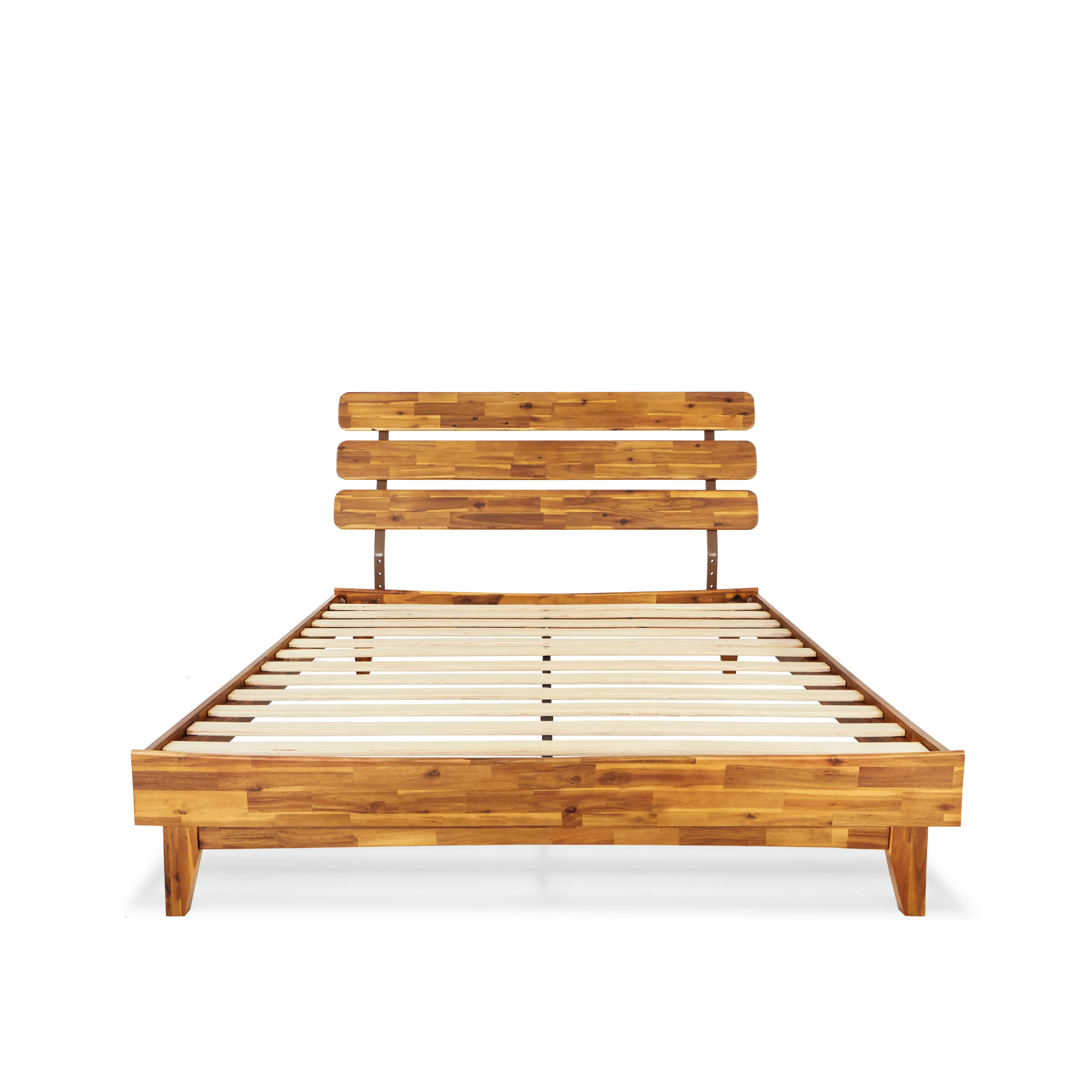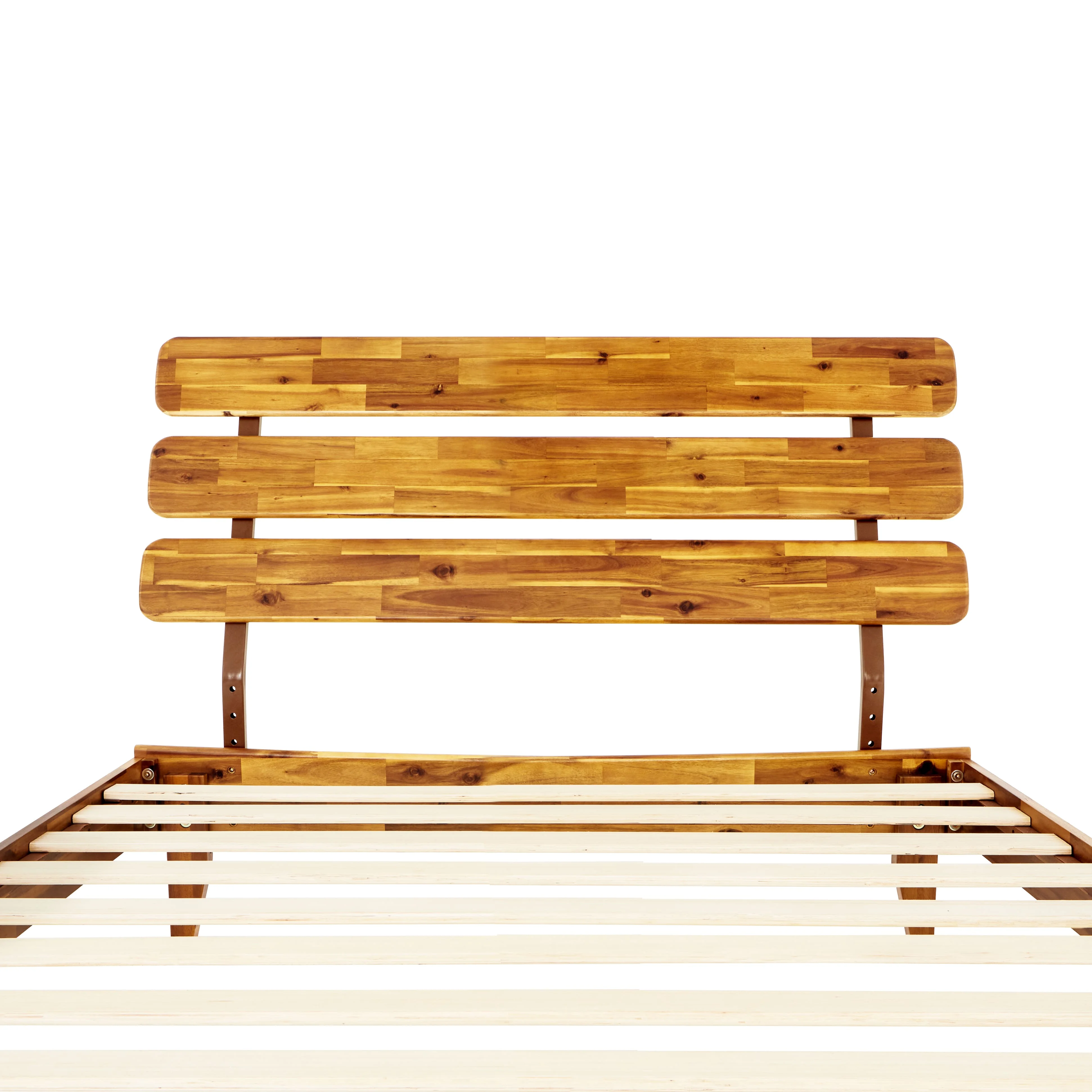 BME Dalen 45" Bed Frame Queen, Adjustable Headboard, Mid-Century, Solid Wood, Caramel