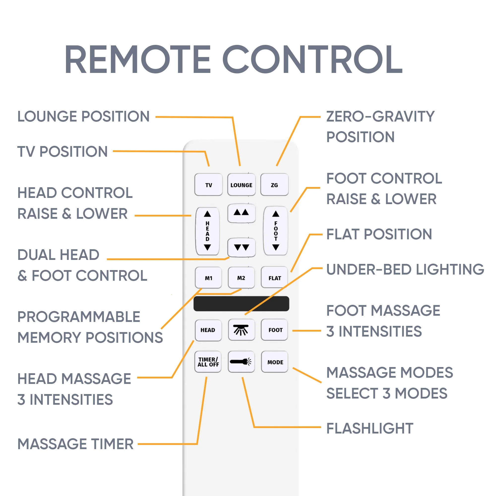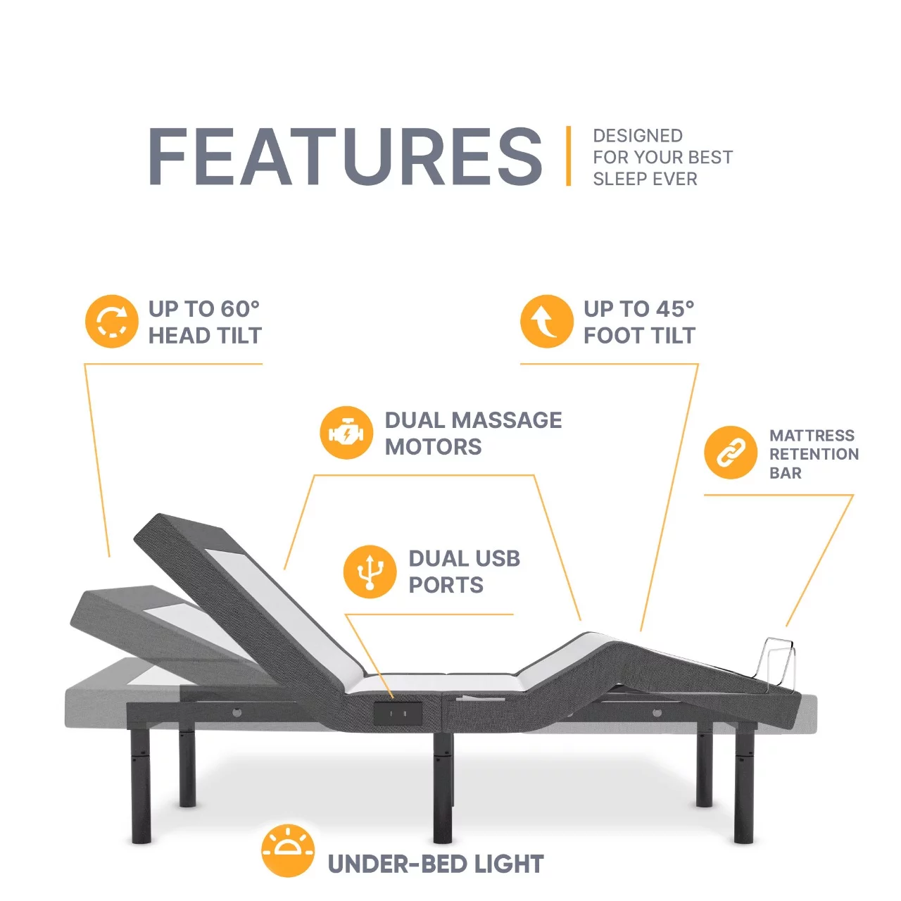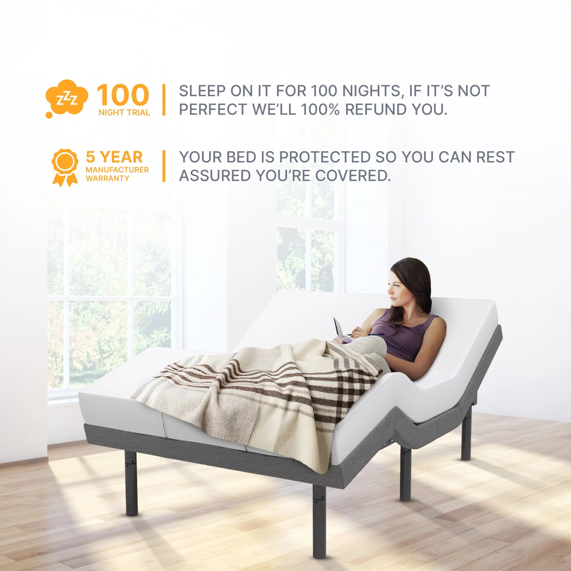 Renanim Adjustable Bed with Massage Head & Foot Incline - Remote, USB - Queen