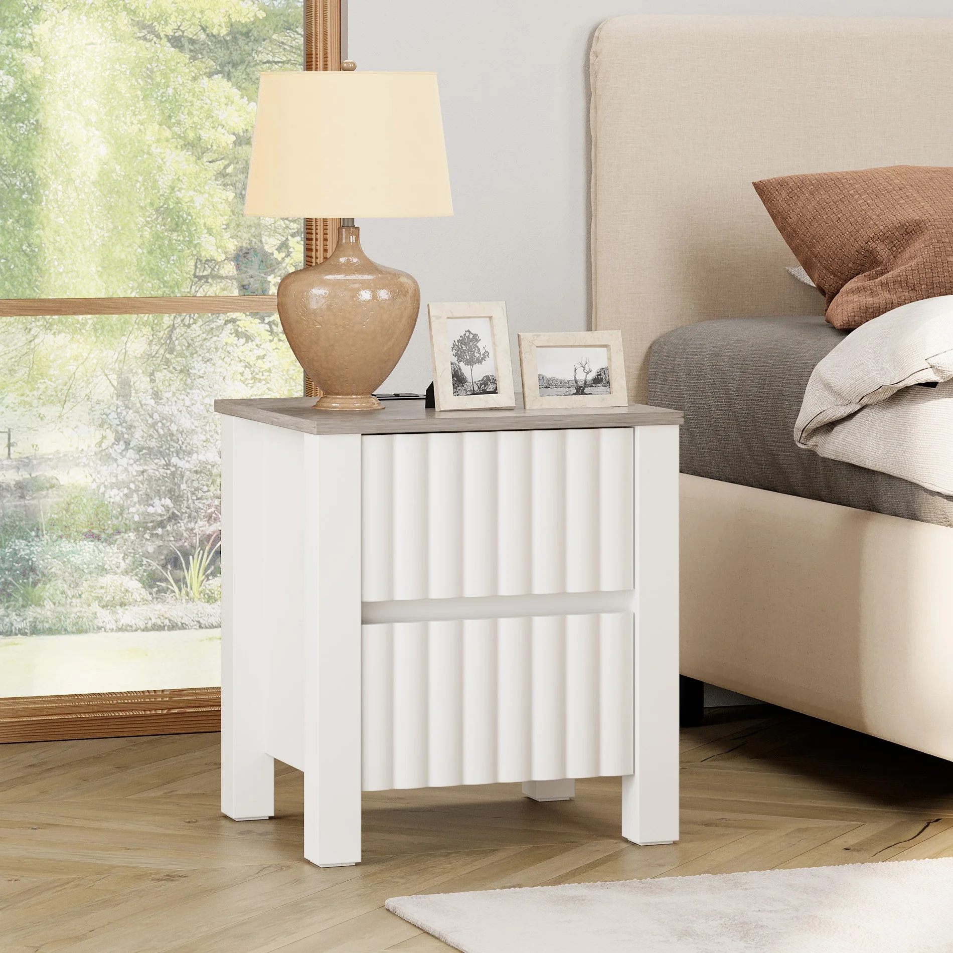 3PC Set with 1 Nightstand 1 Double Dresser and 1 Chest in Oak and White