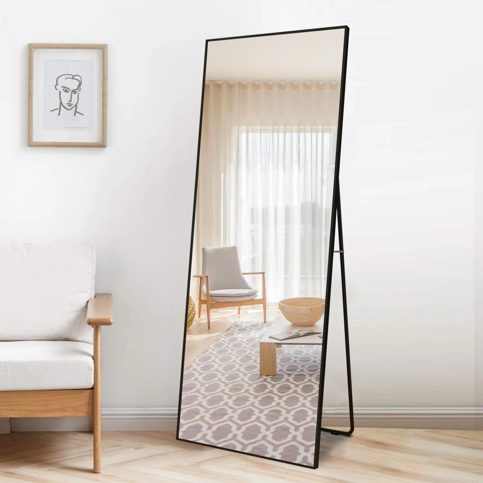 HONGGE Rectangular 64"x22" Full Length Mirror Body Dressing Floor Standing Mirrors, Black