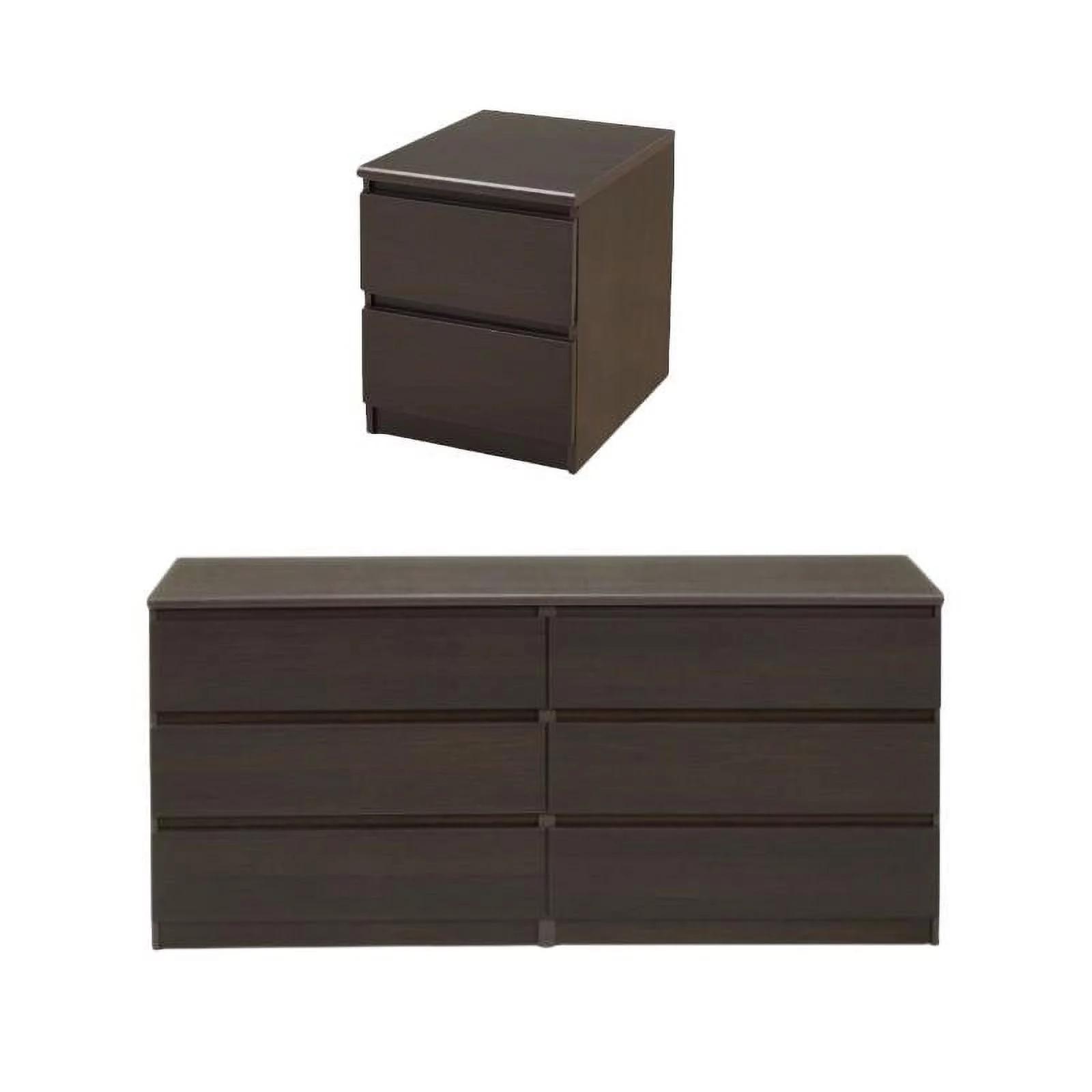 Home Square 2-Piece Furniture Set with Nightstand and 6-Drawer Double Dresser