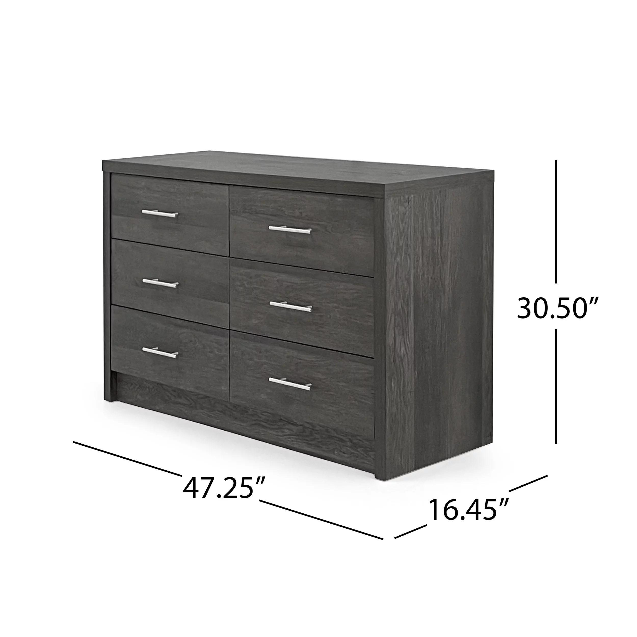 6 Drawer Double Dresser and 1 Drawer Nightstand Bedroom Set in Gray Oak