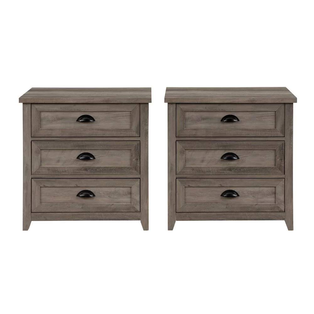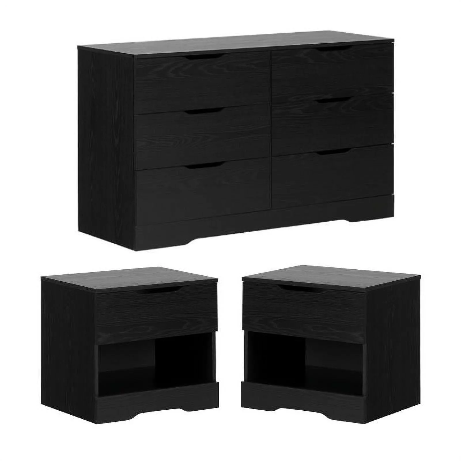 Home Square 3 Piece Bedroom Set with Dresser and Nightstands in Black Woodgrain