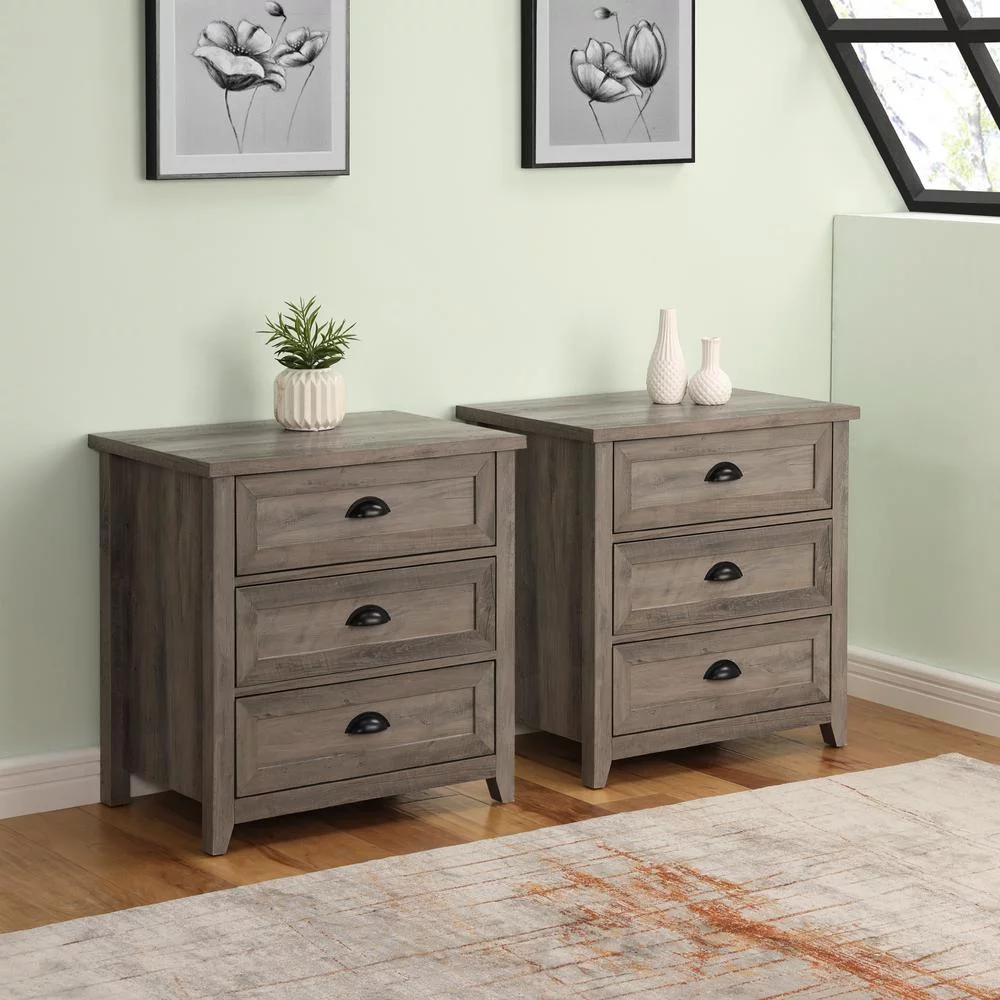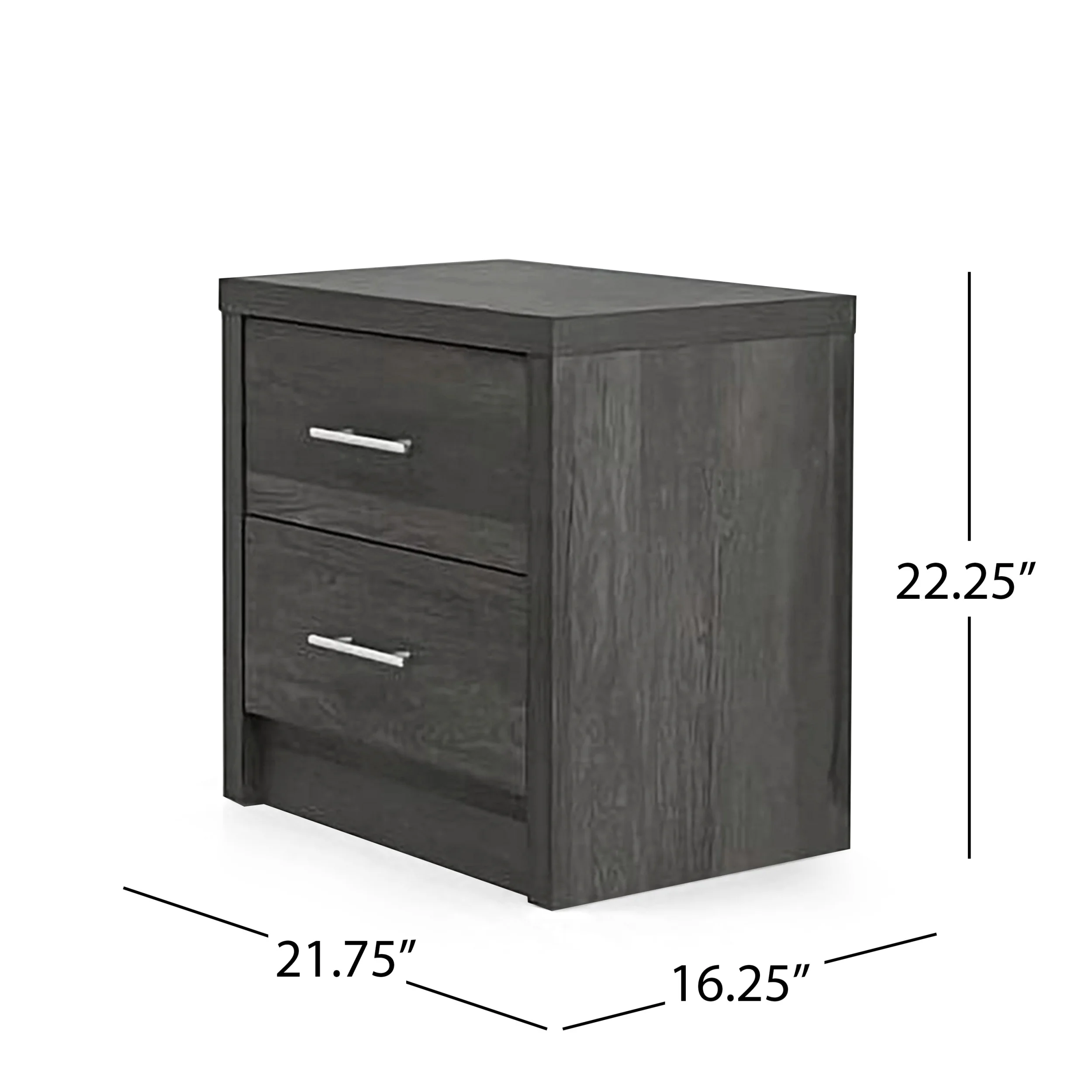 Noble House Alachua Faux Wood 3 Piece Double Dresser and Nightstand Bedroom Set, Gray Maple
