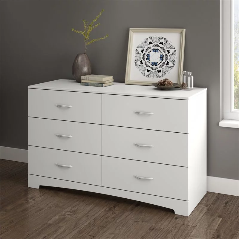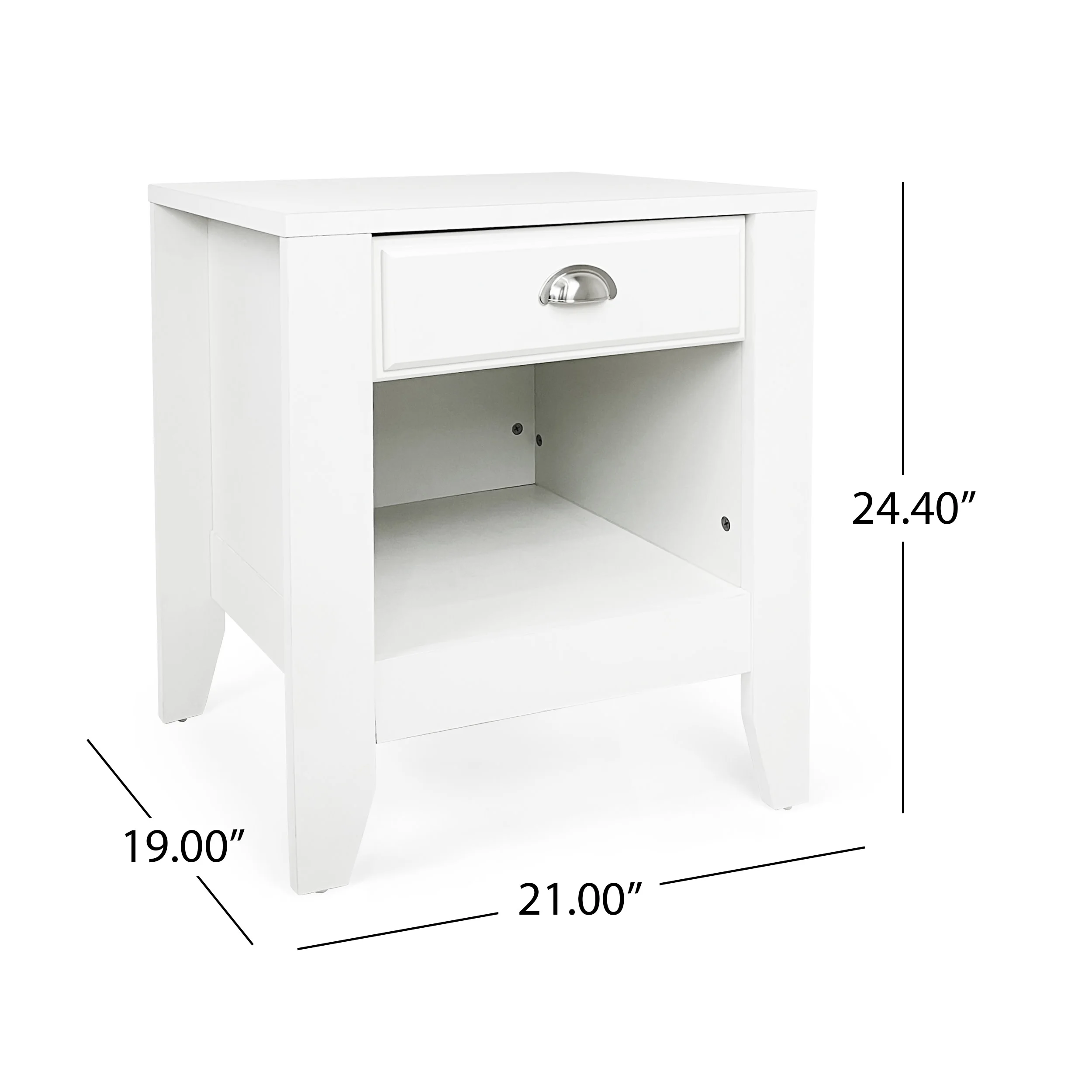 Noble House Bellic Faux Wood 3 Piece Double Dresser and Nightstand Bedroom Set, White