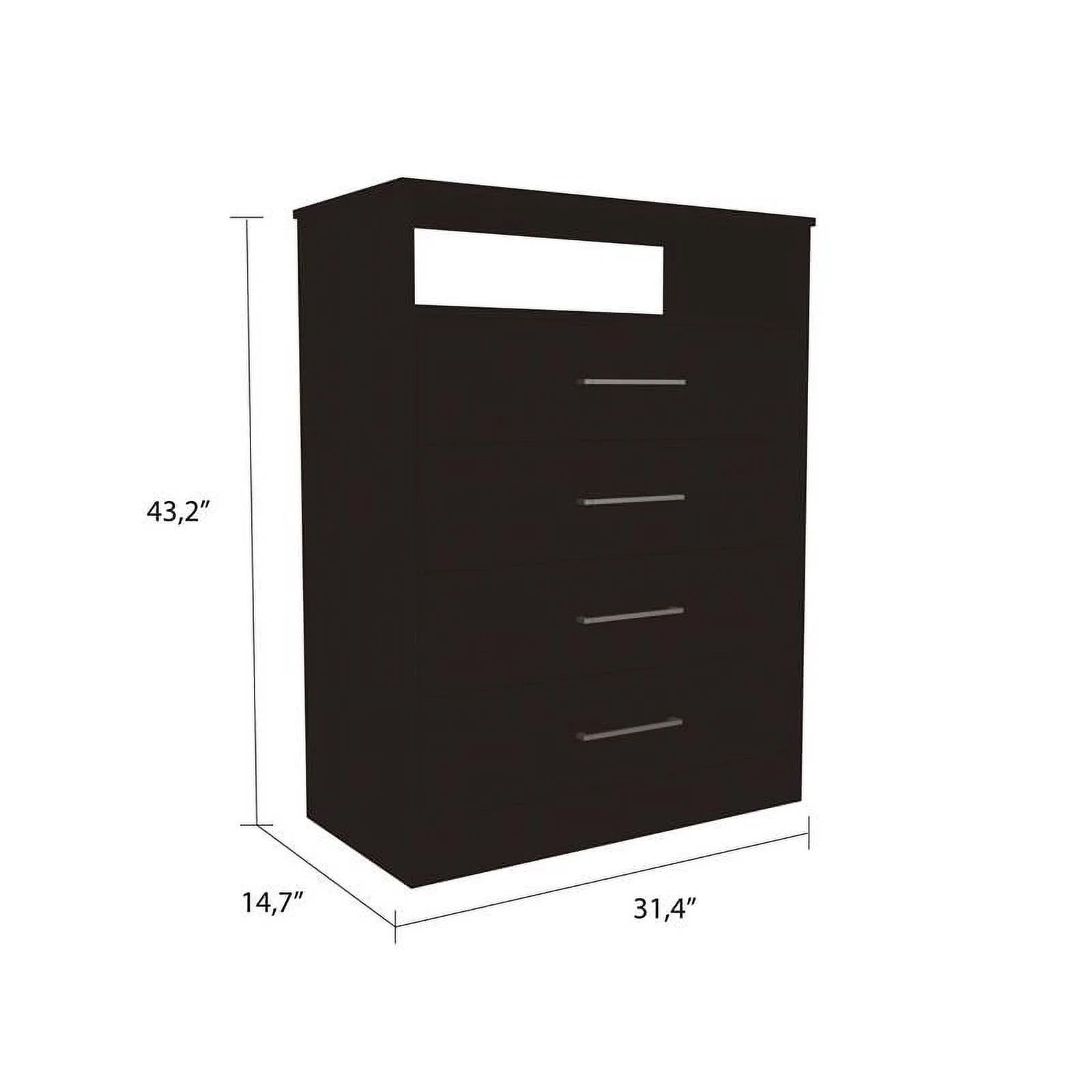 Home Square 4 Piece Bedroom Set with Dresser 2 Nightstands and Chest in Walnut