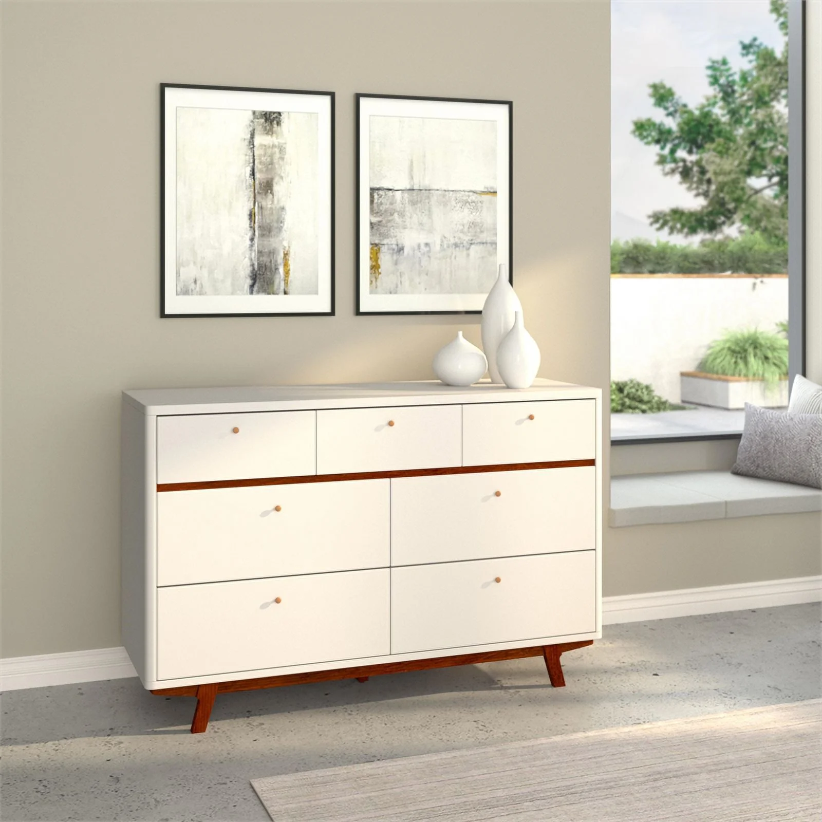 Home Square 3-Piece Set with 2 Nightstands & 7 Drawer Dresser in White