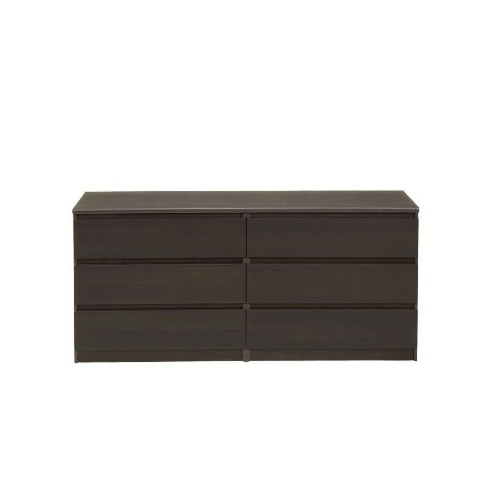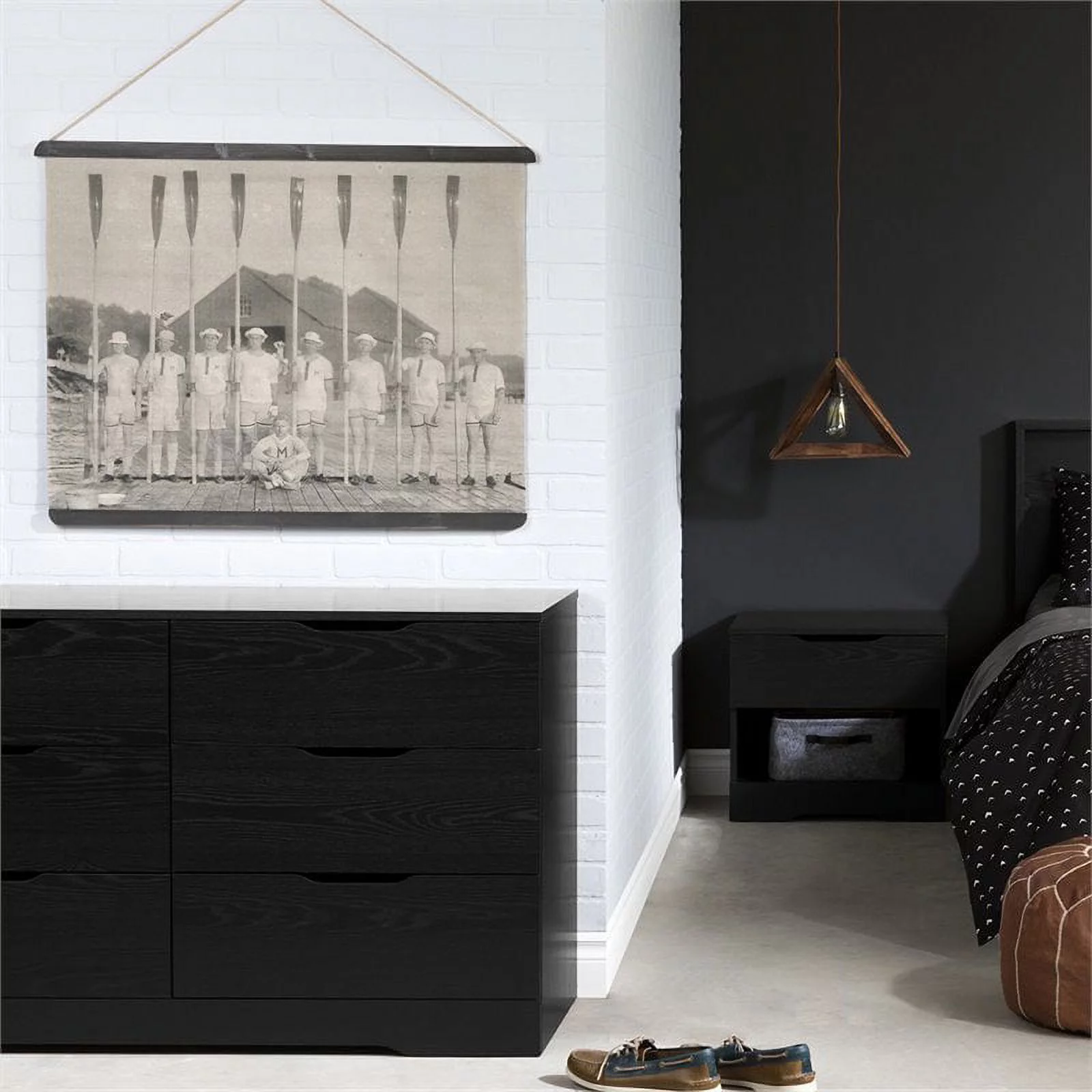 Home Square 3-Piece Set with 2 Nightstands and 6 Drawer Dresser in Black Oak
