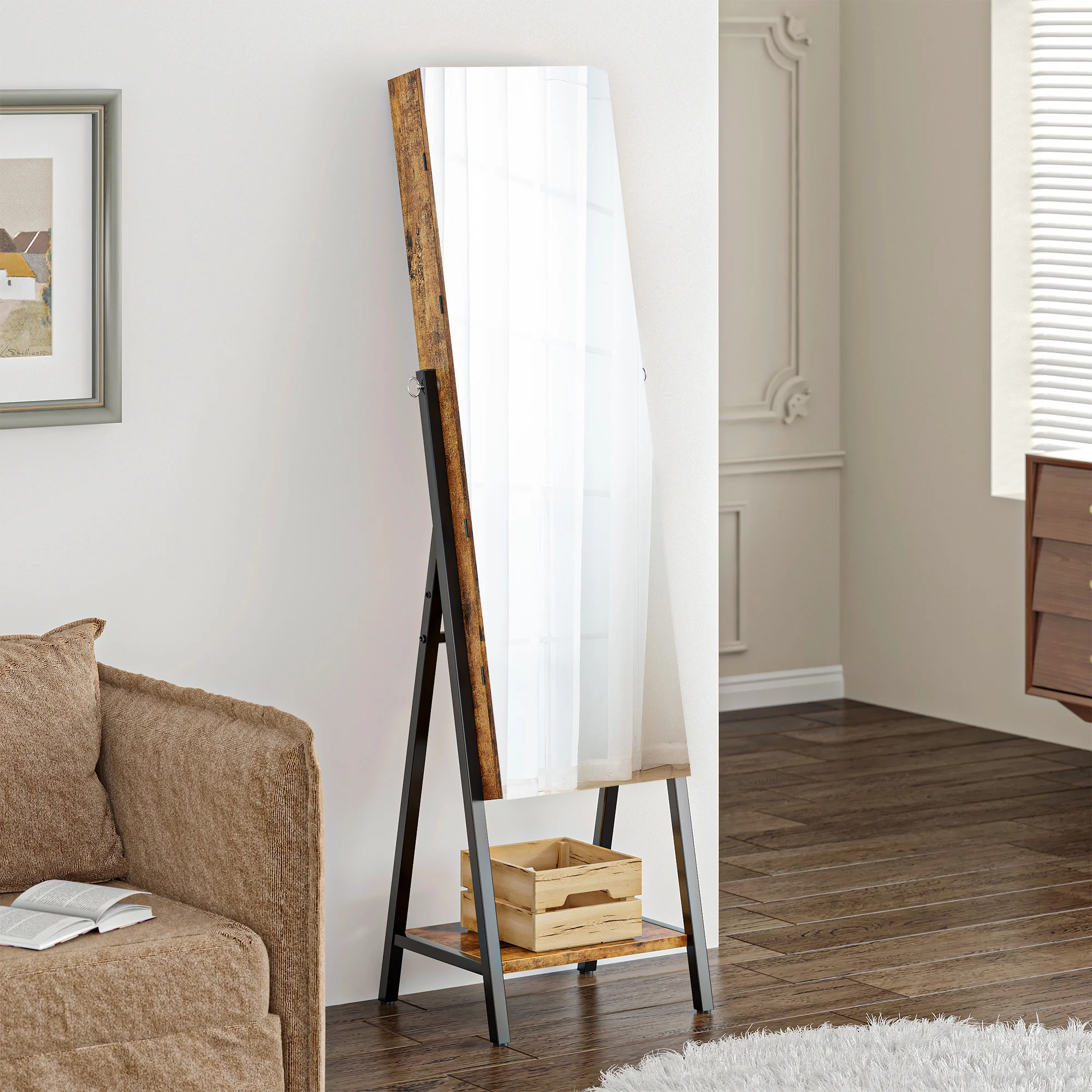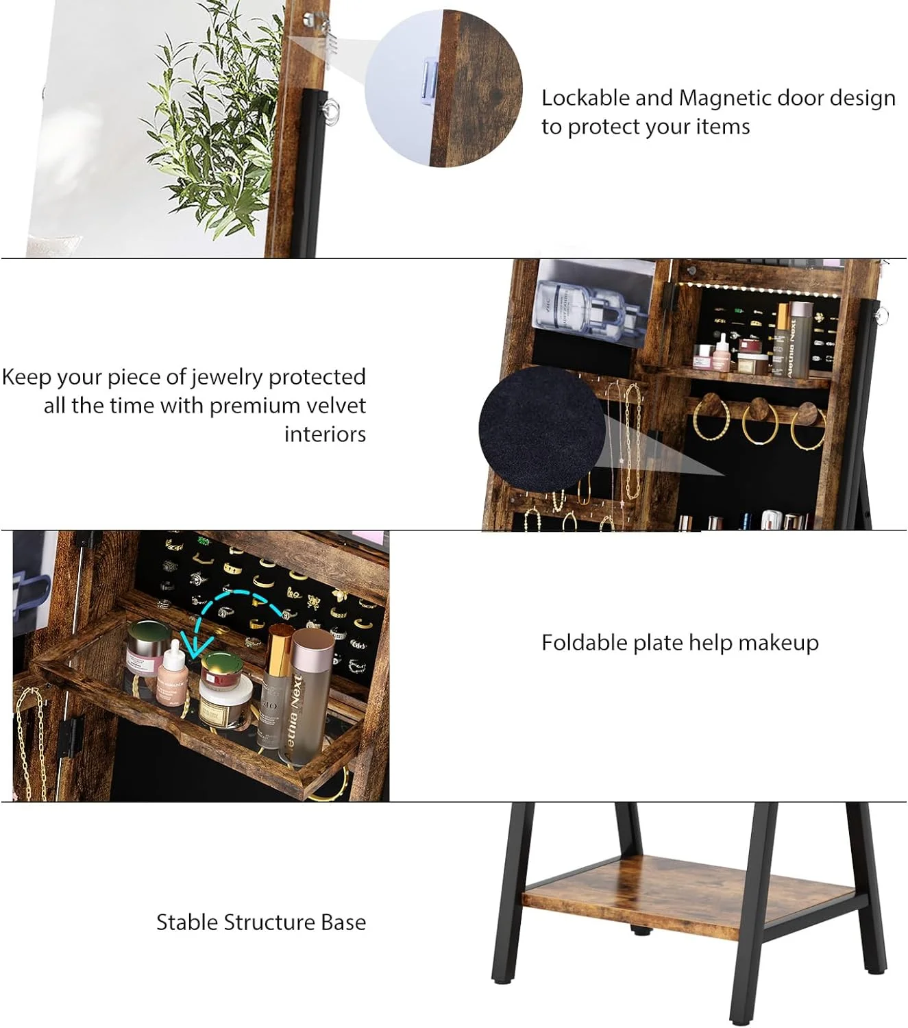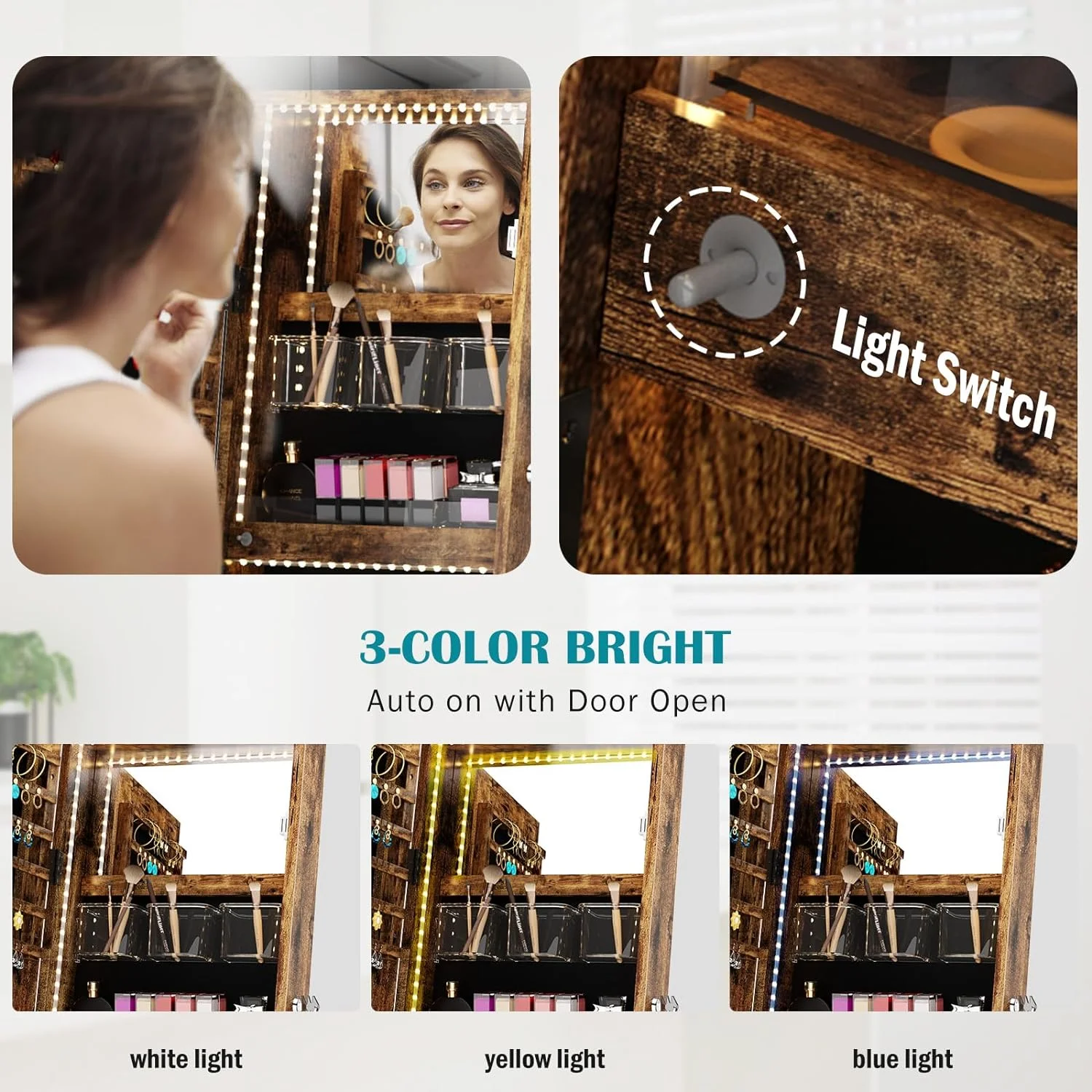 Soges Full Mirror with Stand, Cheval Mirror Cabinet, Full Length Dressing Floor Mirror with LED light Belt,Brown