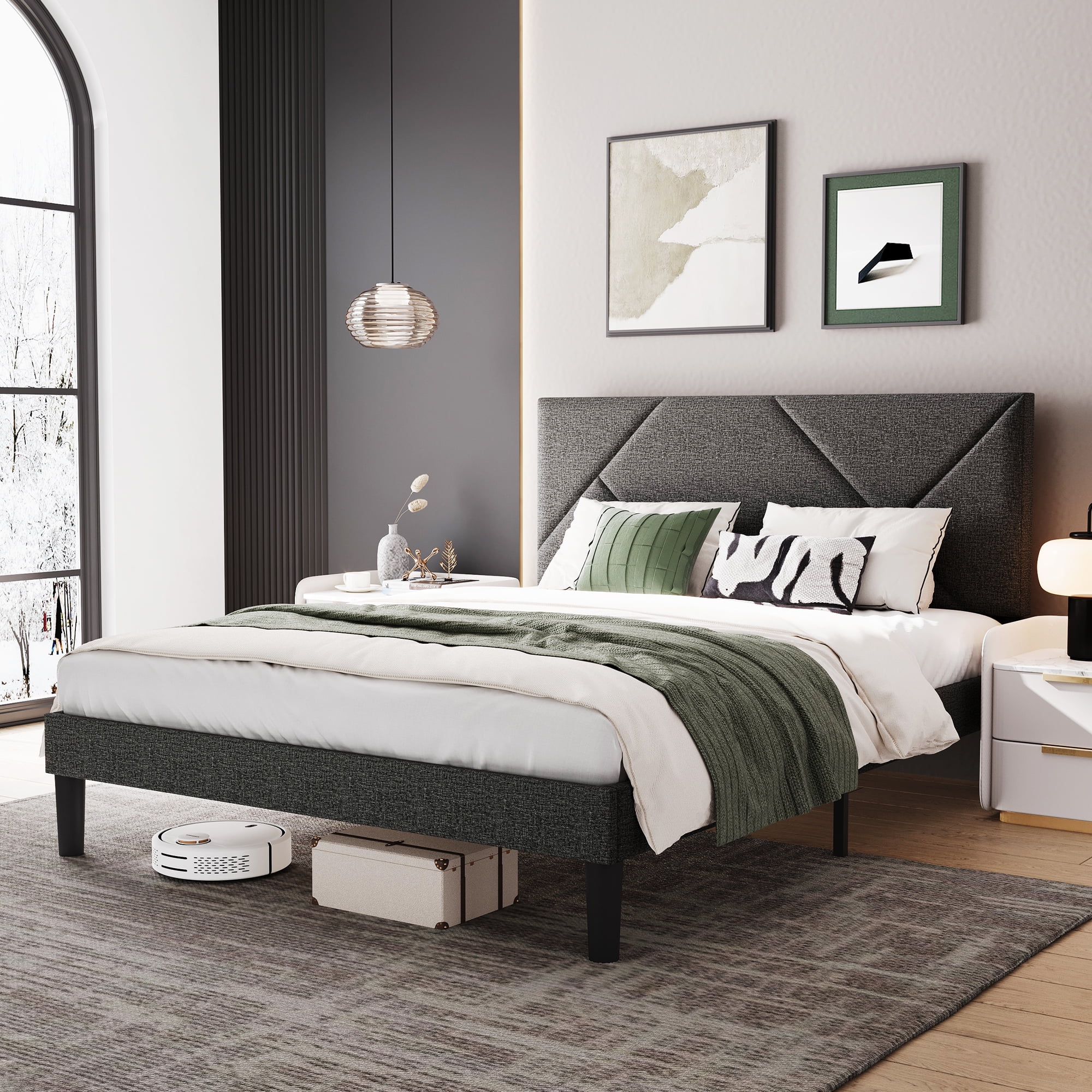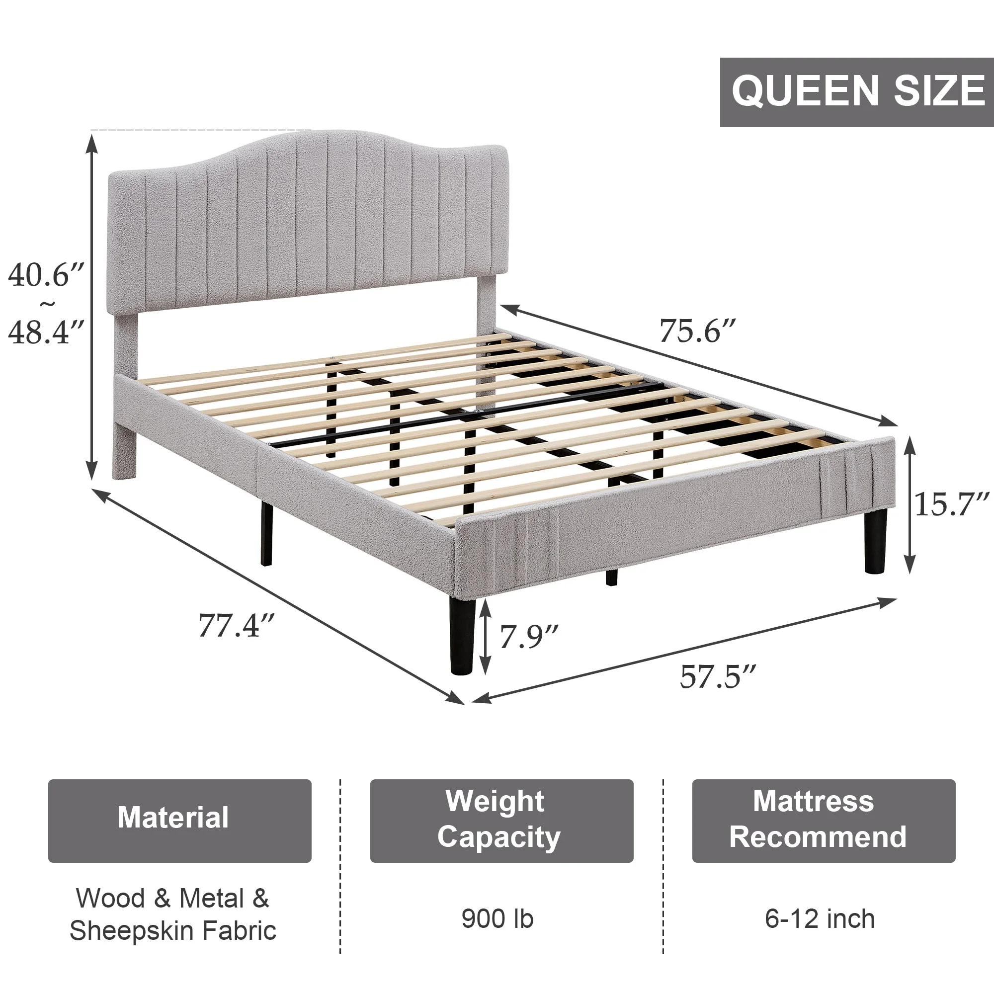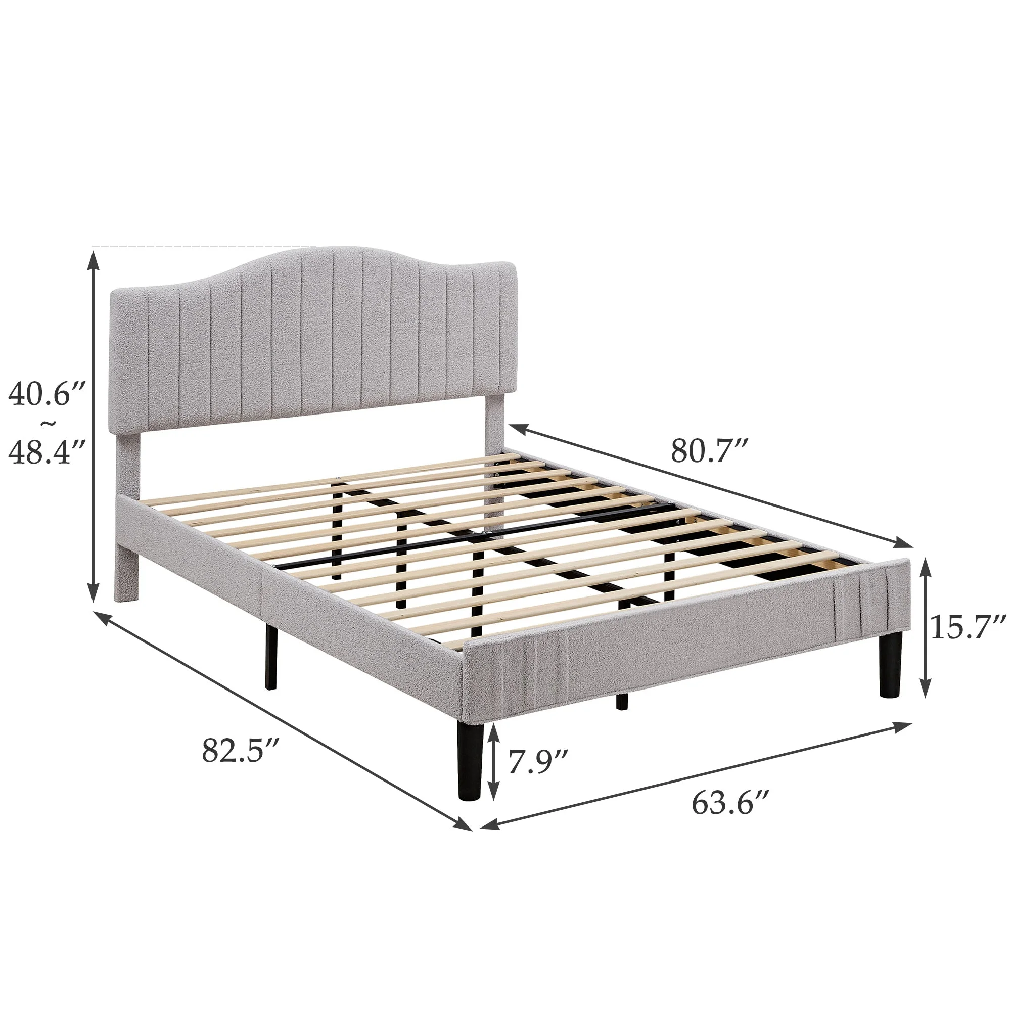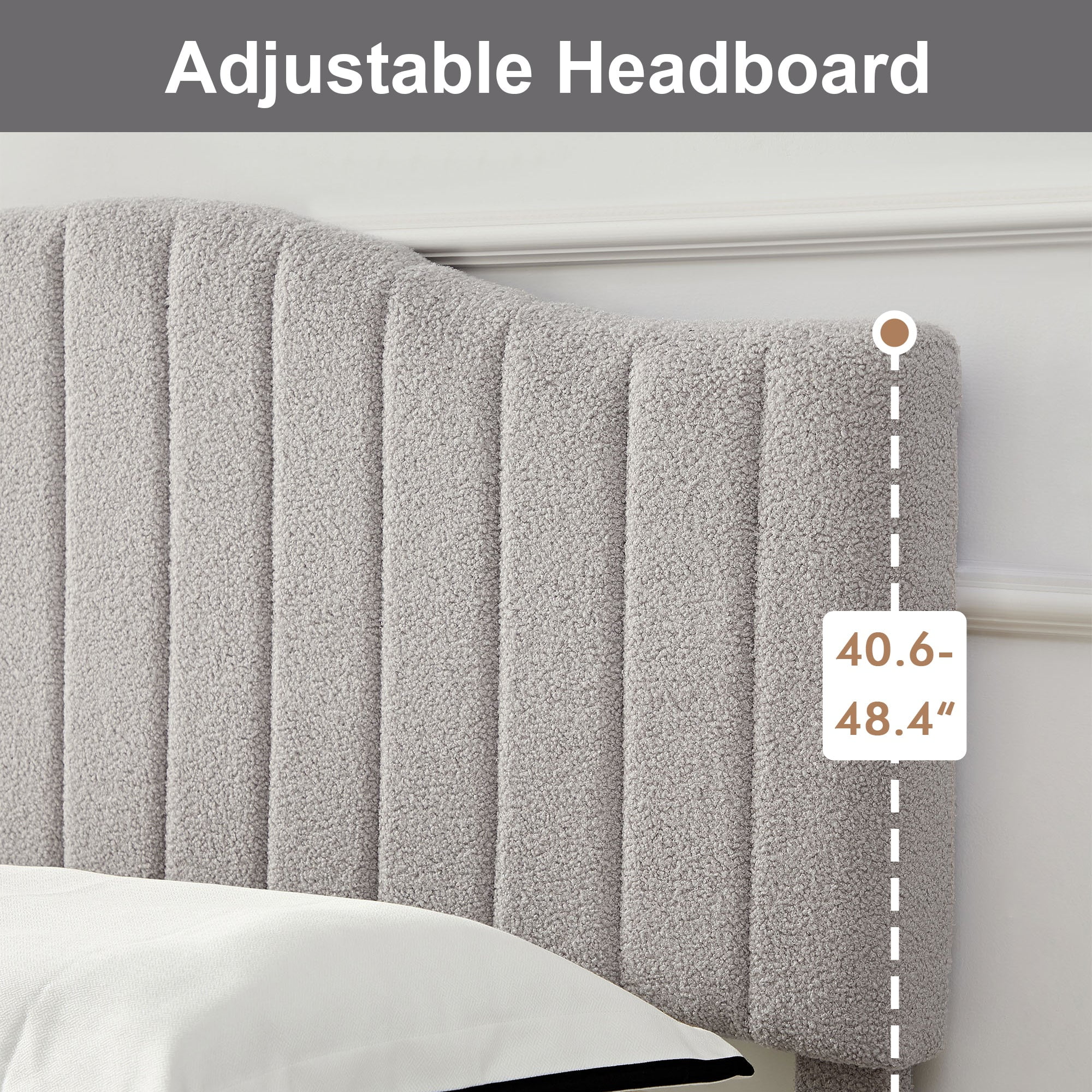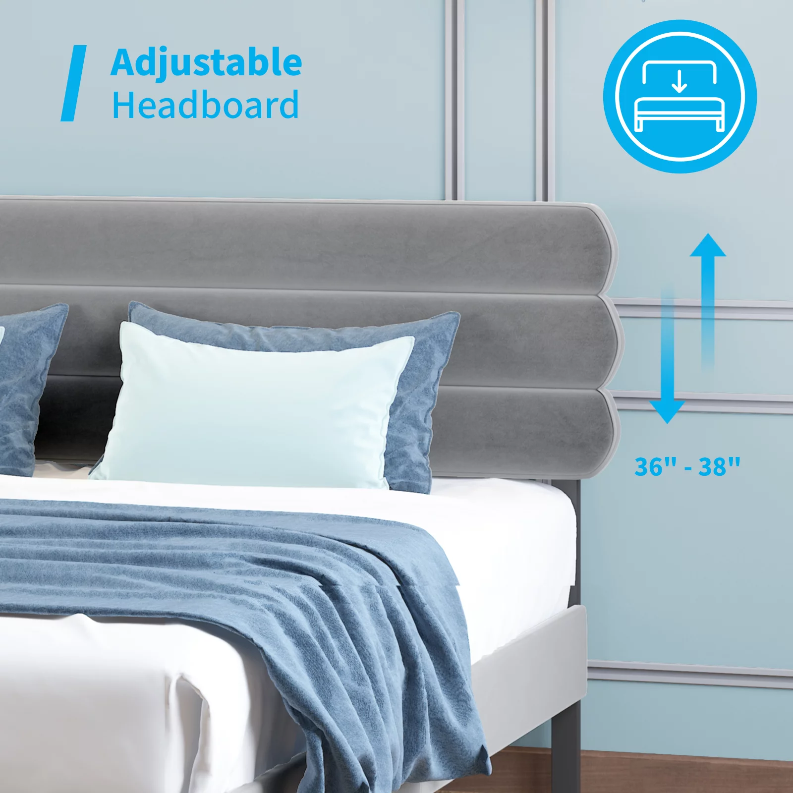 Linsy Home Queen Upholstered Platform Bed Frame with Height Adjustable Headboard, NO Box Spring Needed, Grey