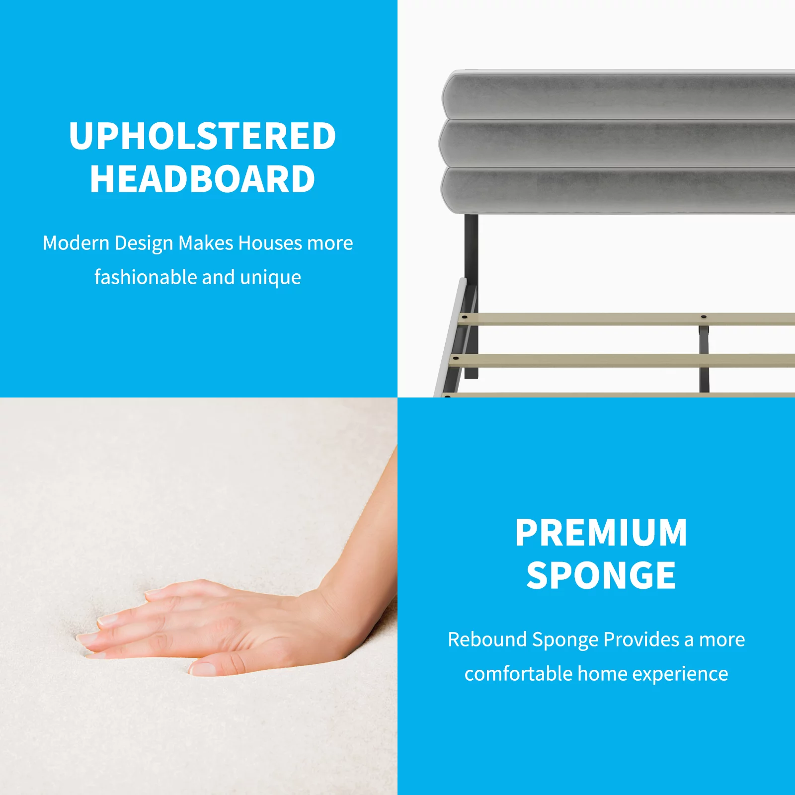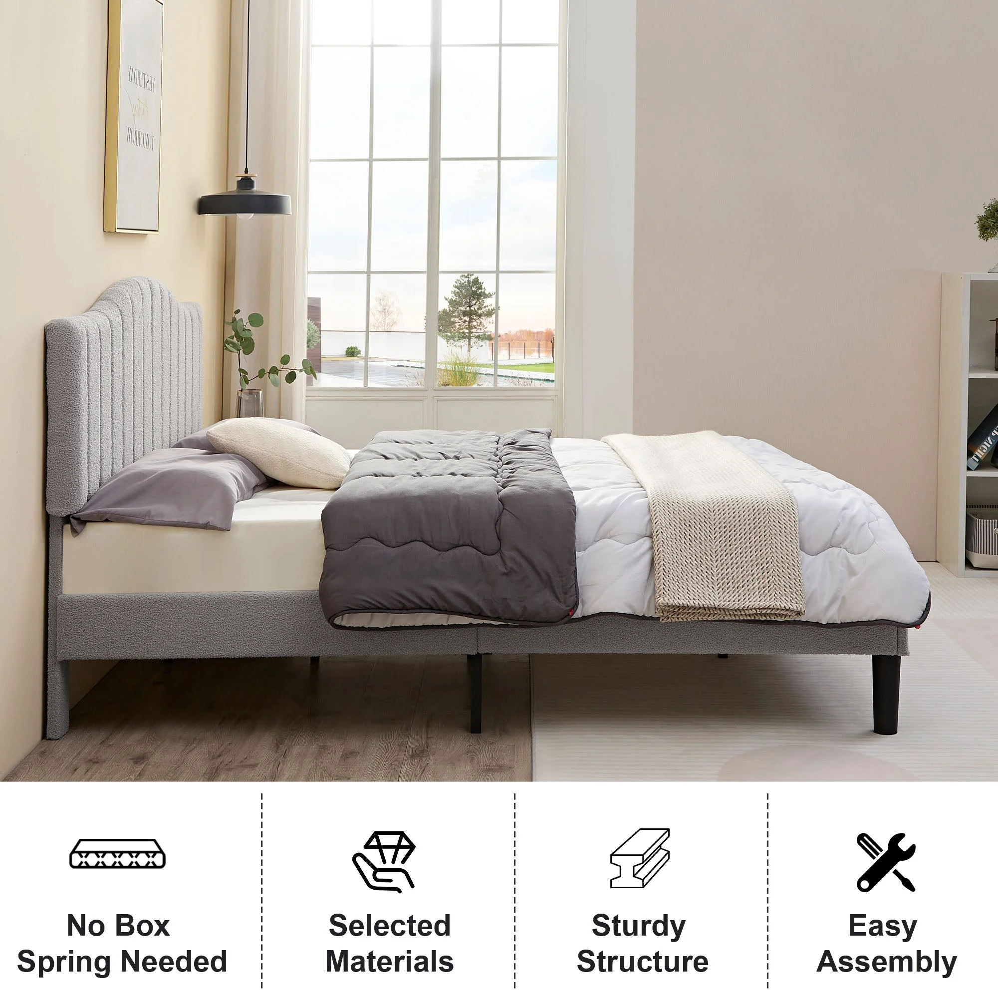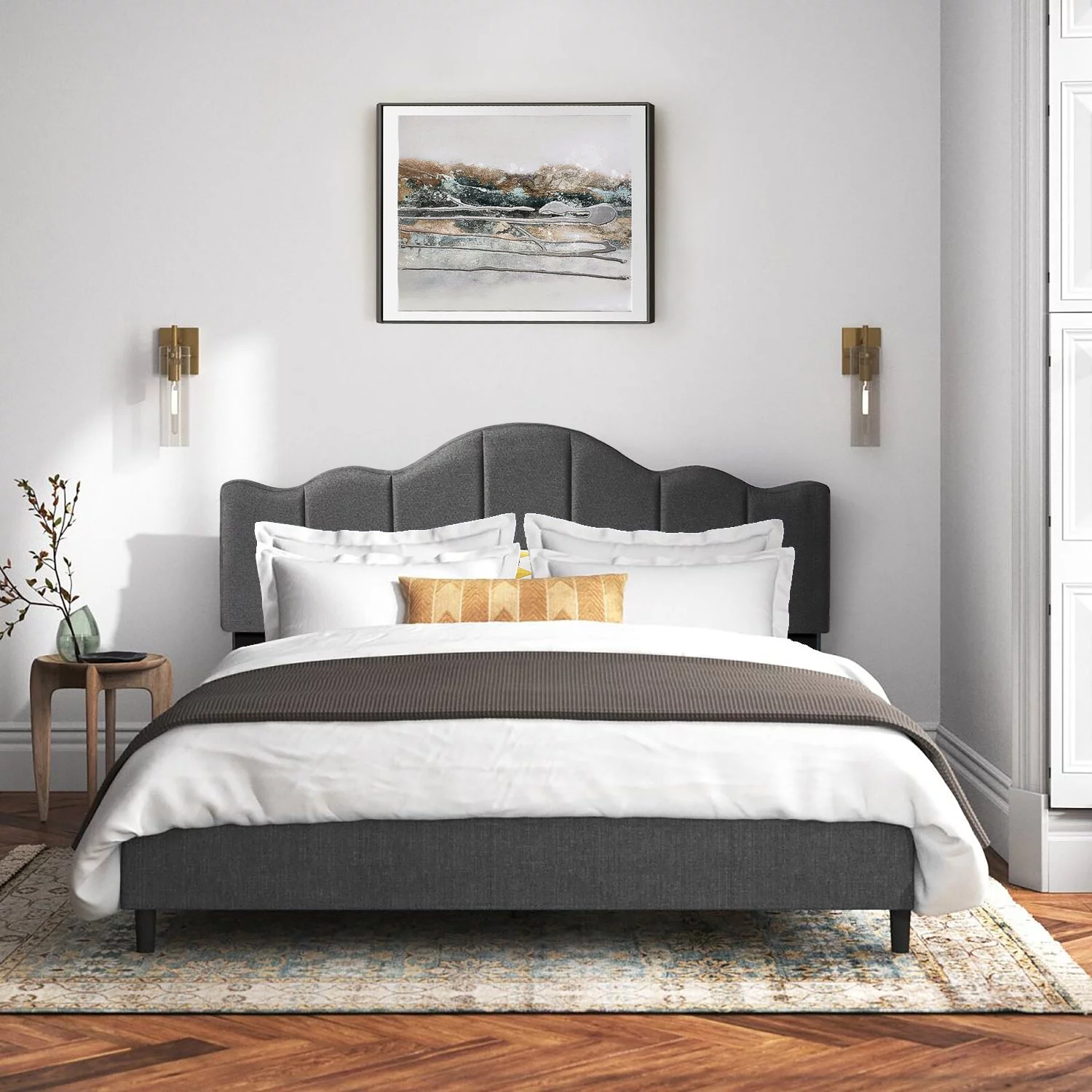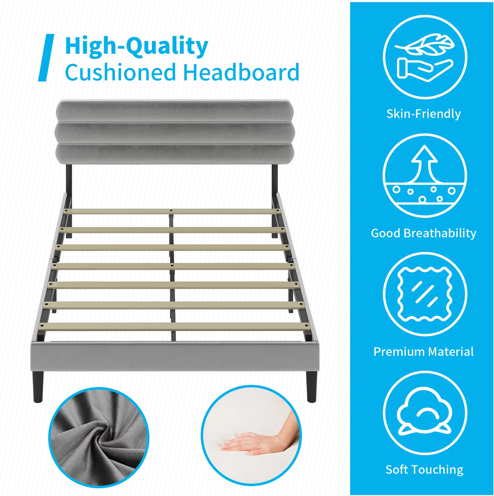 Linsy Home Queen Upholstered Platform Bed Frame with Height Adjustable Headboard, NO Box Spring Needed, Grey