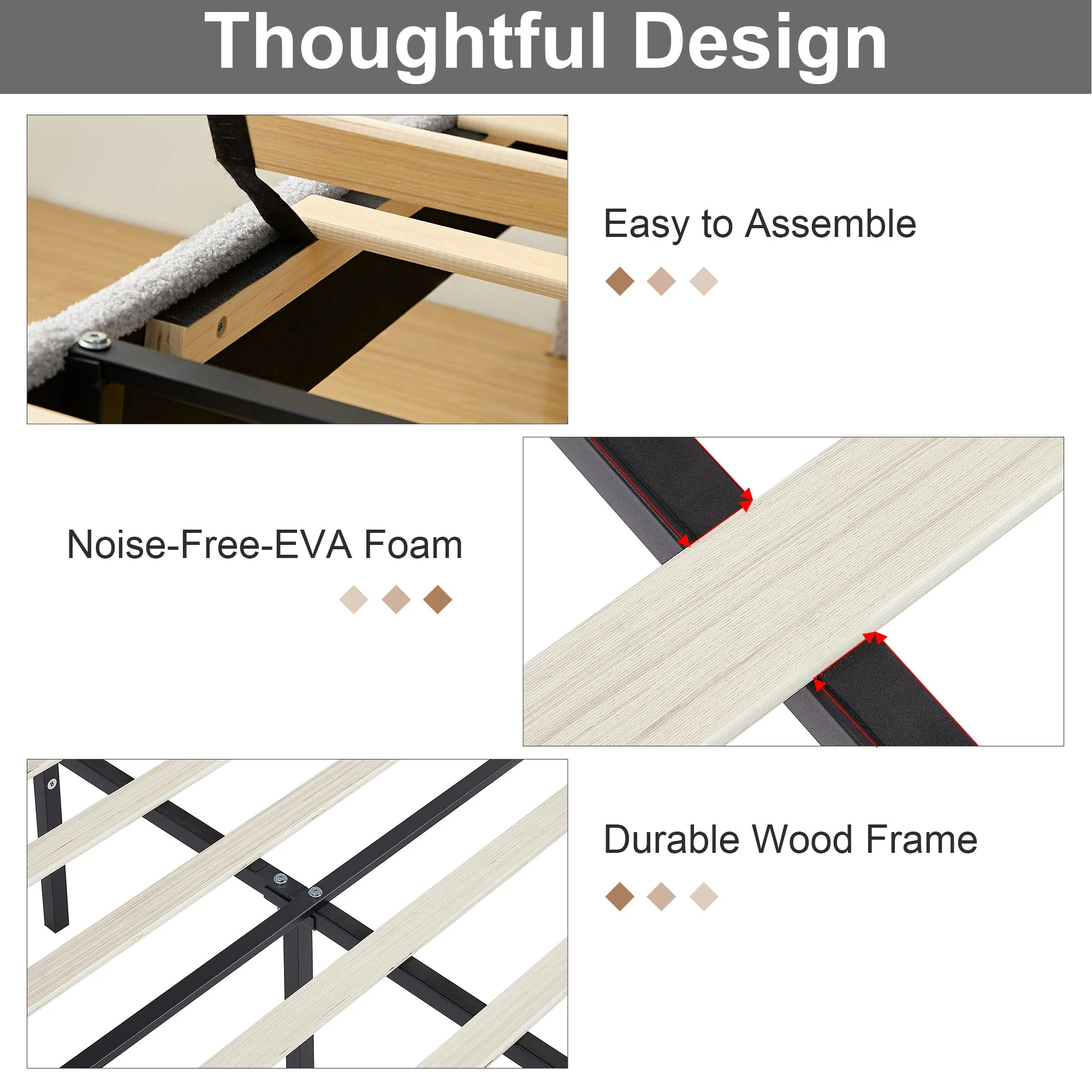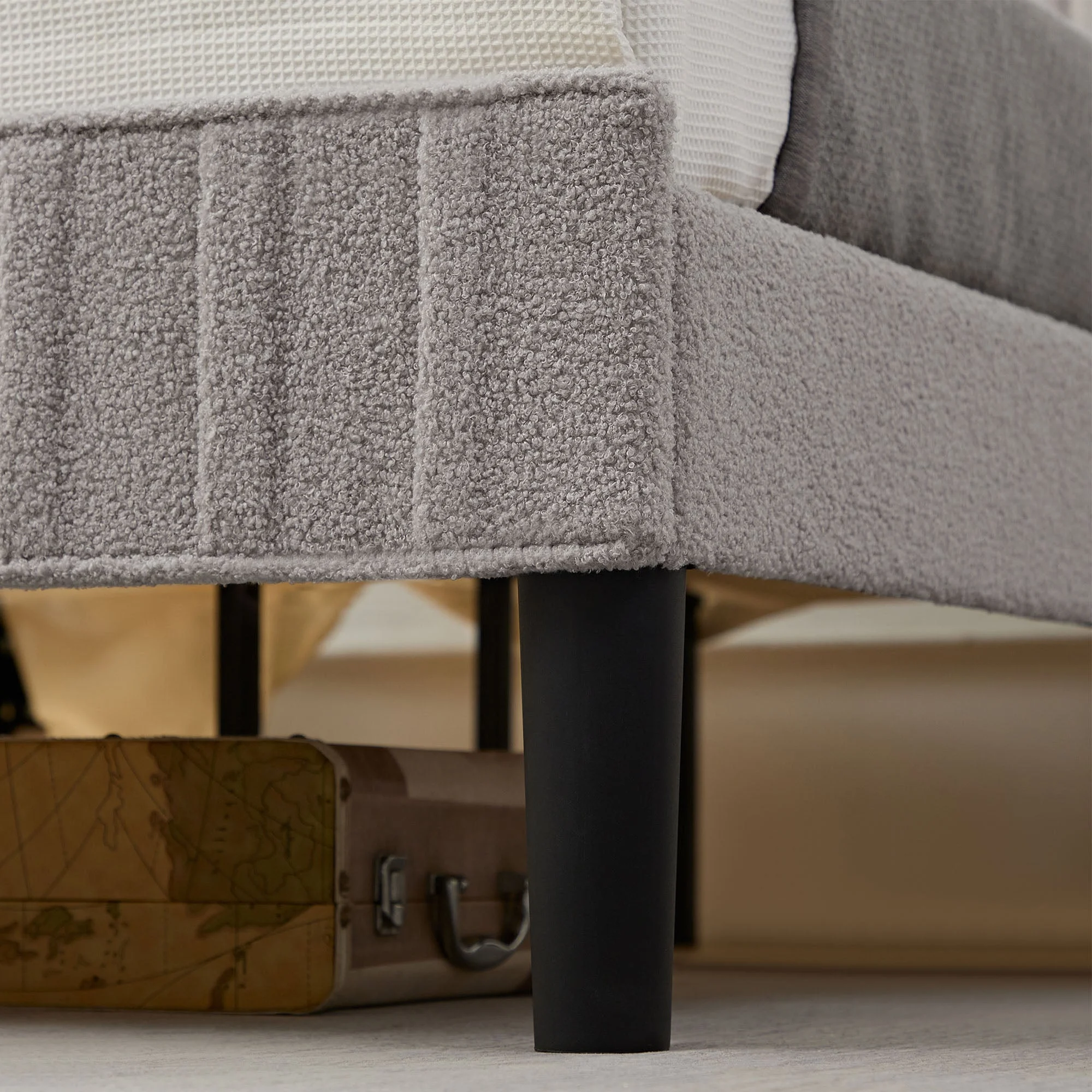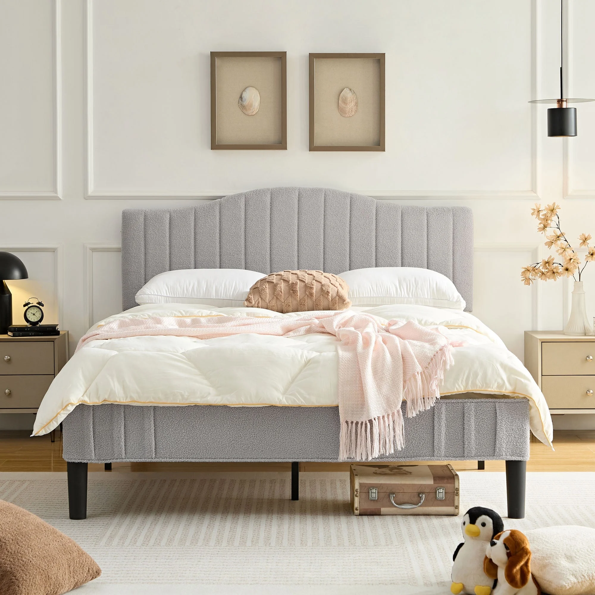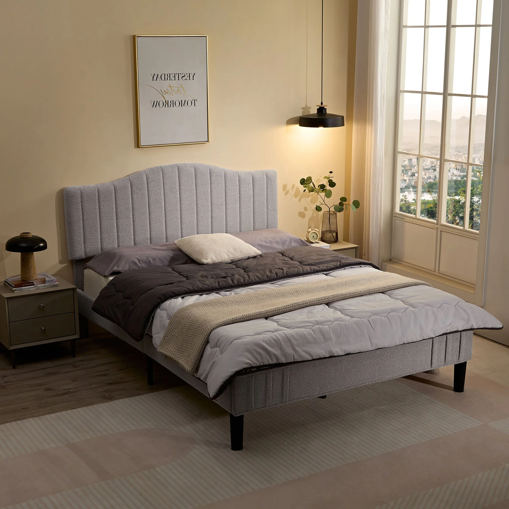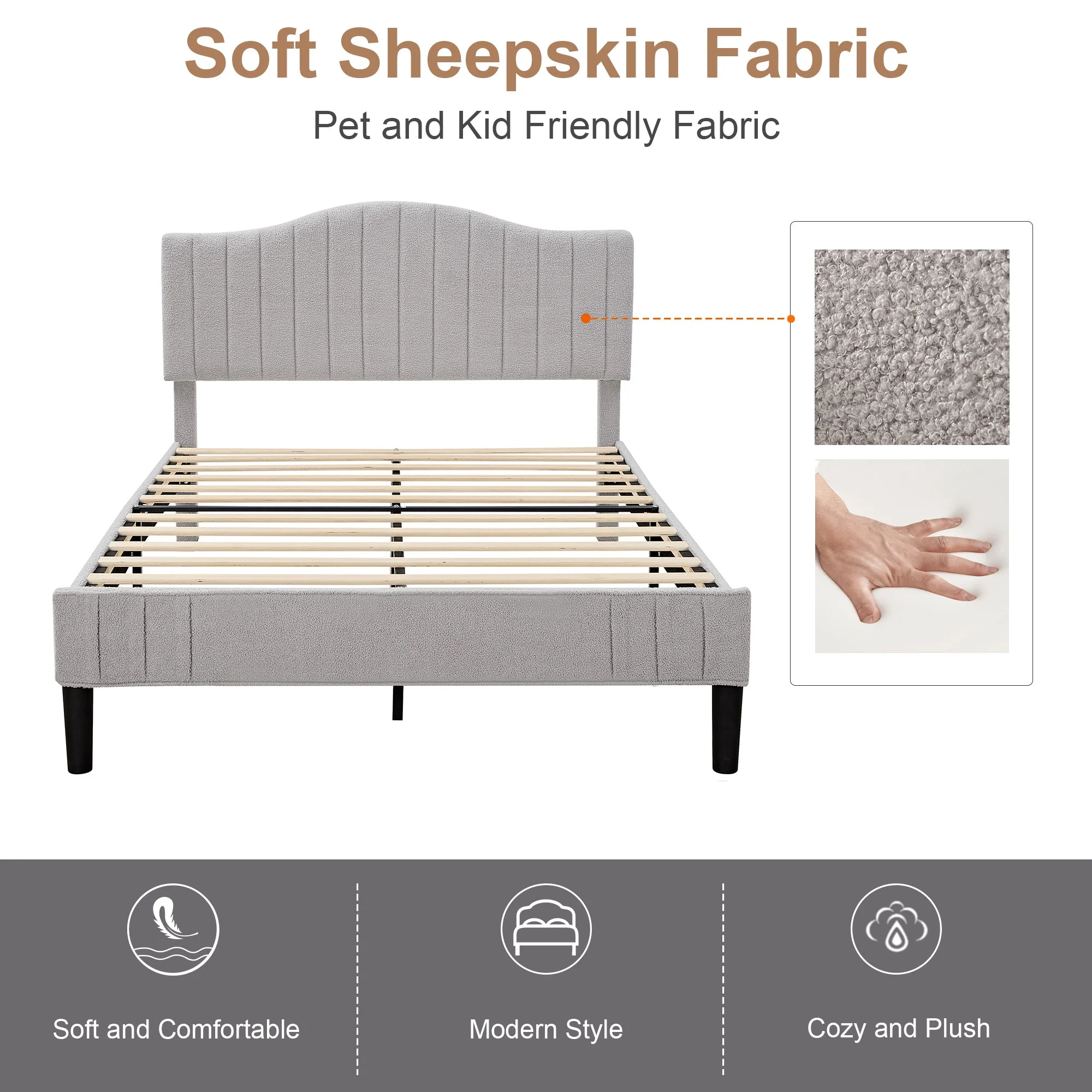 Linsy Home Queen Upholstered Platform Bed Frame with Height Adjustable Headboard, NO Box Spring Needed, Grey