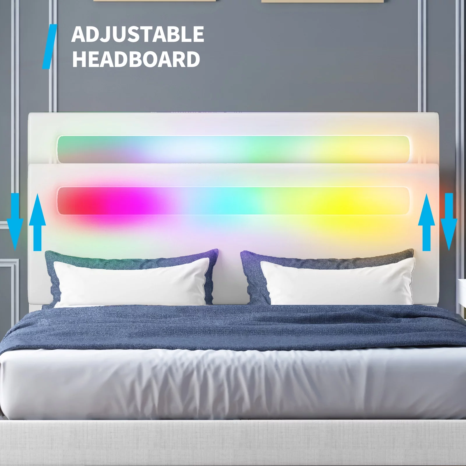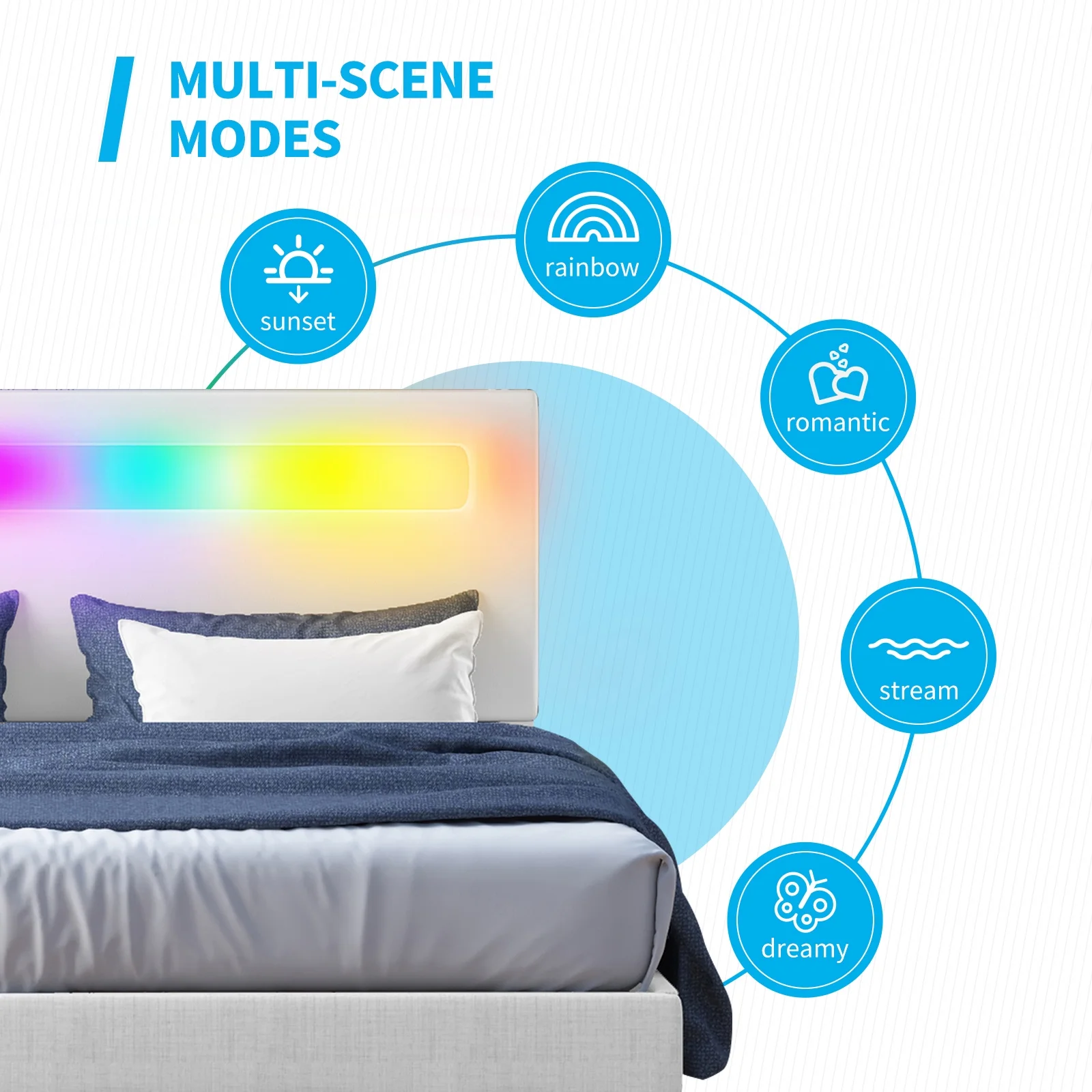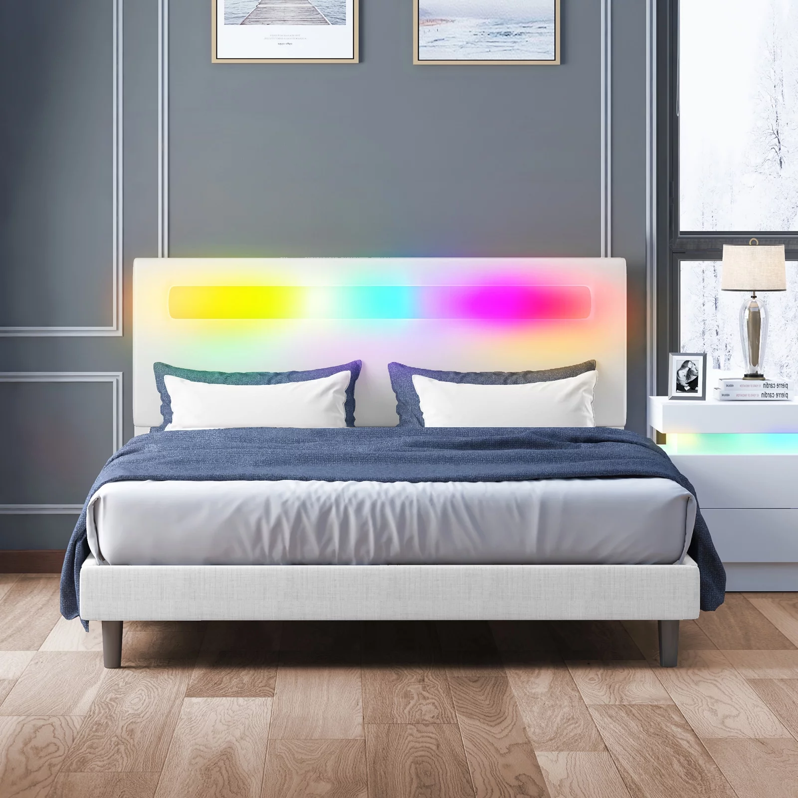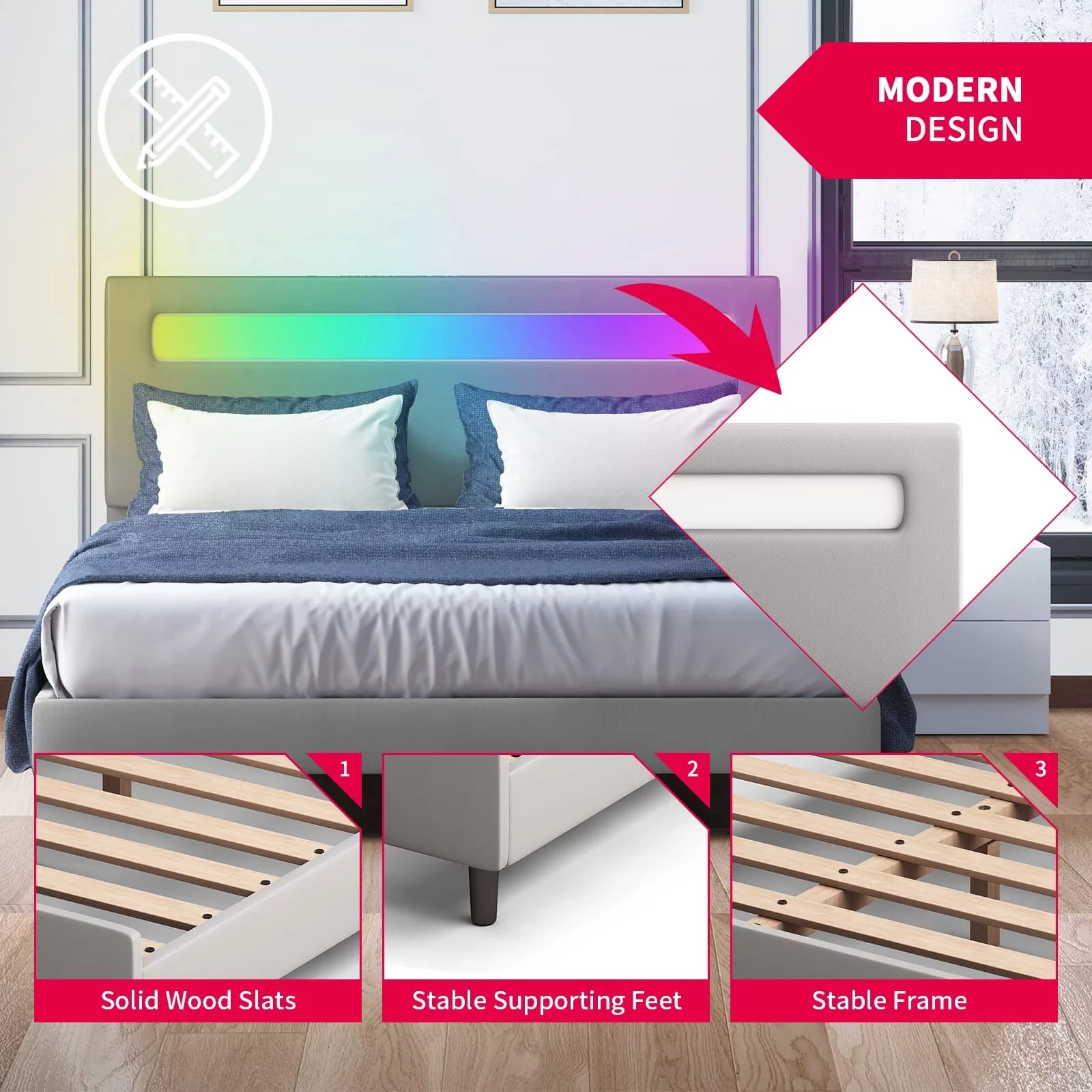 Linsy Home Queen Upholstered Platform Bed Frame with Height Adjustable Headboard, NO Box Spring Needed, Grey