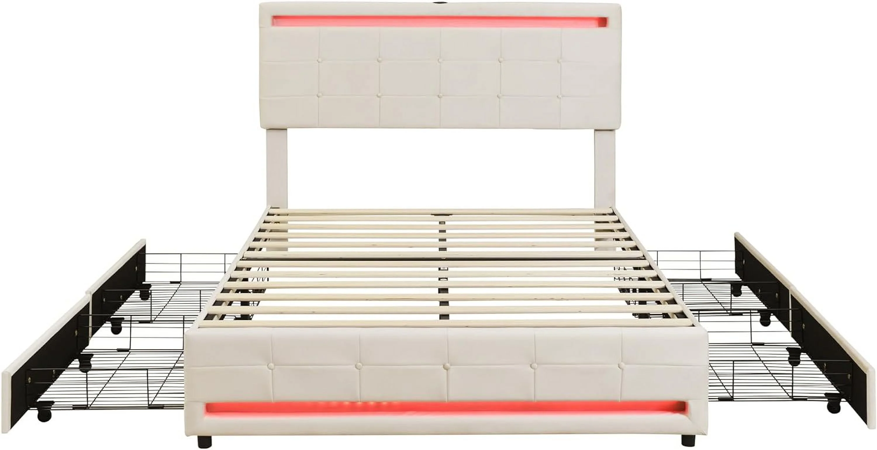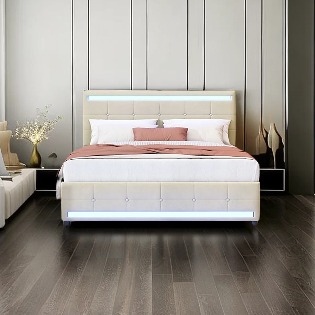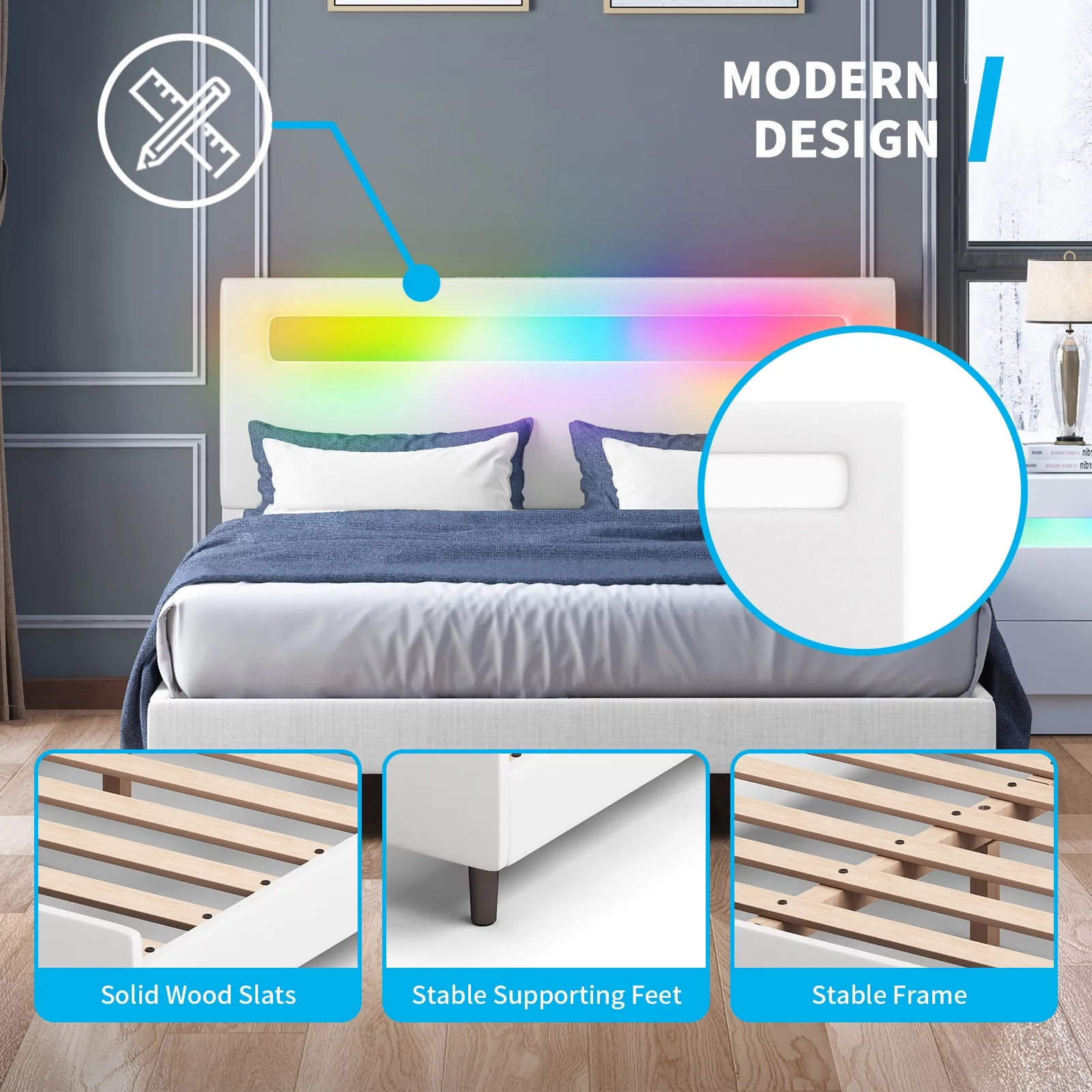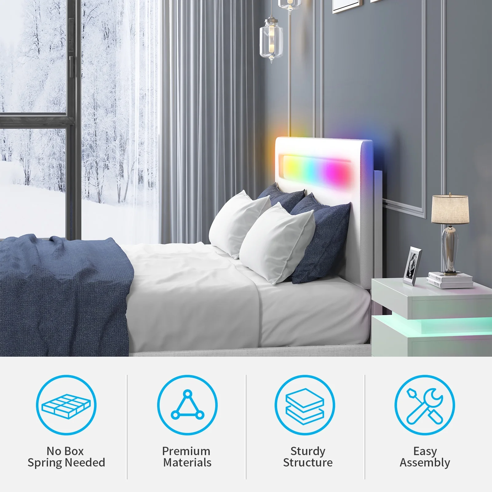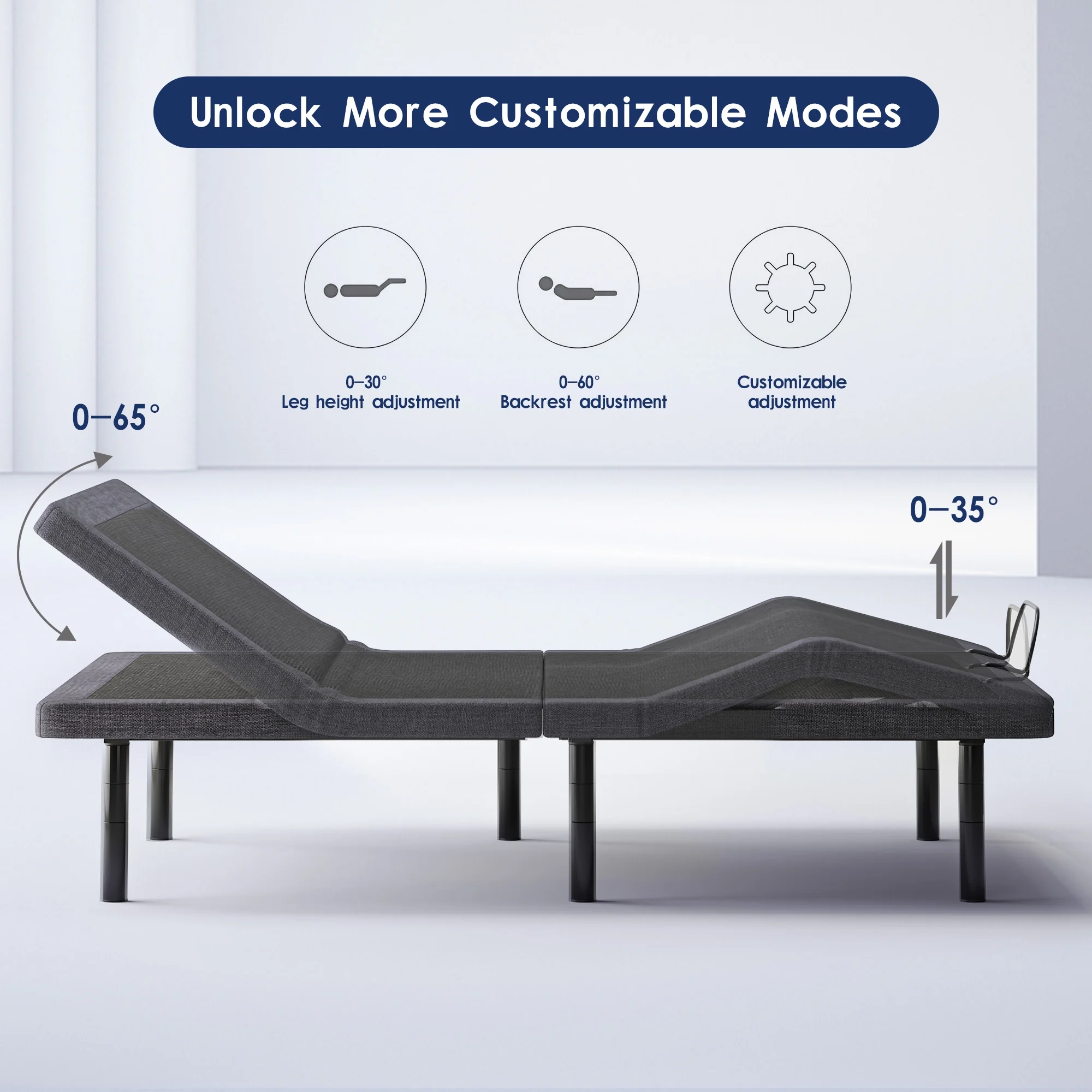 Linsy Home Queen Upholstered Platform Bed Frame with Height Adjustable Headboard, NO Box Spring Needed, Grey
