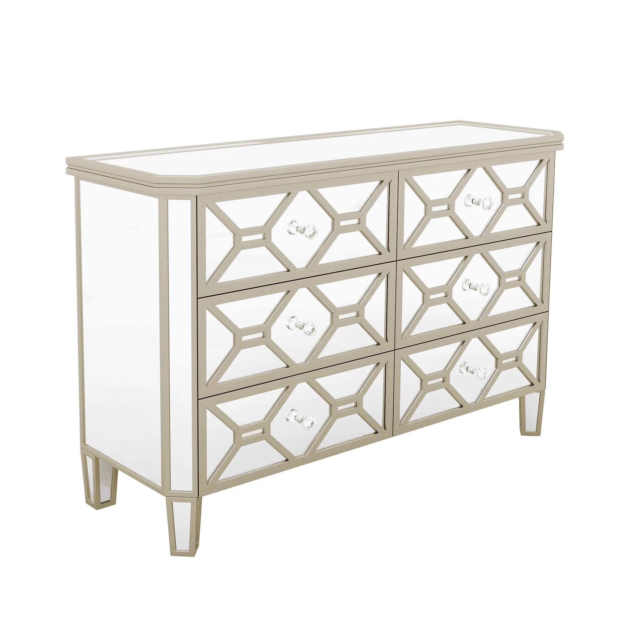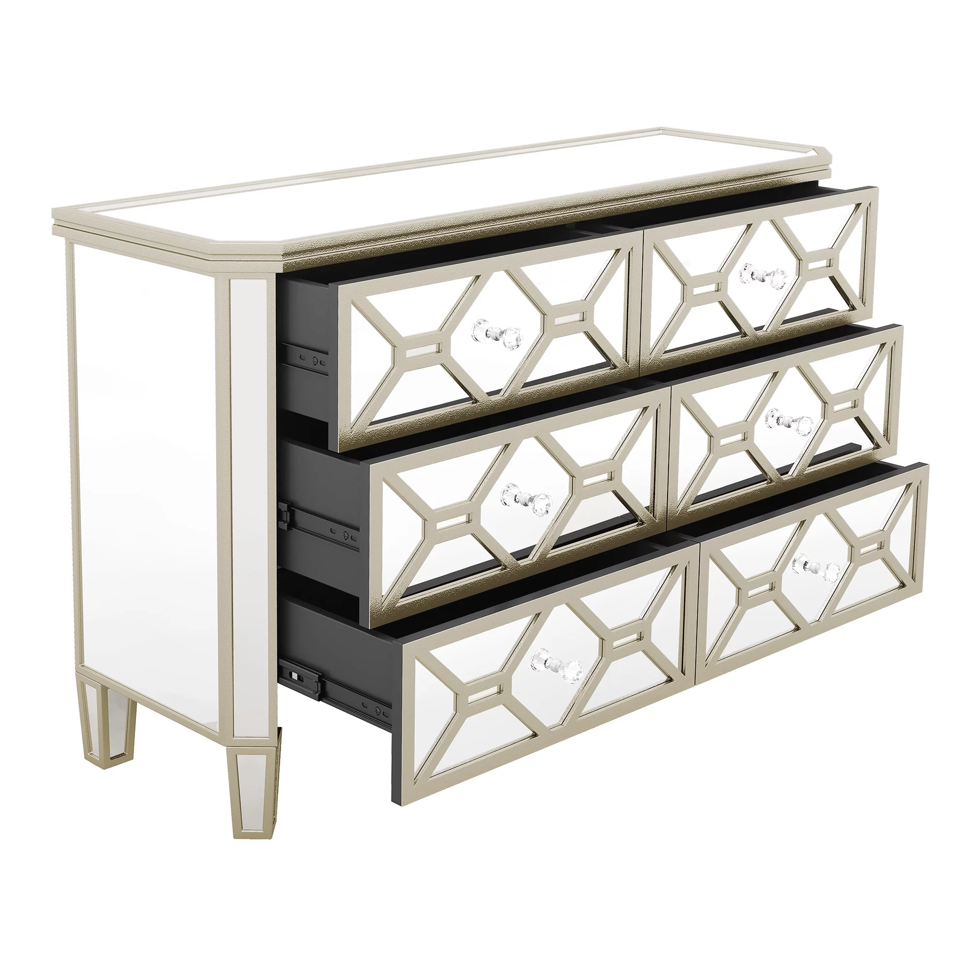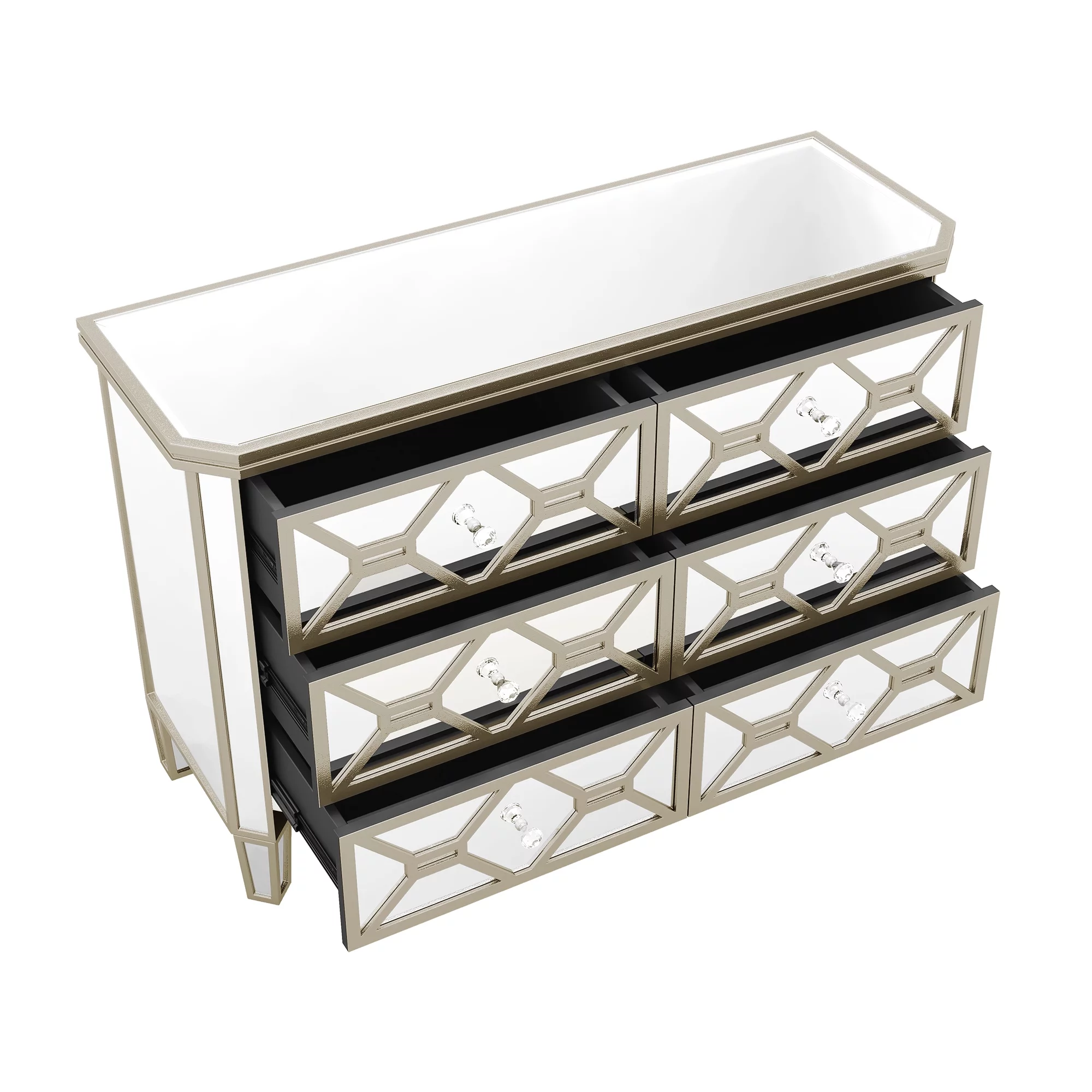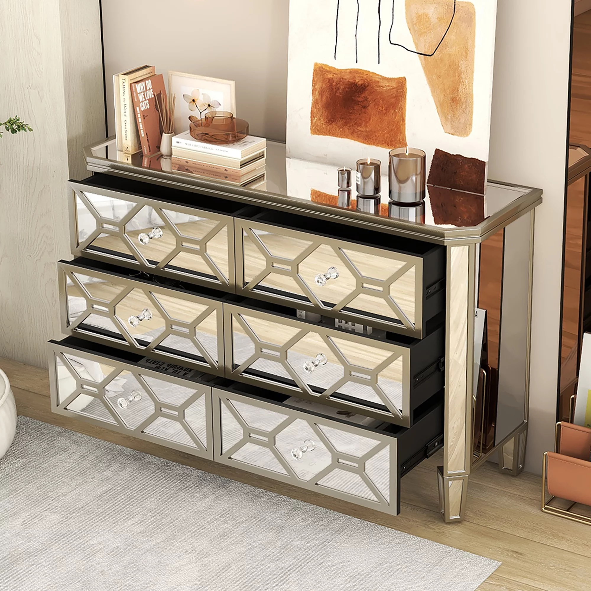 Elegant Mirrored 6-Drawer Dresser with Golden Lines Storage Cabinet for Living Room, Hallway, Entryway