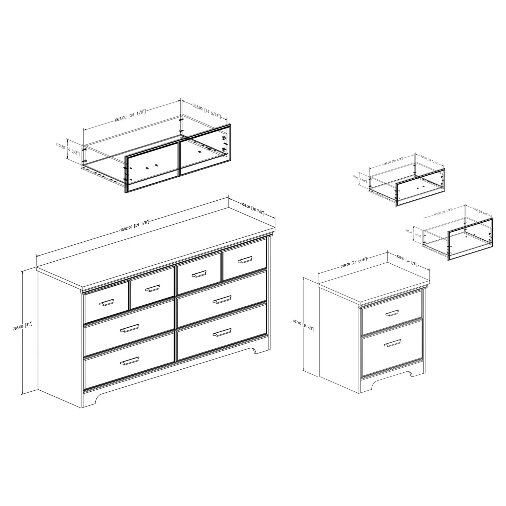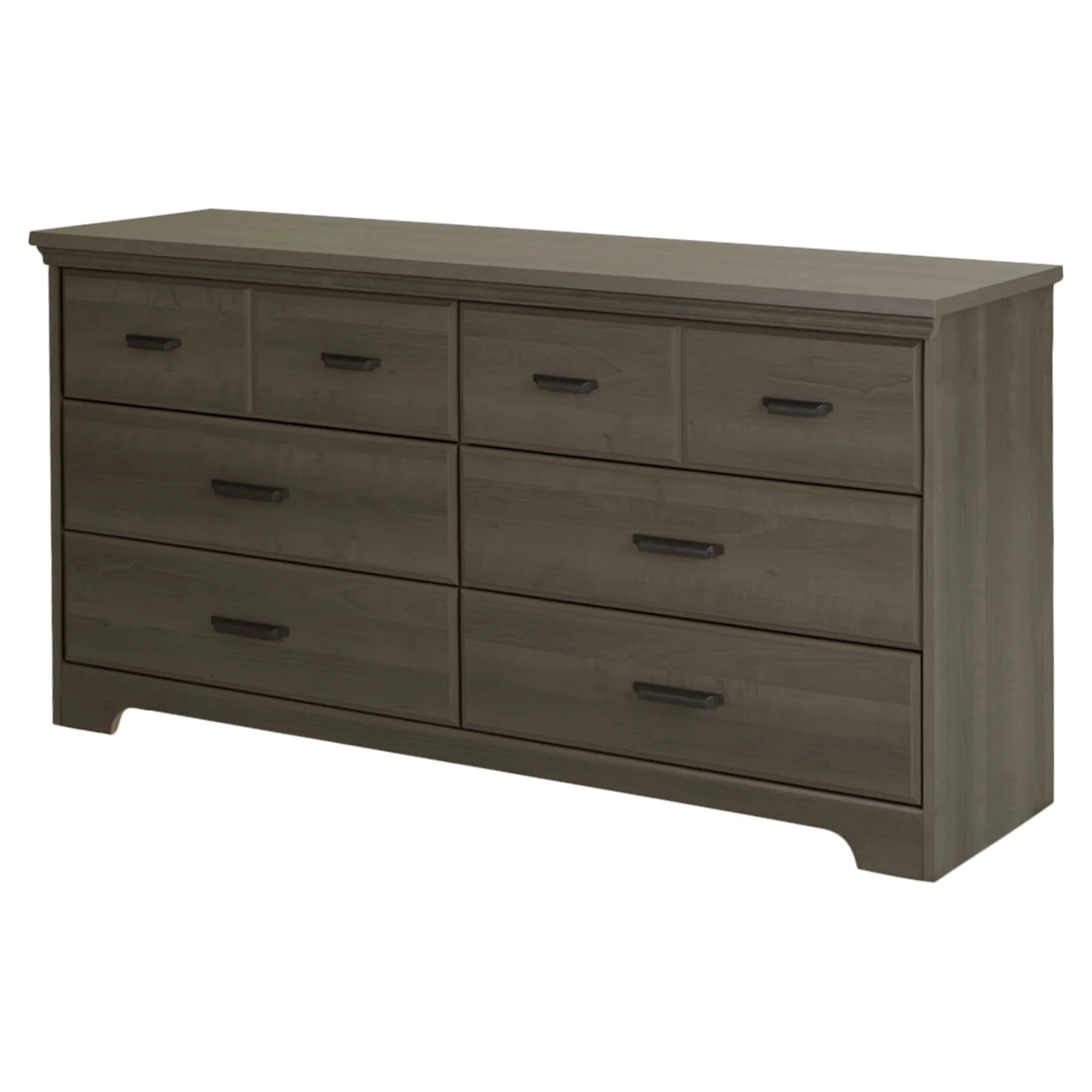 South Shore Versa 6-Drawer Double Dresser and 2-Drawer Nightstand, Gray