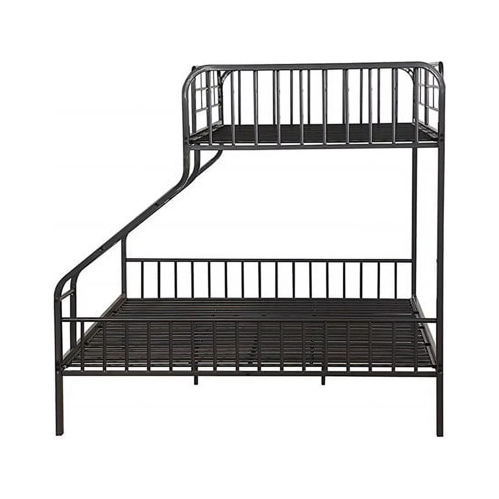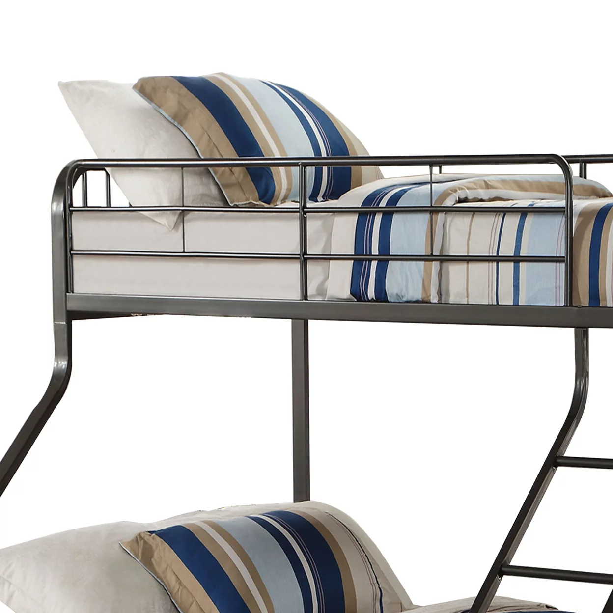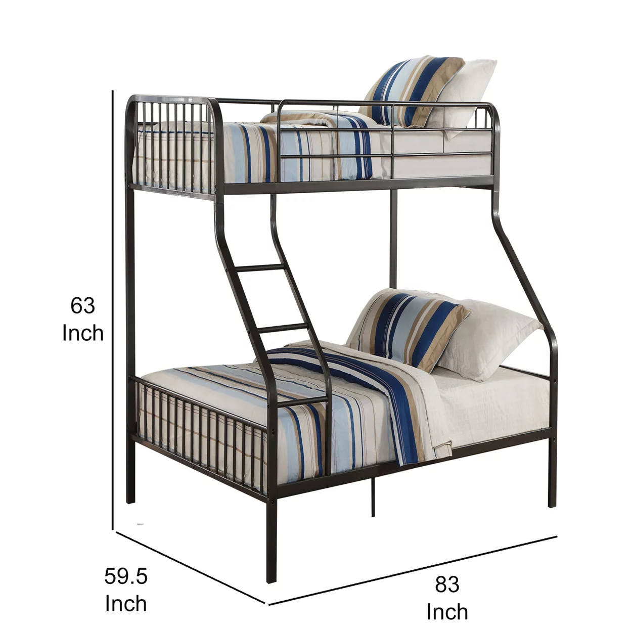 Metal Twin over Queen Size Bunk Bed with Guardrail and Ladder, Gunmetal