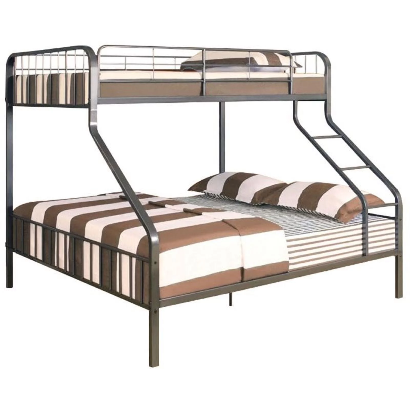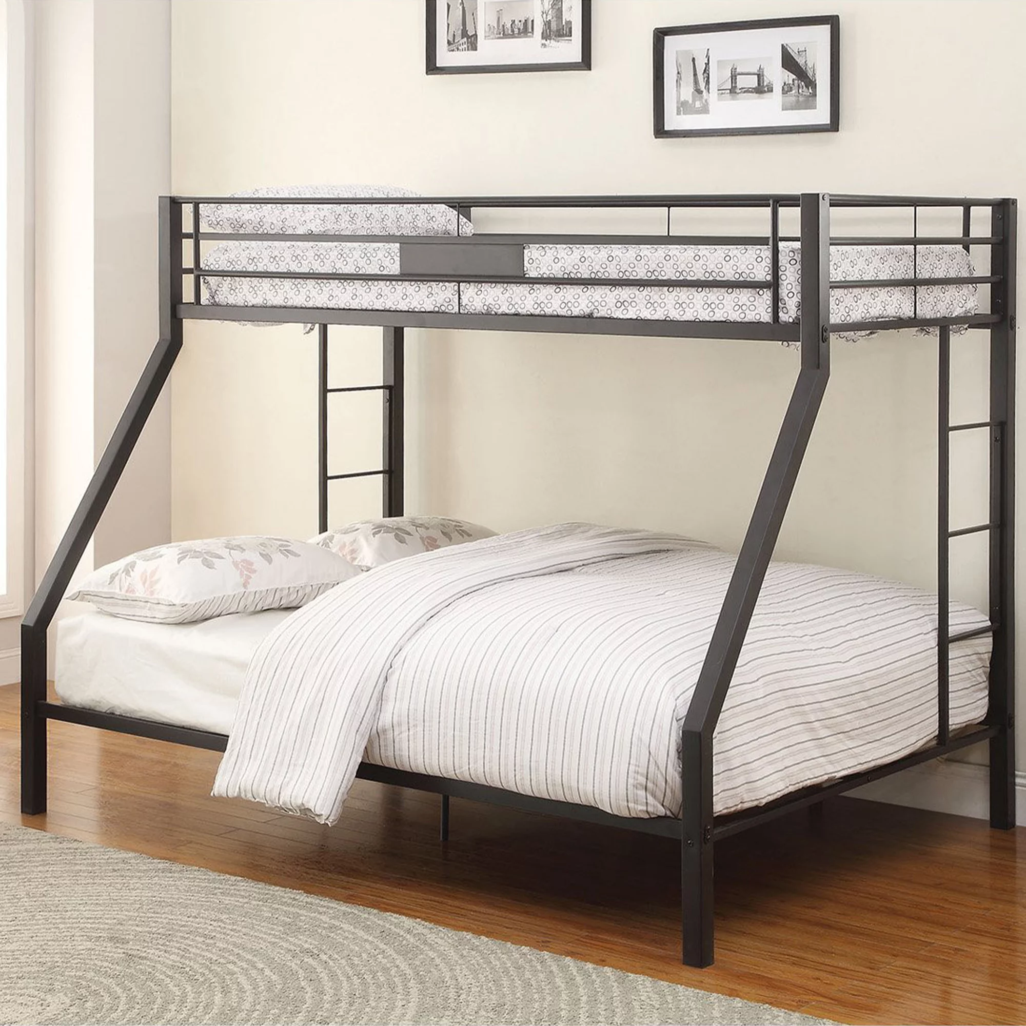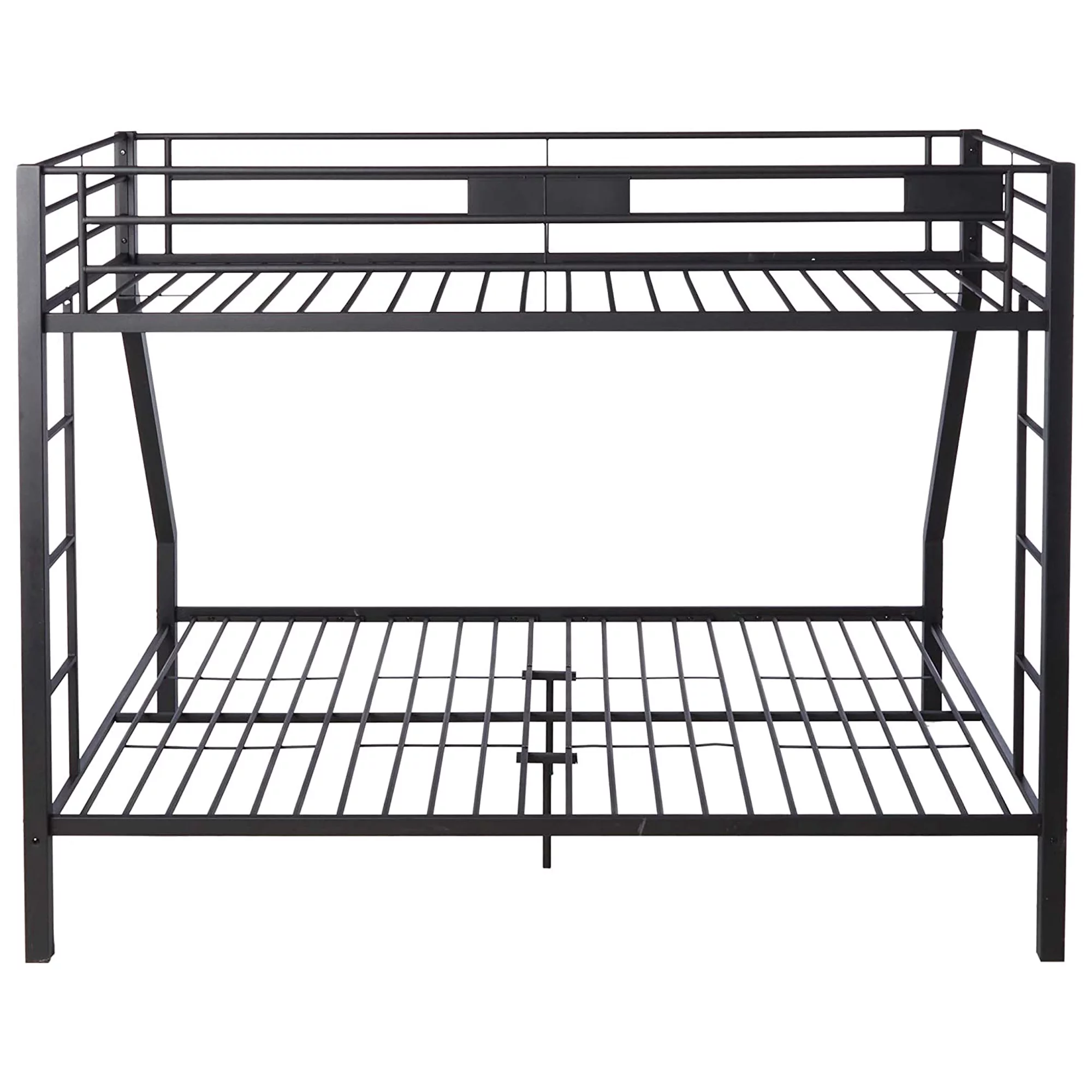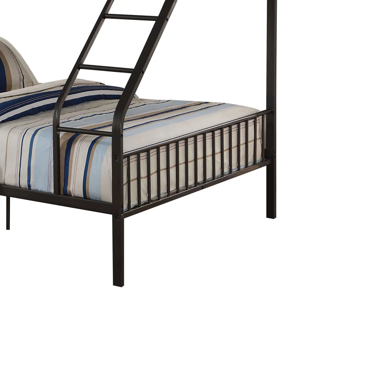 Metal Twin over Queen Size Bunk Bed with Guardrail and Ladder, Gunmetal