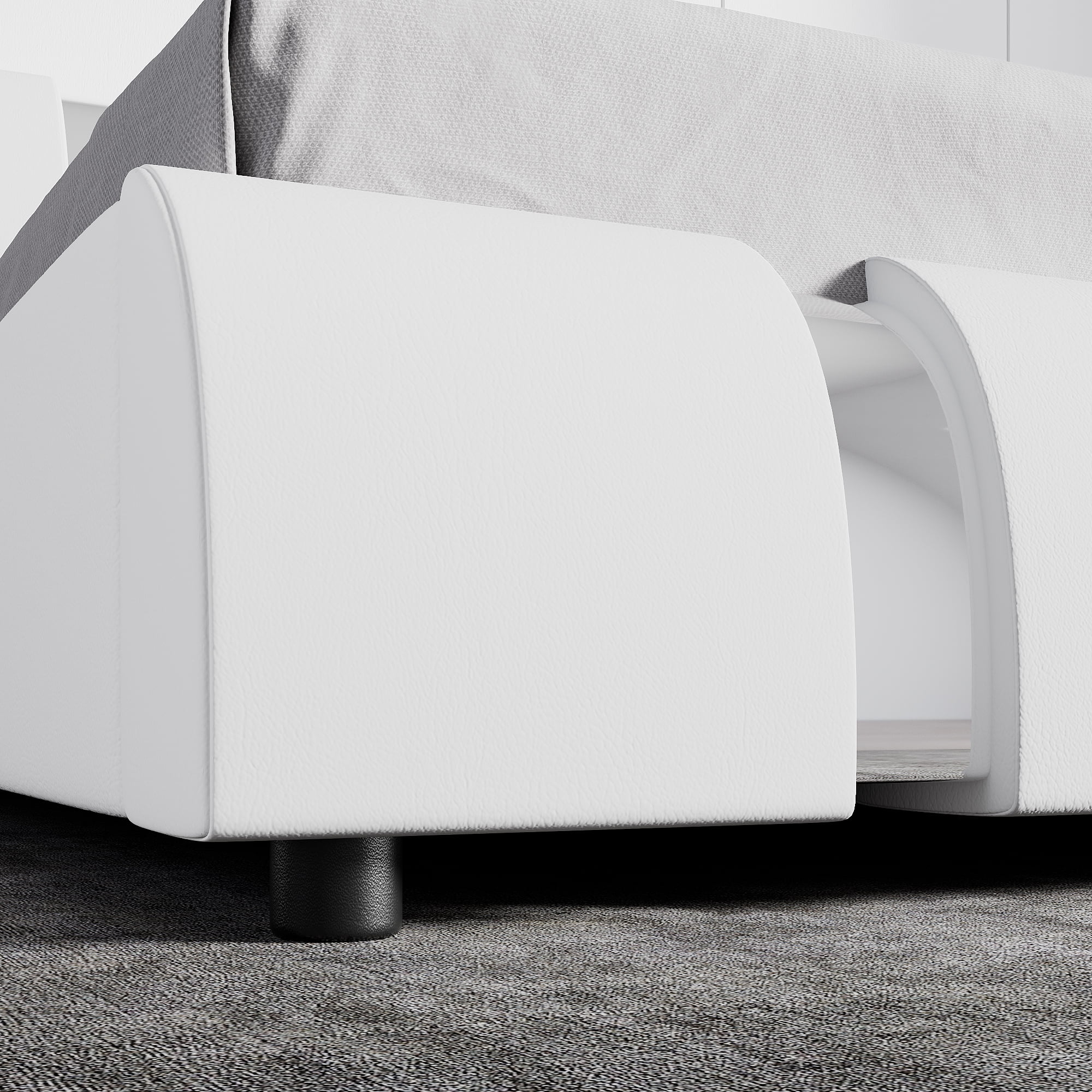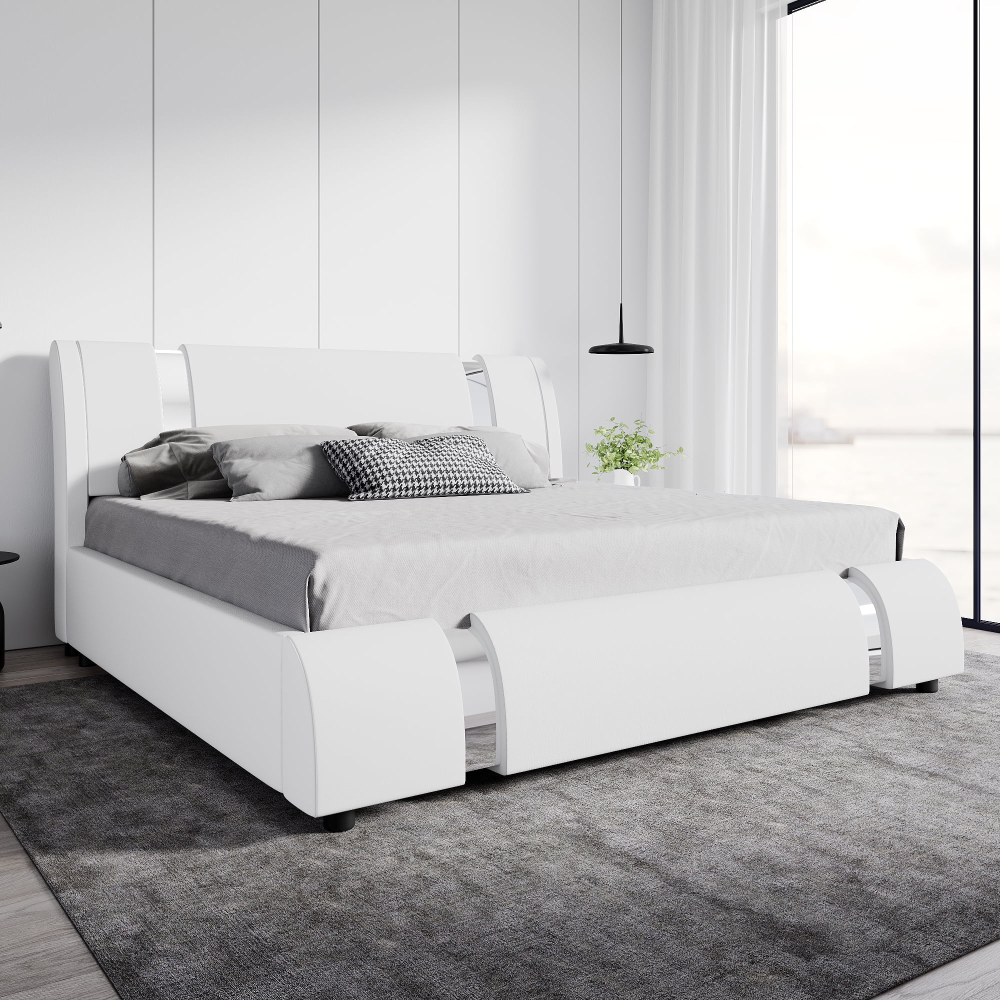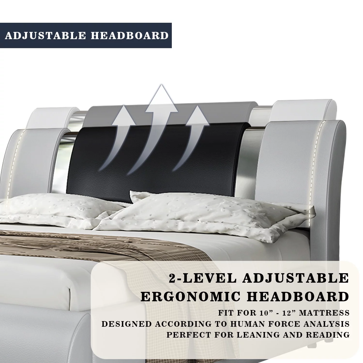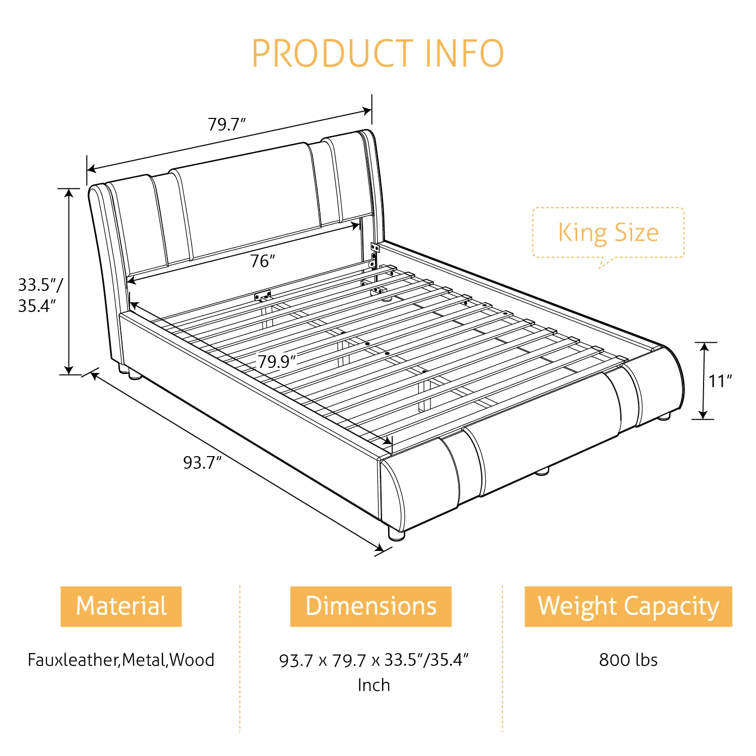 Allewie King Size Faux Leather Upholstered Platform Bed with Iron Piece Decoration Adjustable Headboard, Black and White
