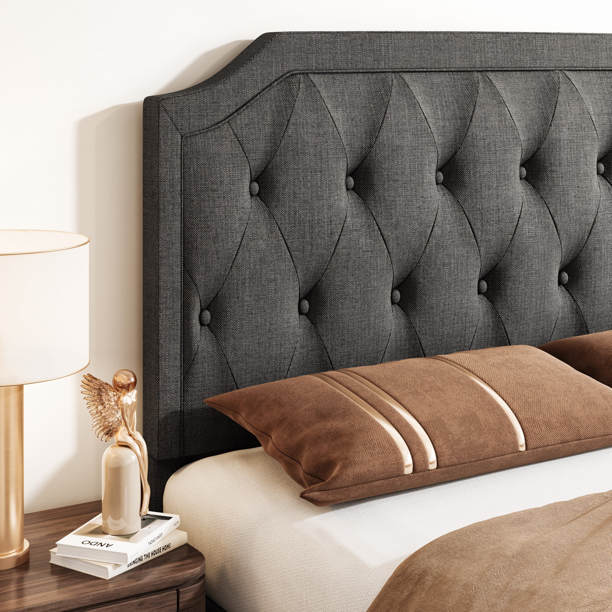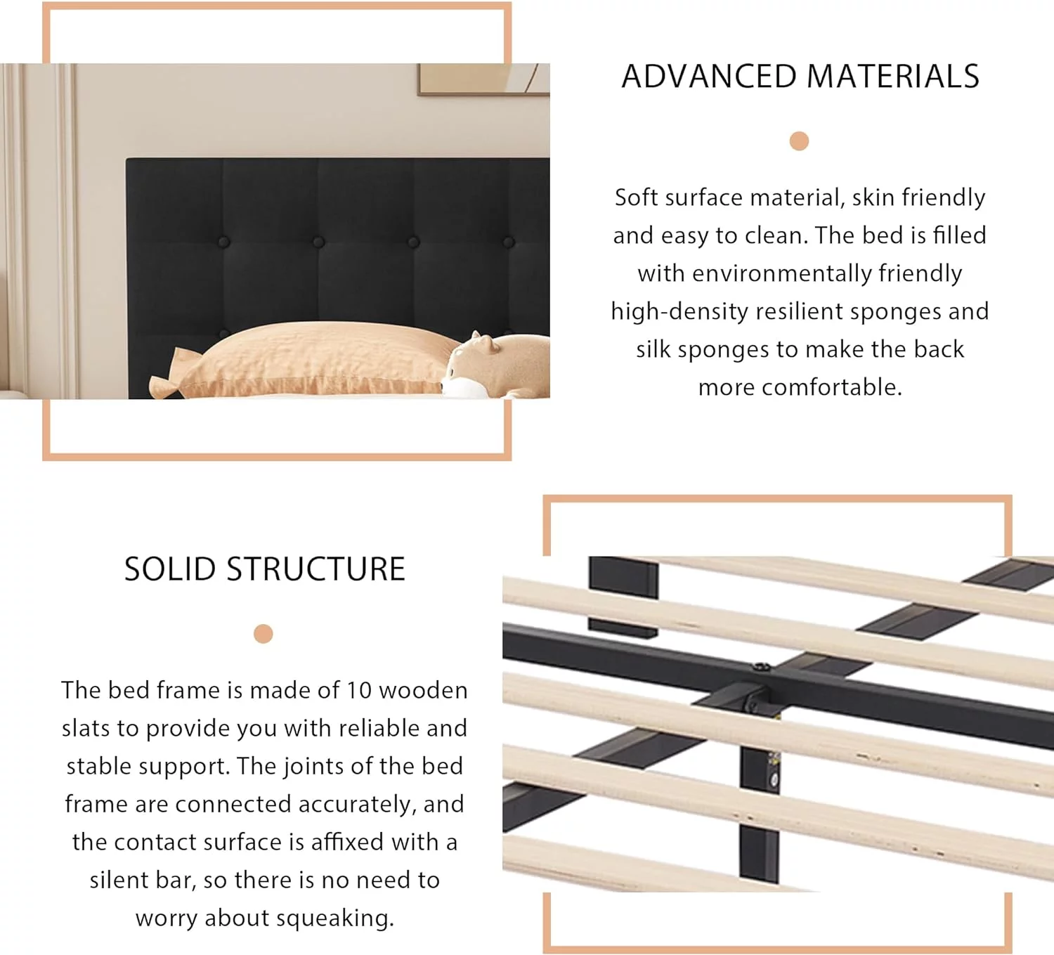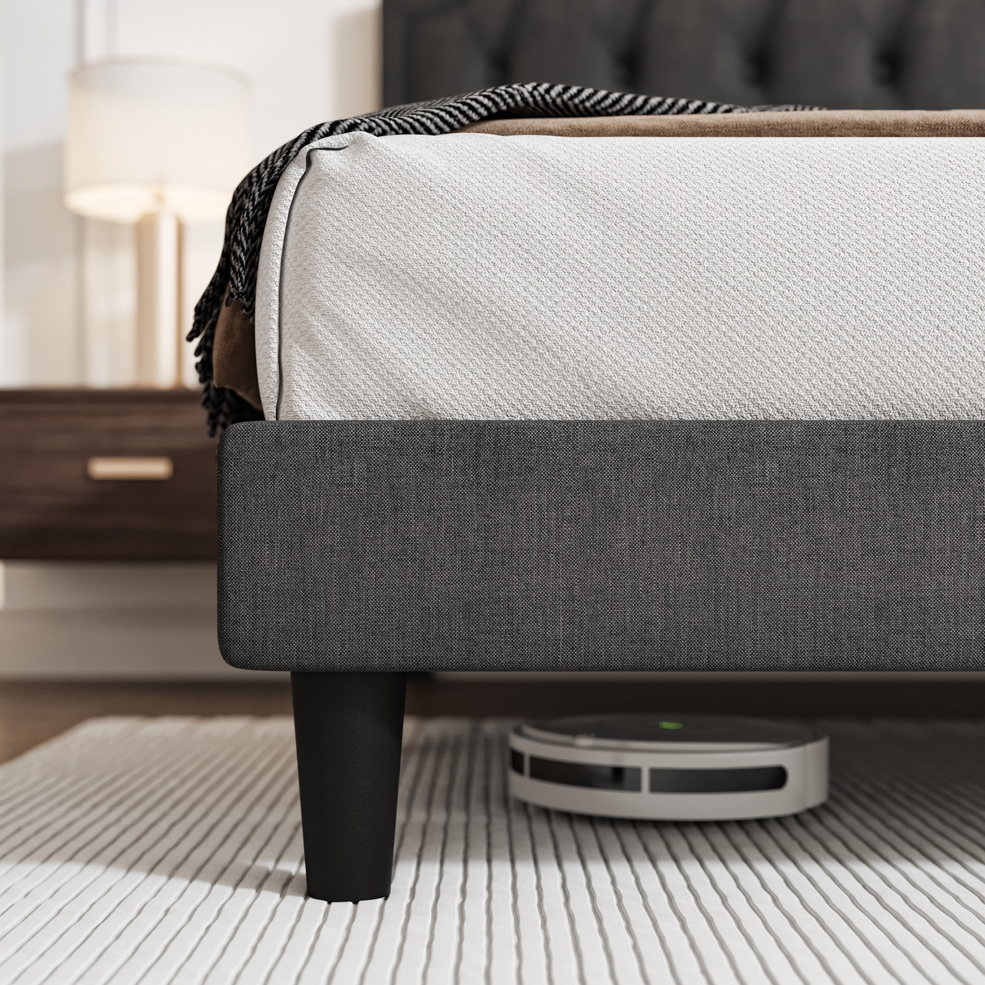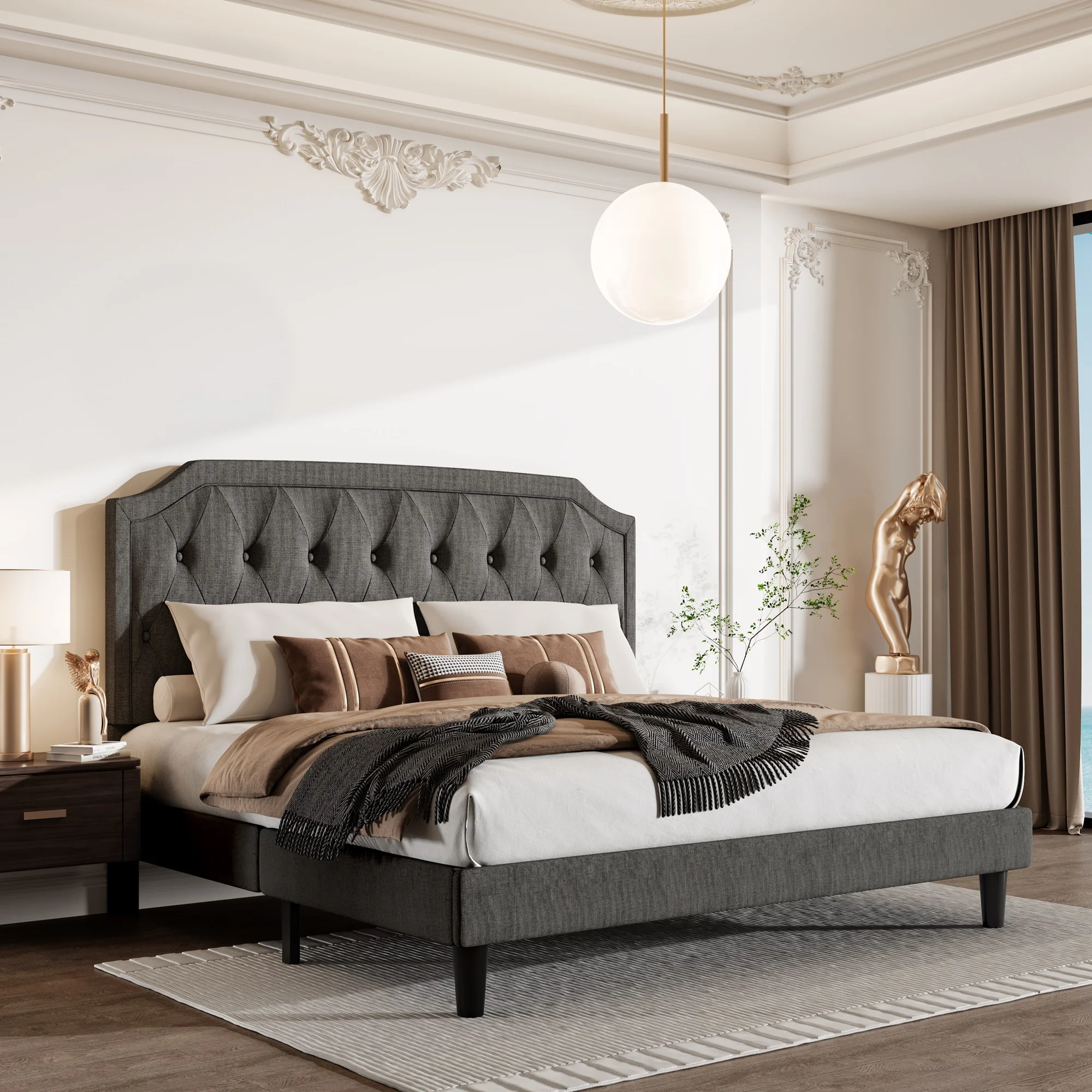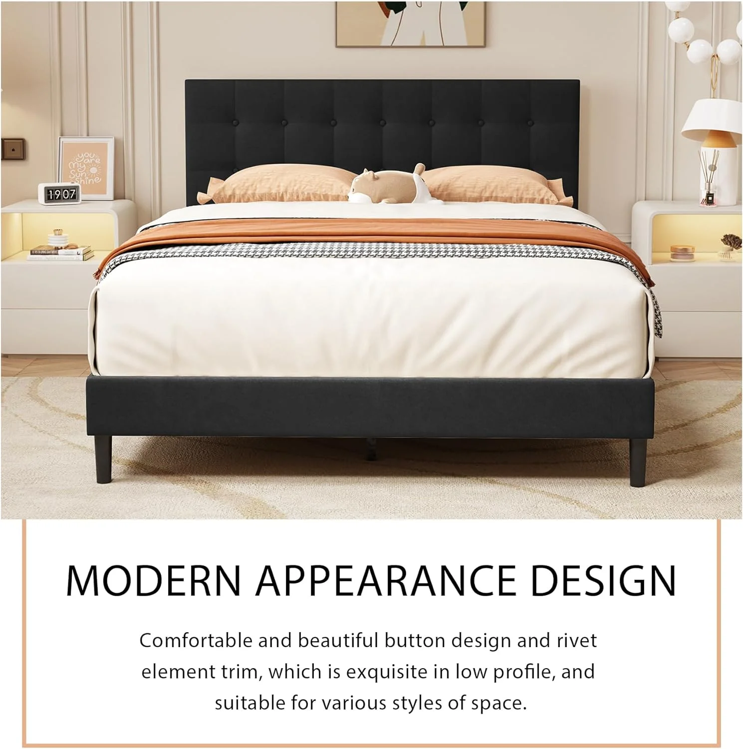 alazyhome King Size Upholstered Platform Bed Frame with Button Tufted Linen Headboard, Black