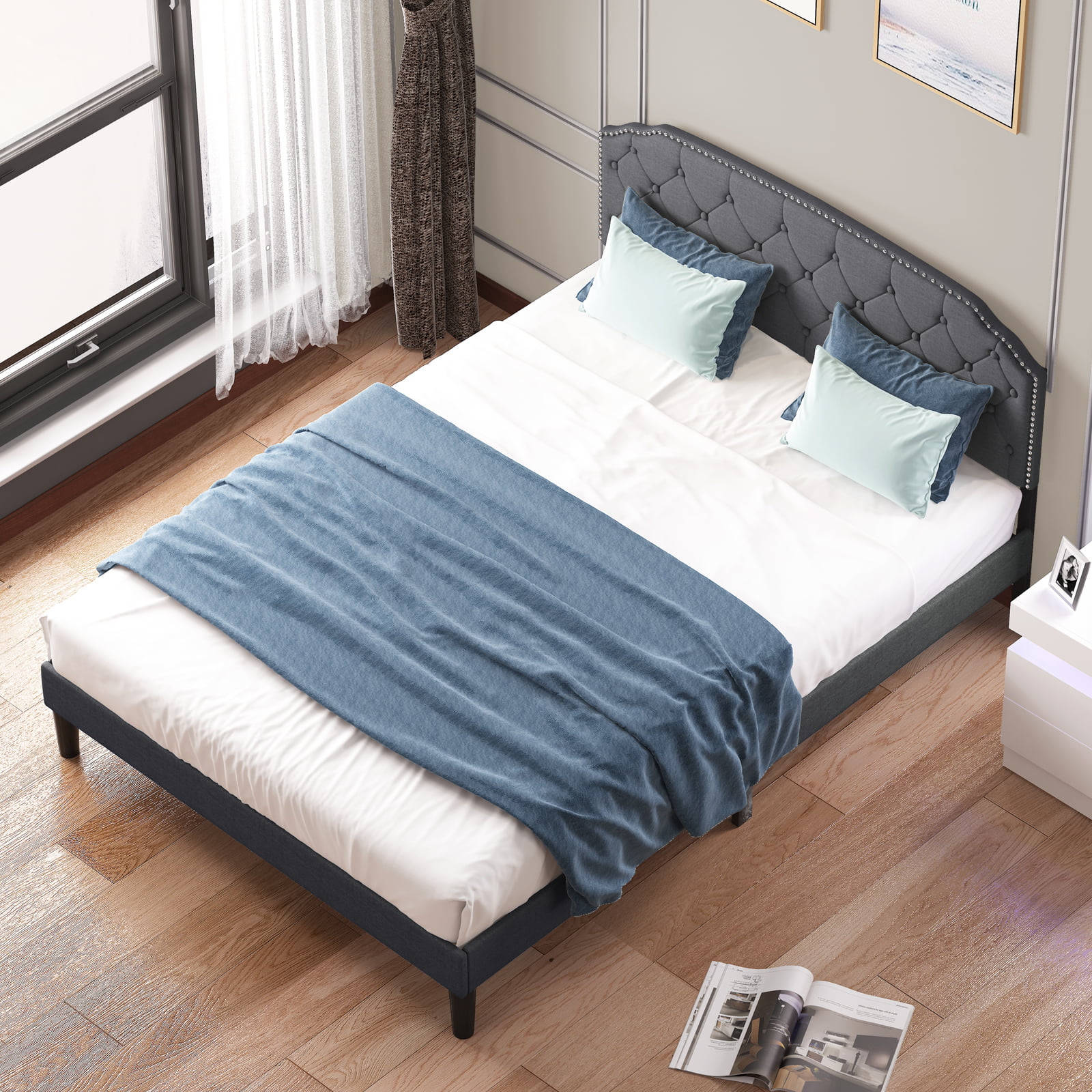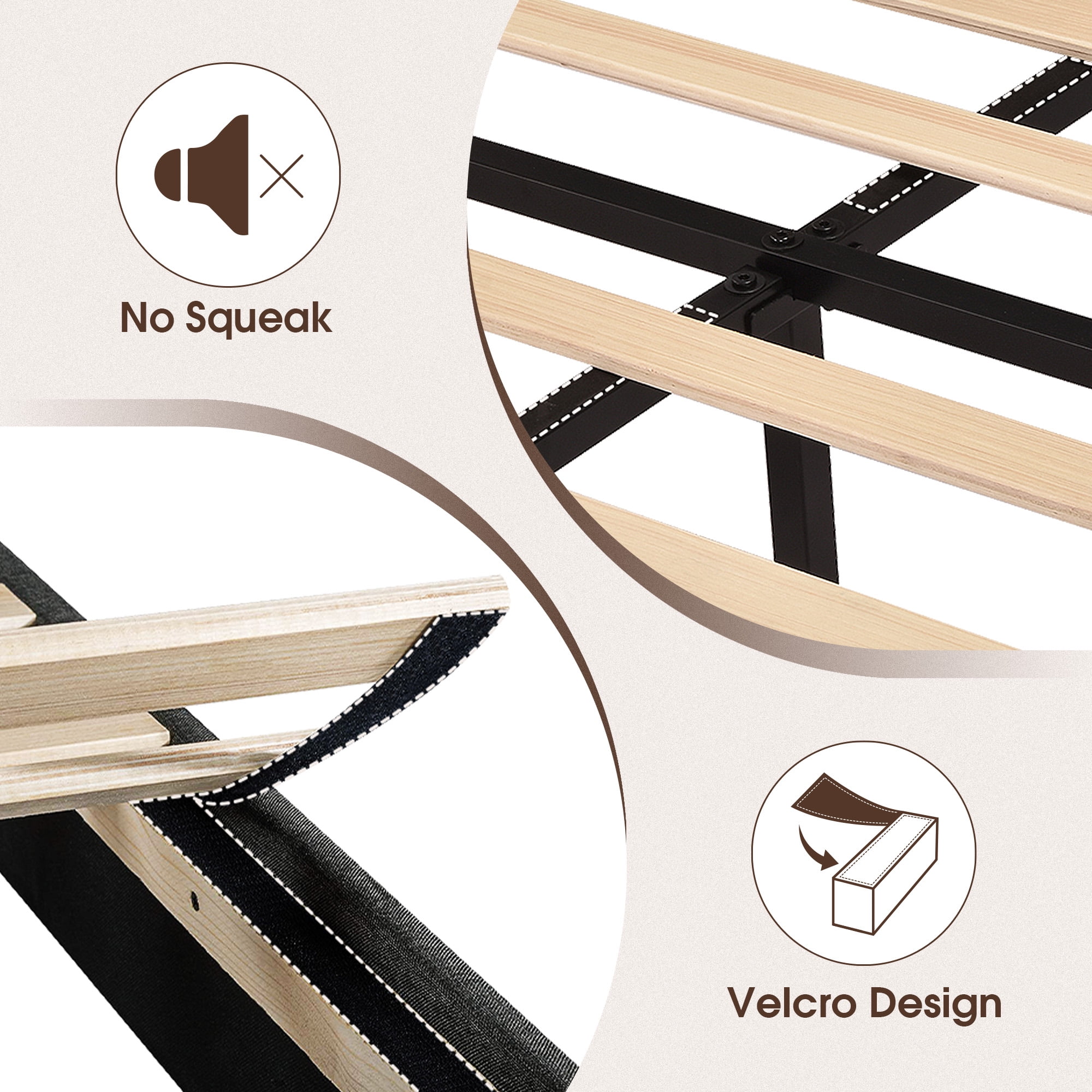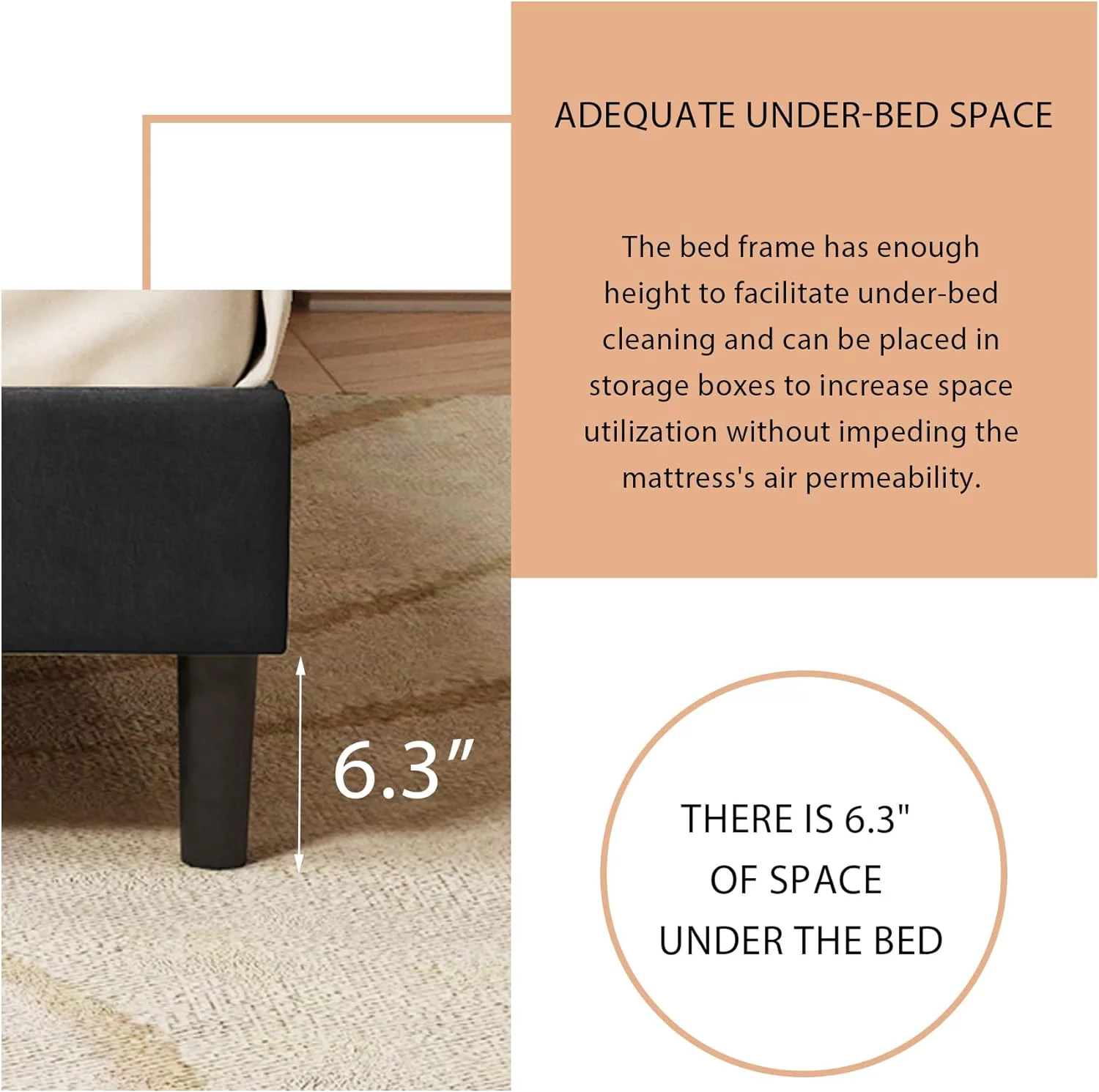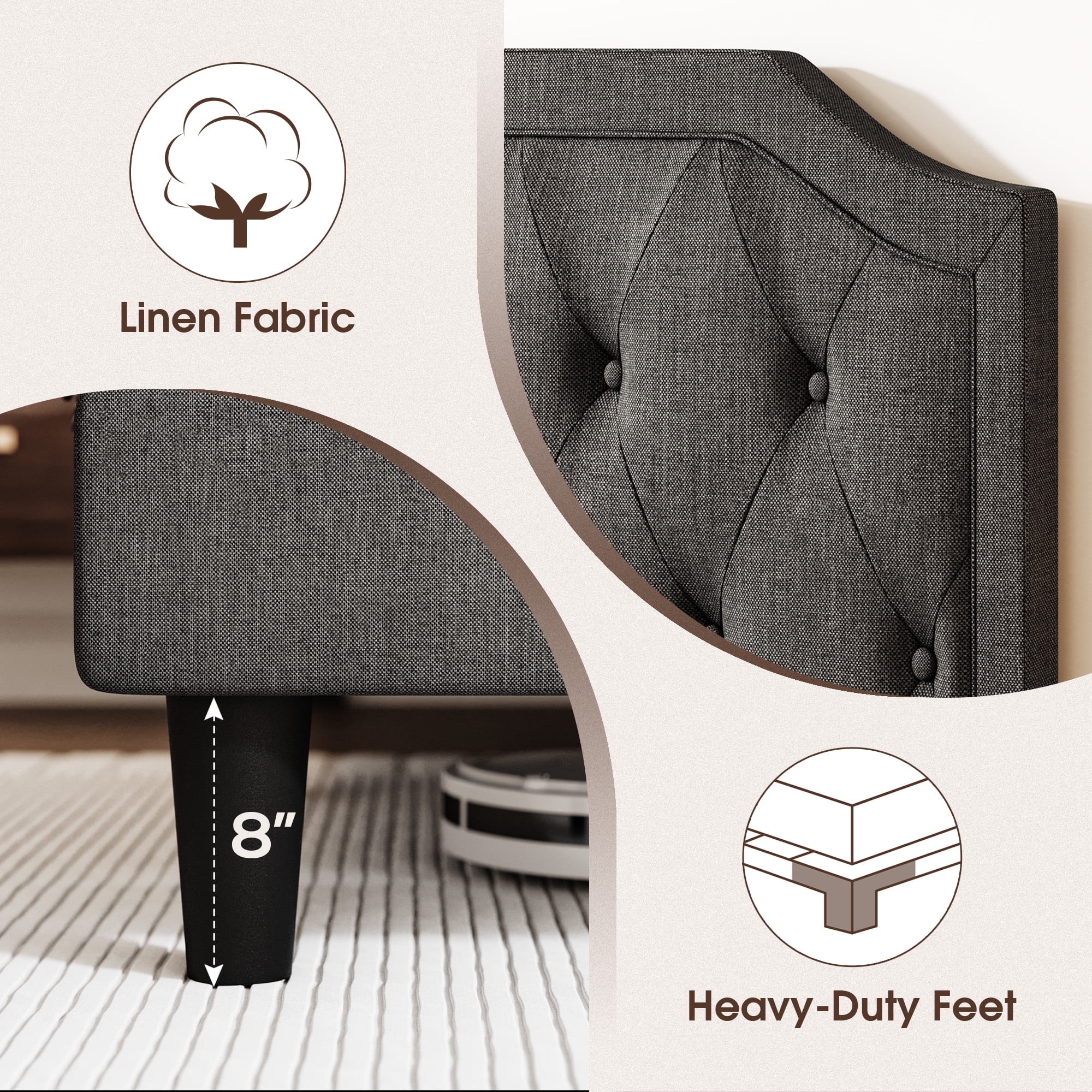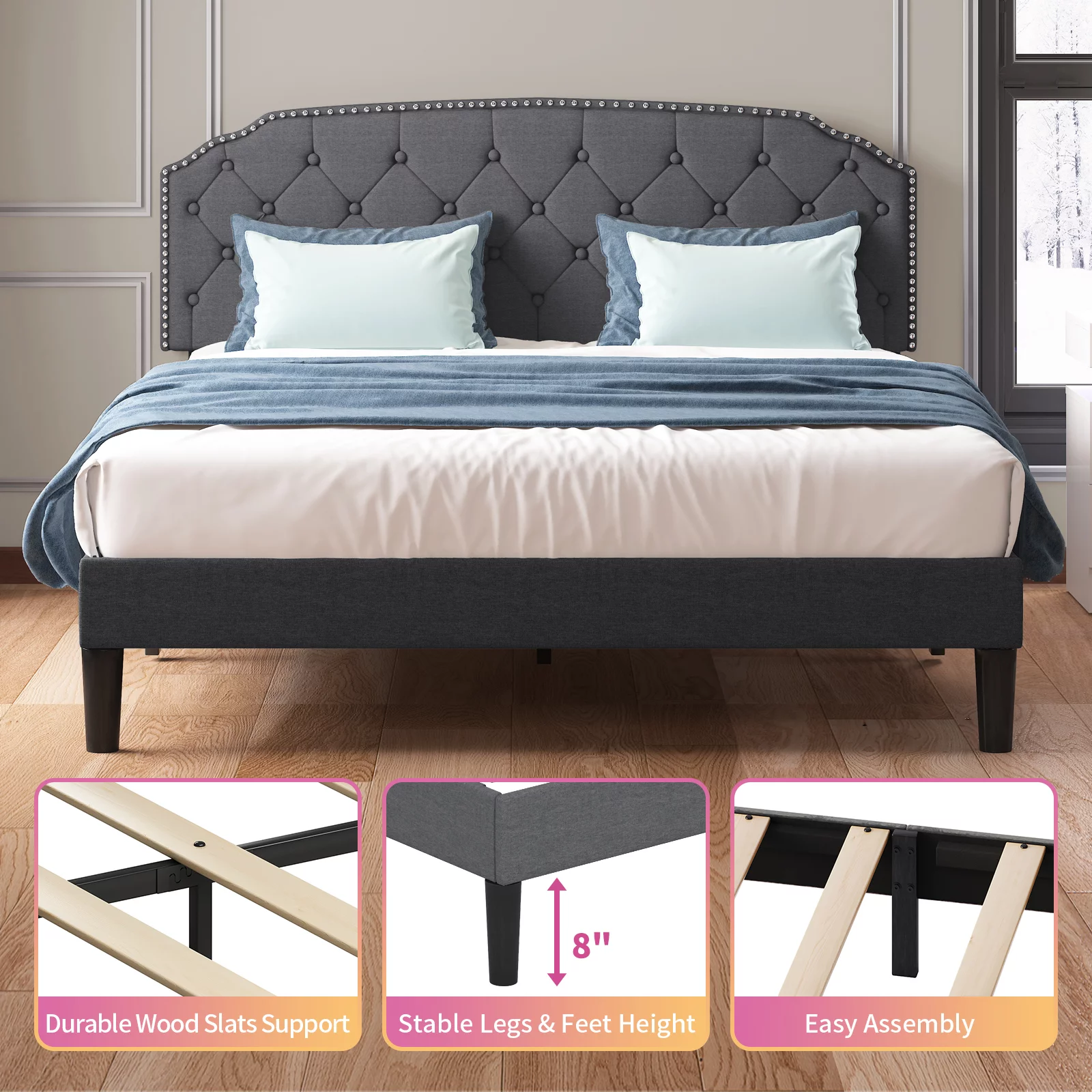 alazyhome King Size Upholstered Platform Bed Frame with Button Tufted Linen Headboard, Black
