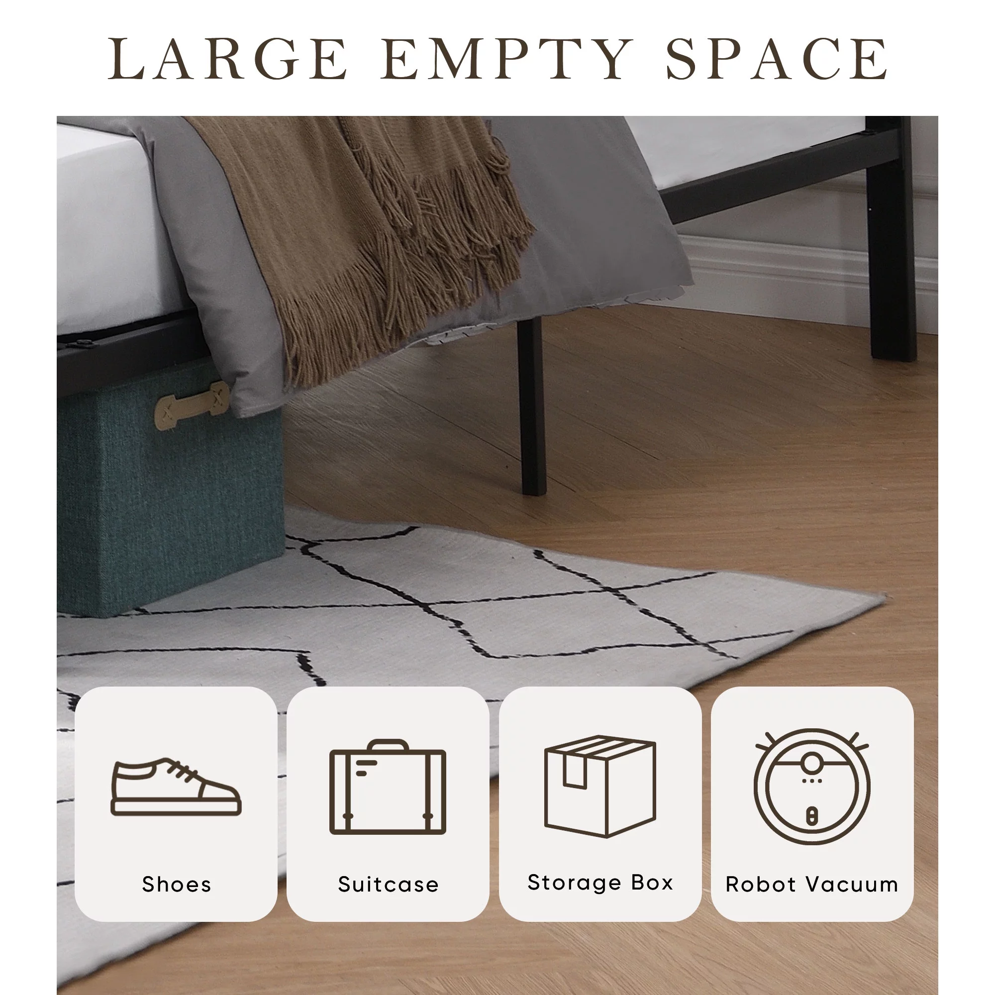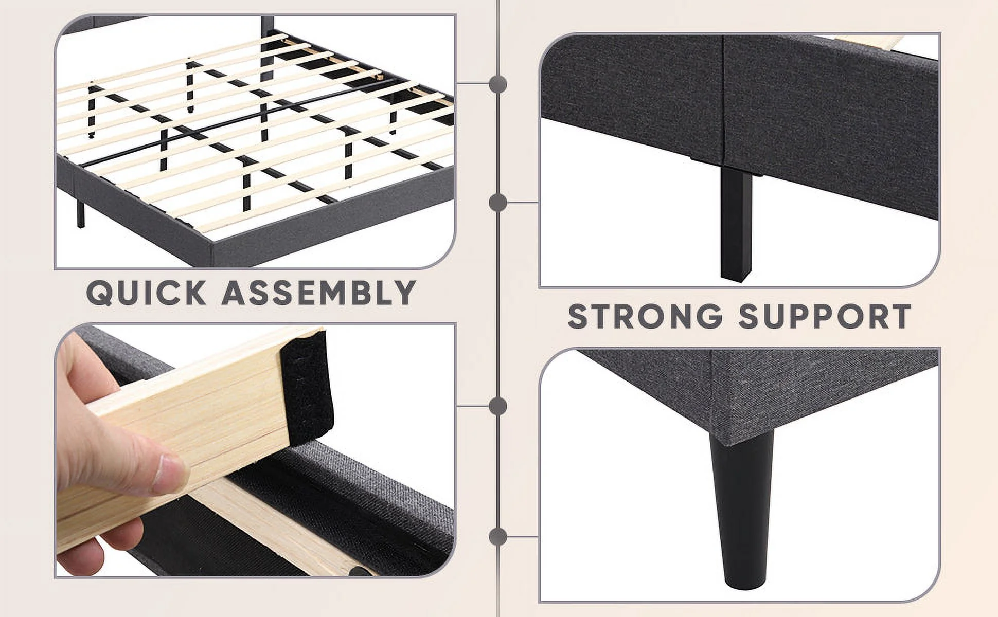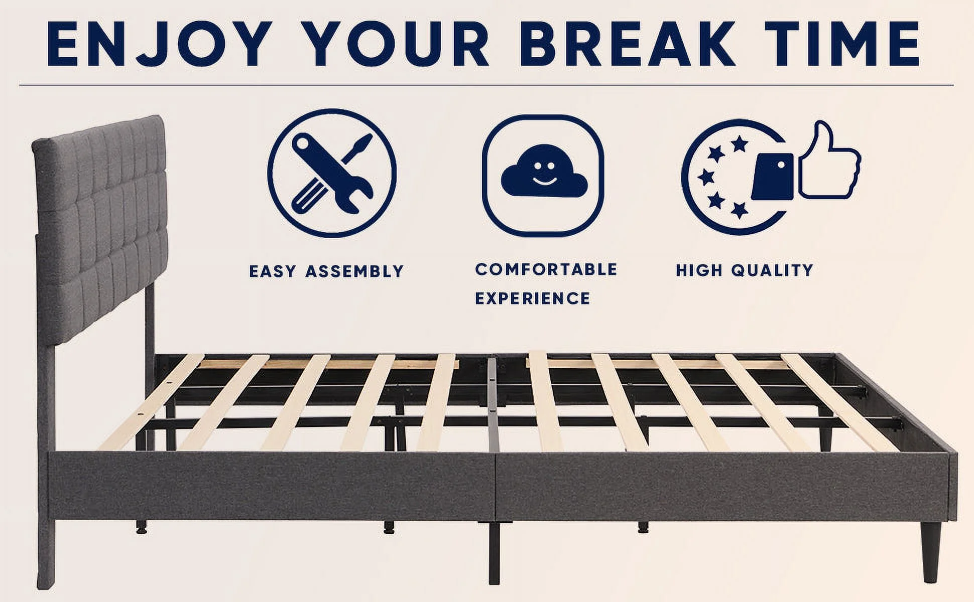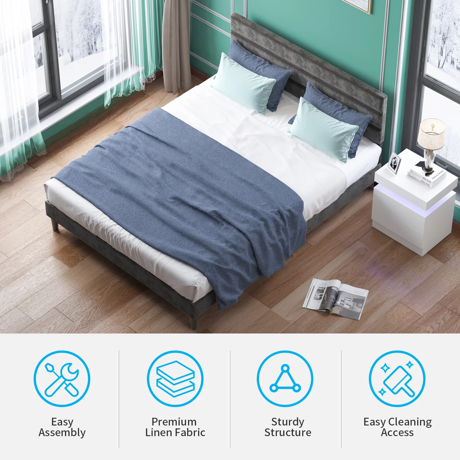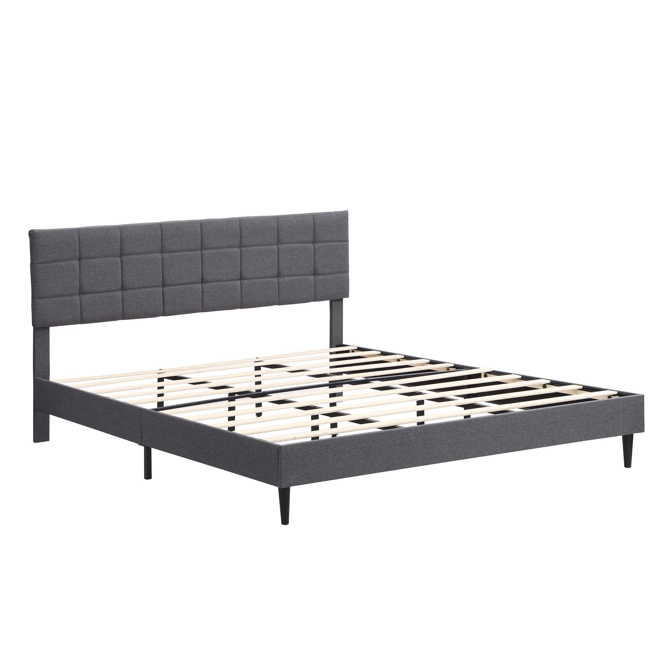 alazyhome King Size Upholstered Platform Bed Frame with Button Tufted Linen Headboard, Black