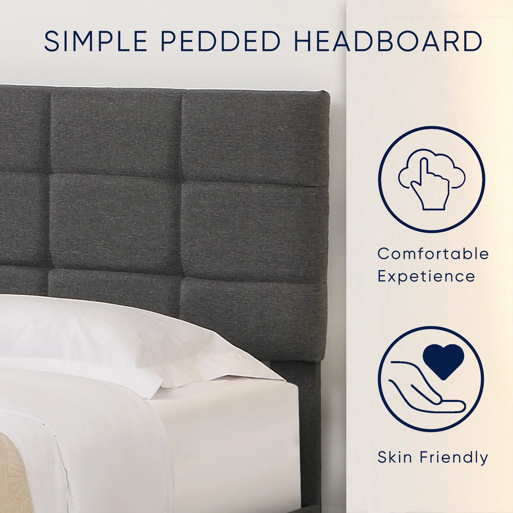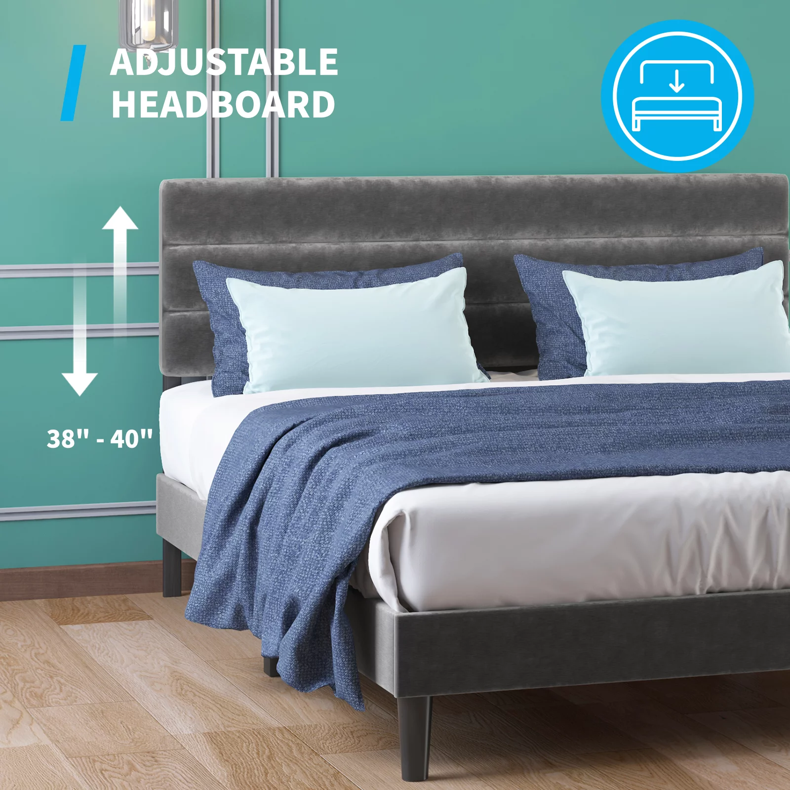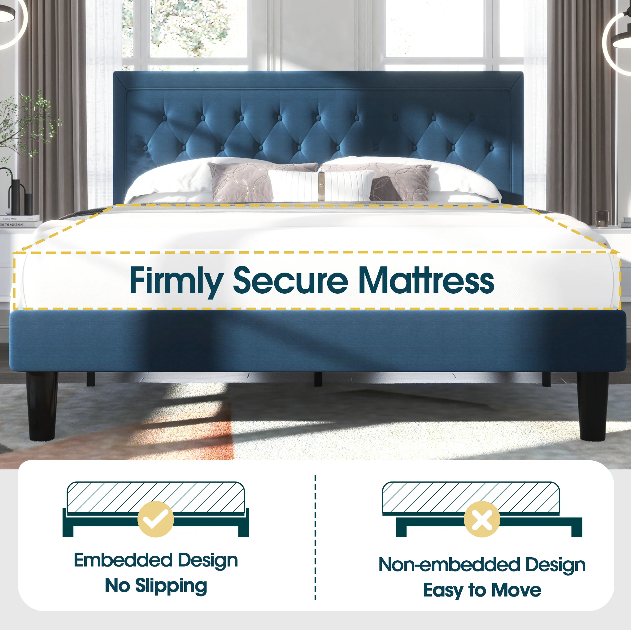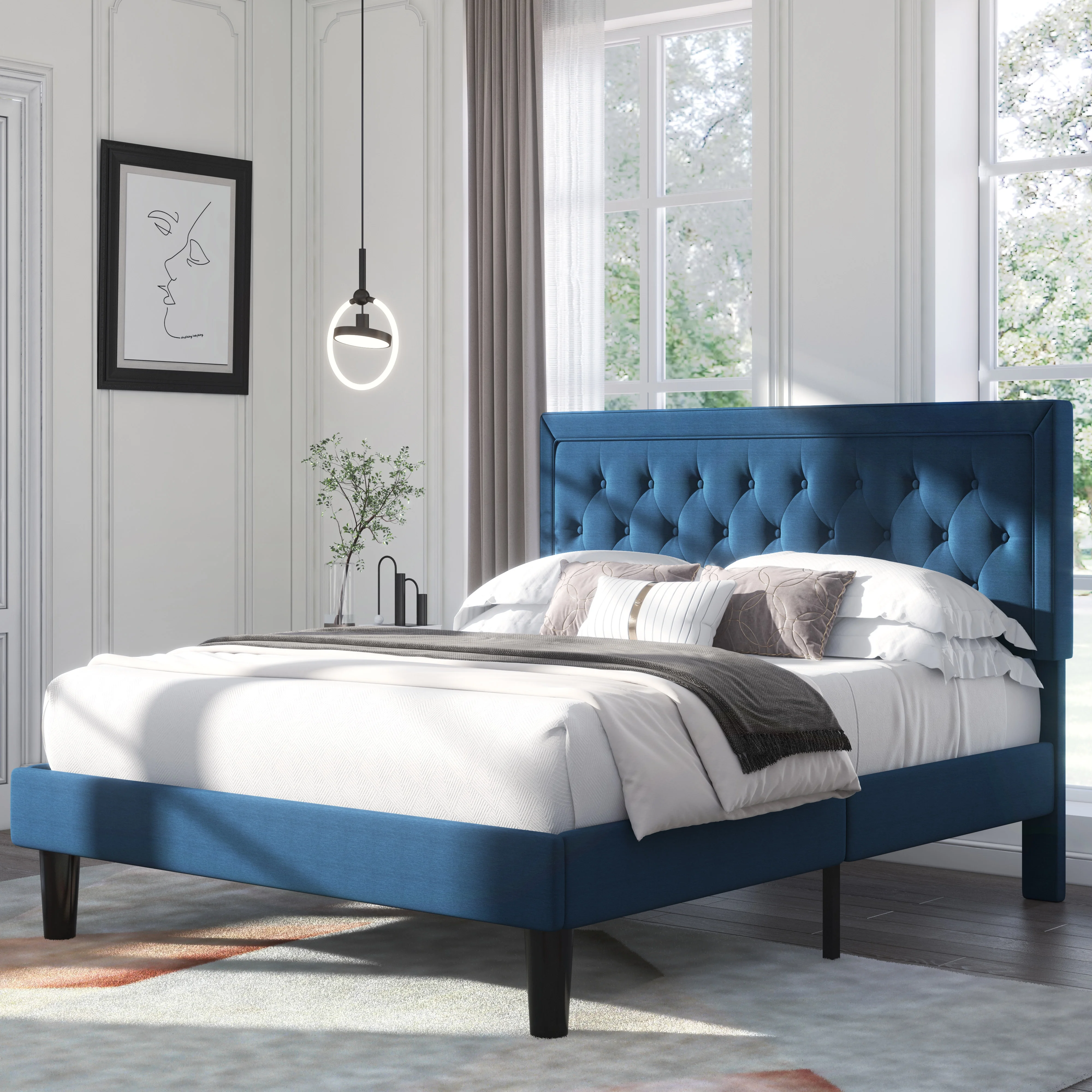 Einfach King Size Upholstered Platform Bed Frame with Adjustable Headboard, Dark Blue