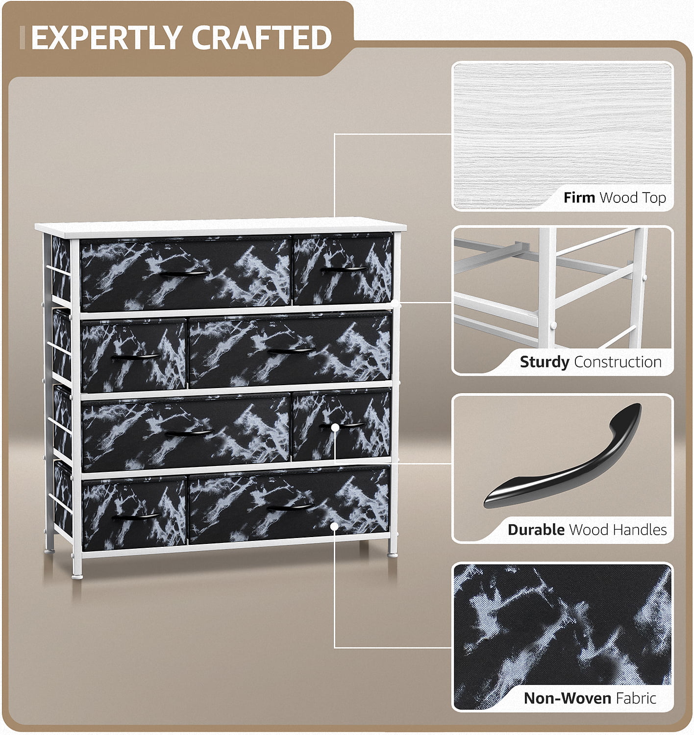 REAHOME 8 Drawer Wood Top Storage Dresser w/2 Drawer Organizers, Dark Taupe