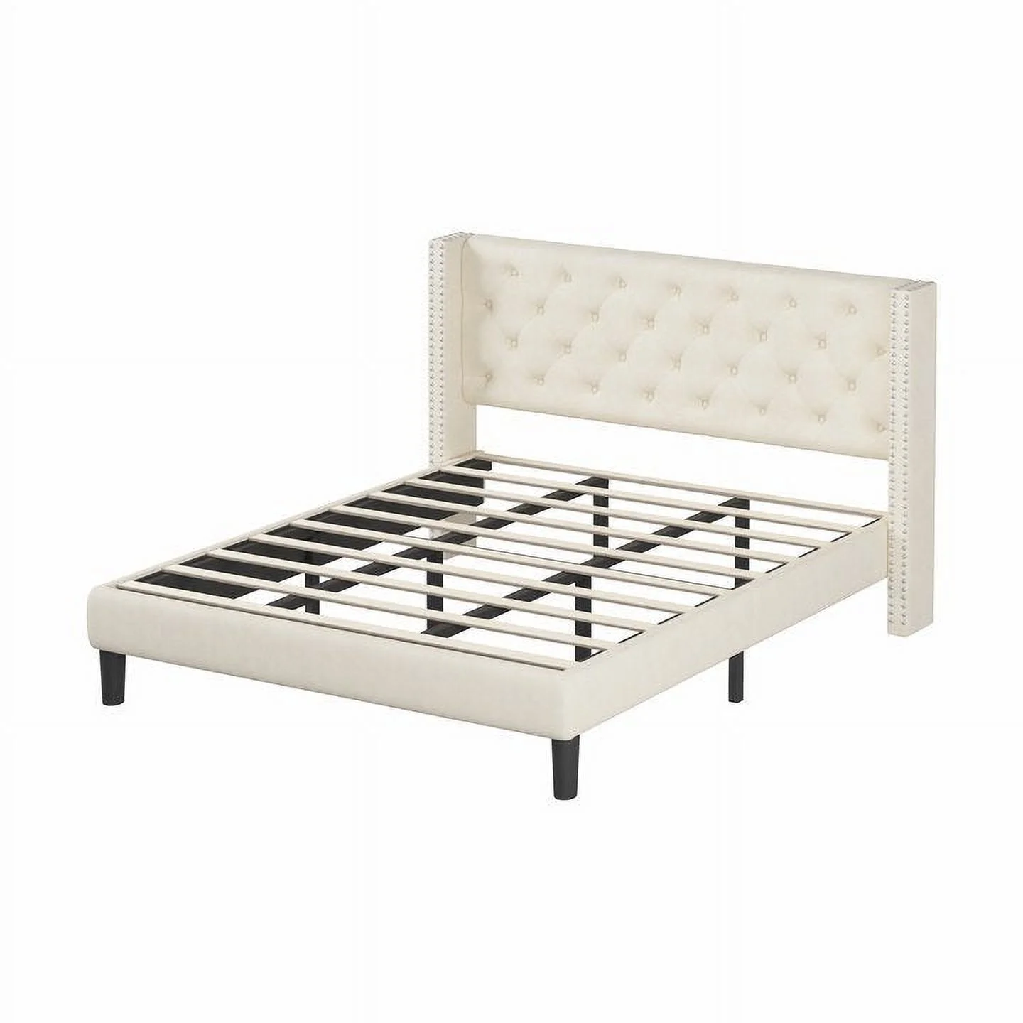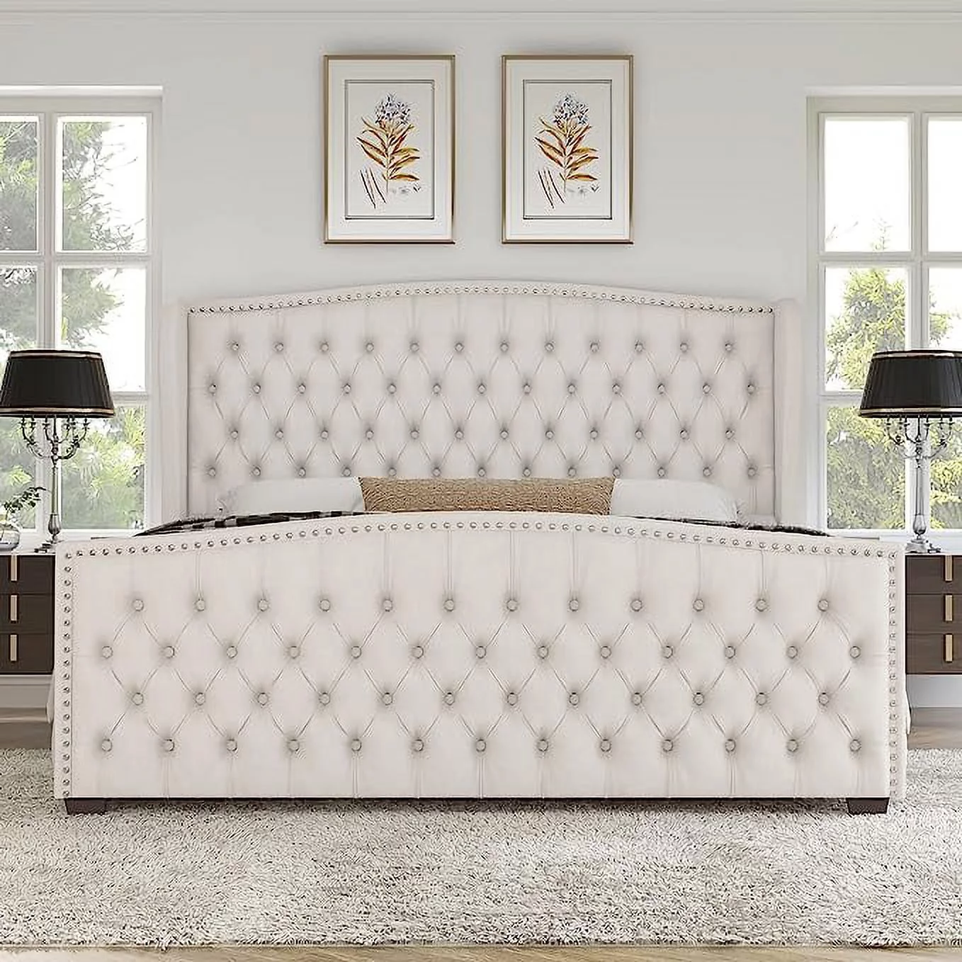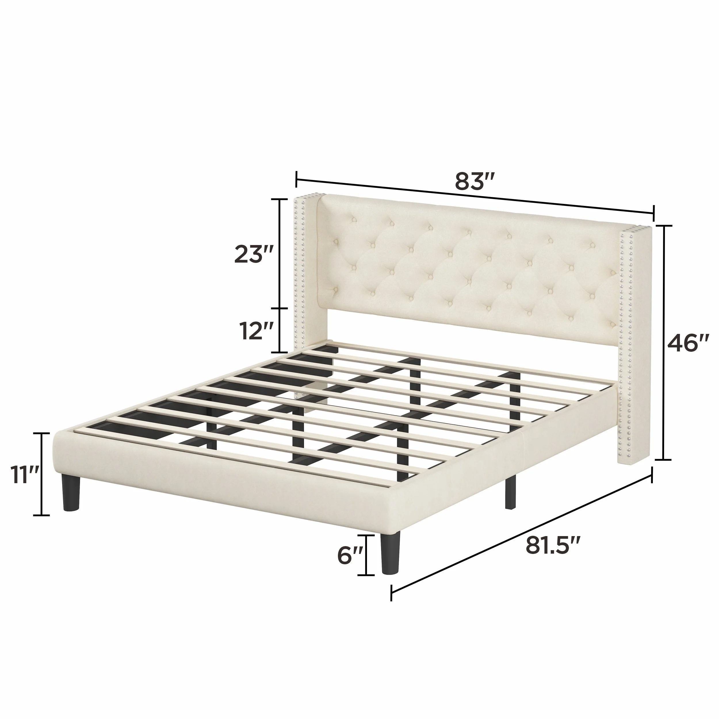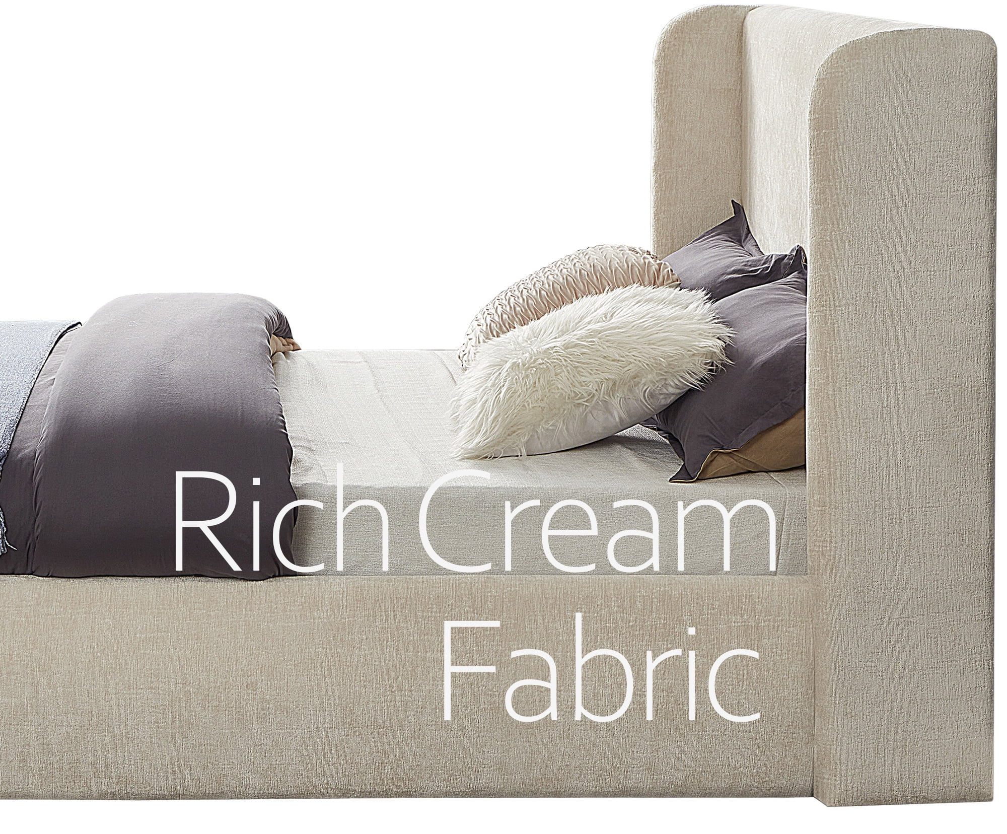 King Size Cream Platform Bed Frame 46" High Headboard Tall Upholstered Bed