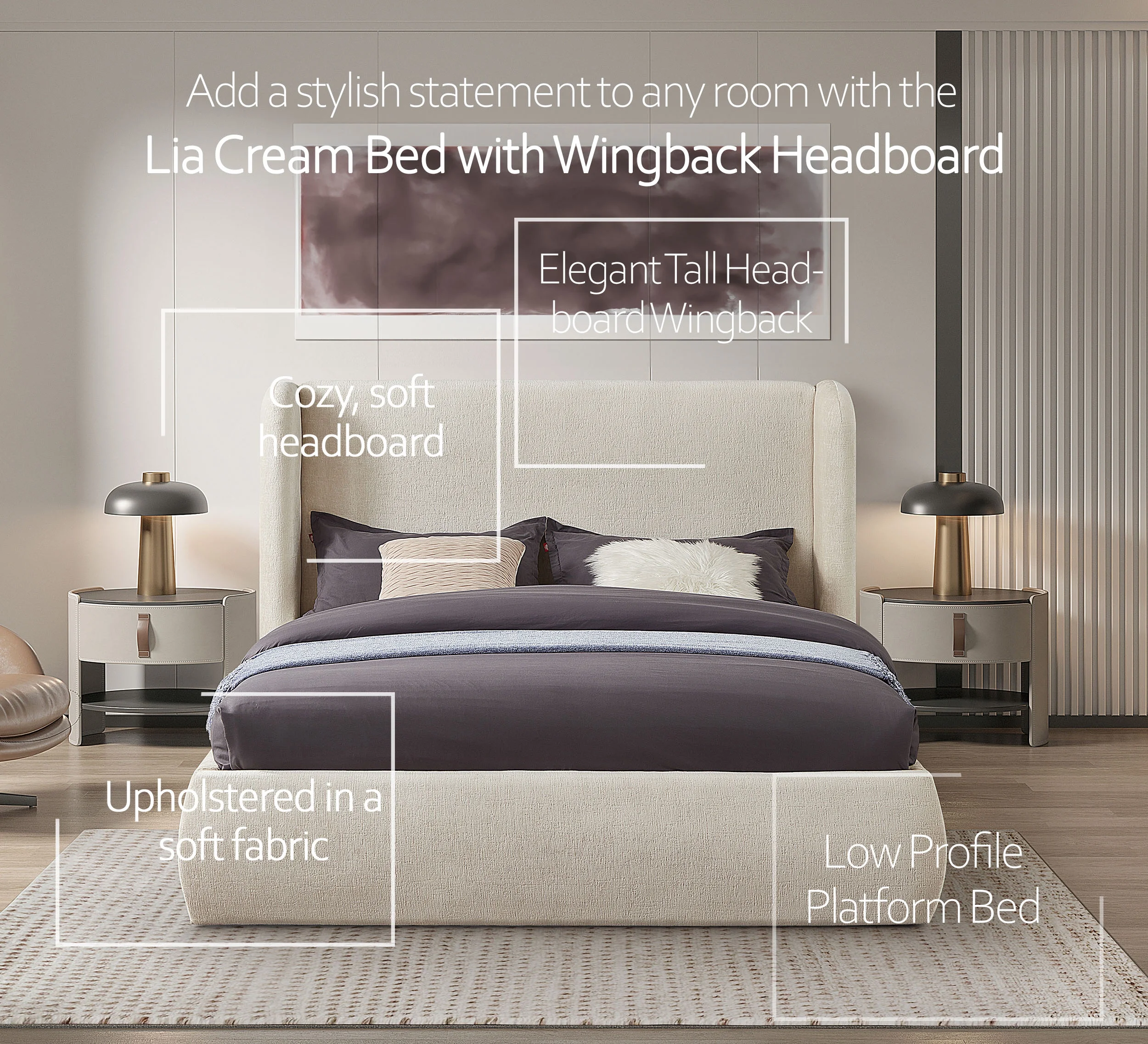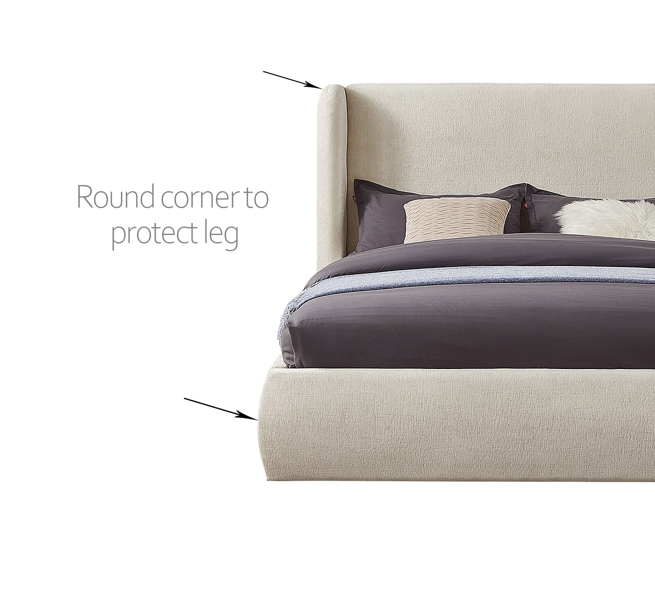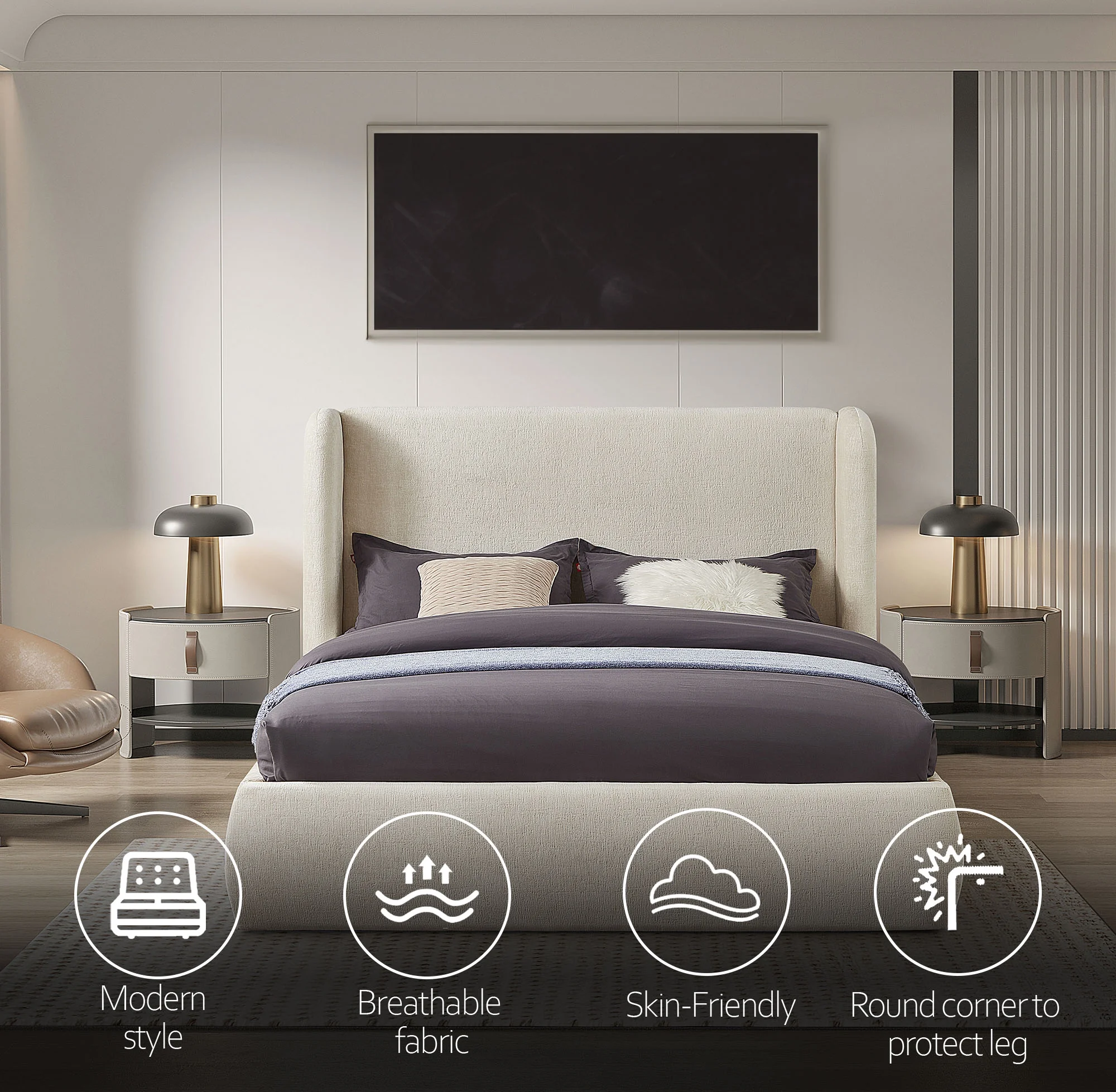 King Size Cream Platform Bed Frame 46" High Headboard Tall Upholstered Bed