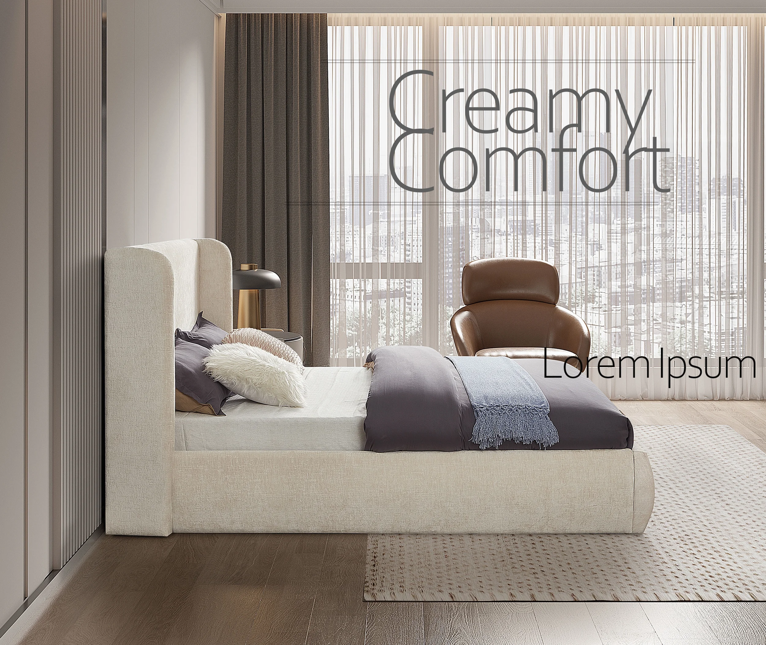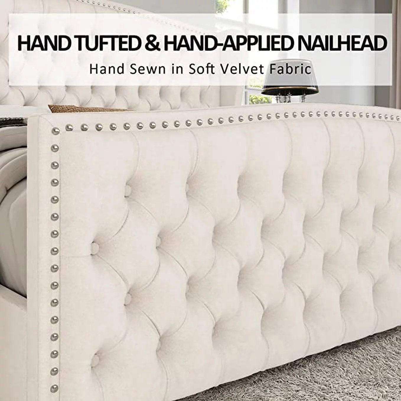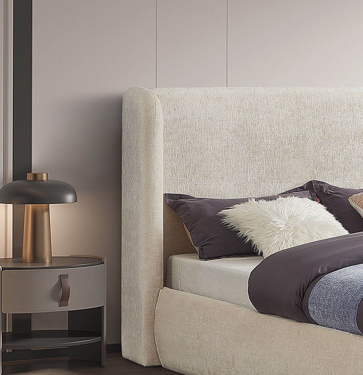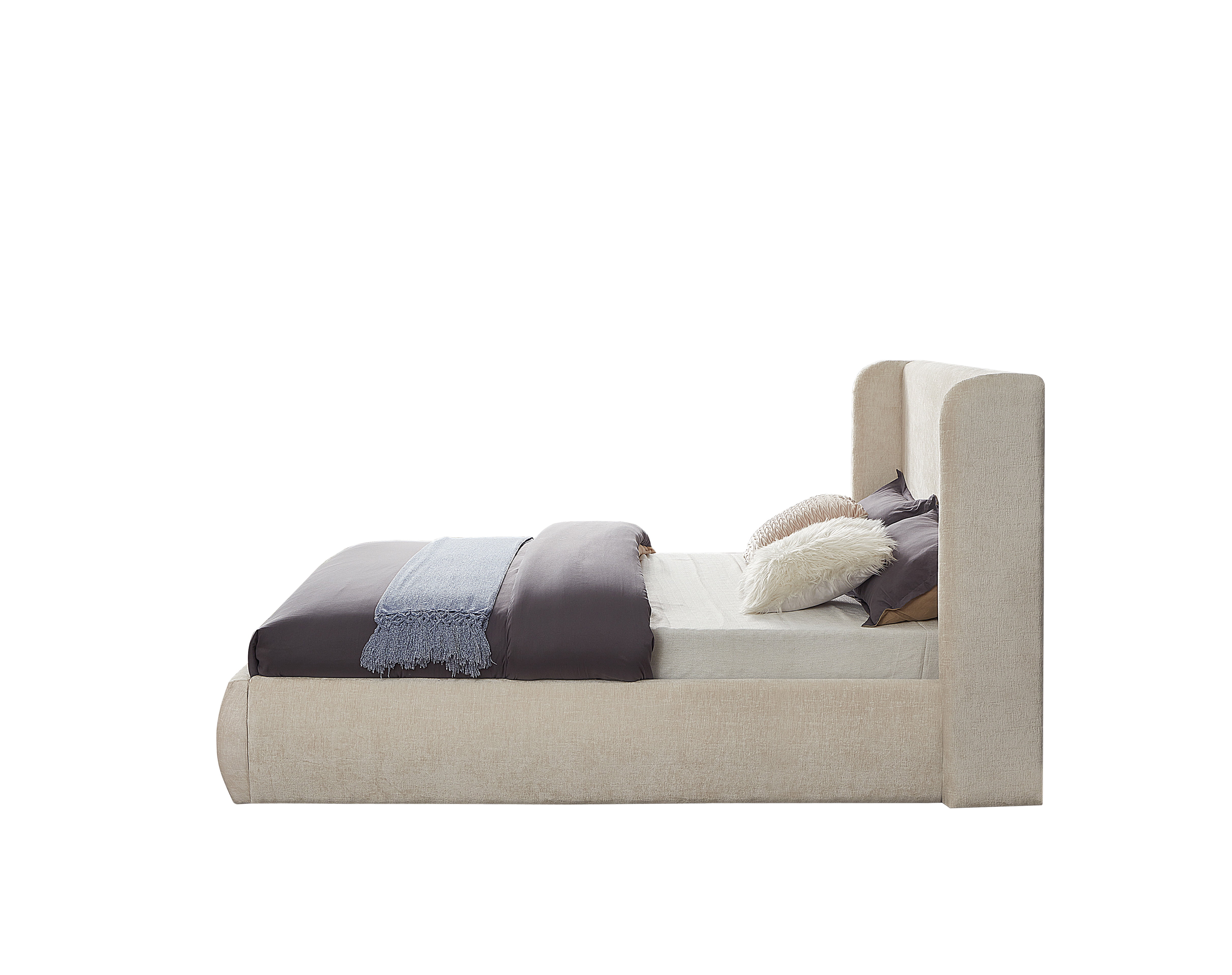 King Size Cream Platform Bed Frame 46" High Headboard Tall Upholstered Bed