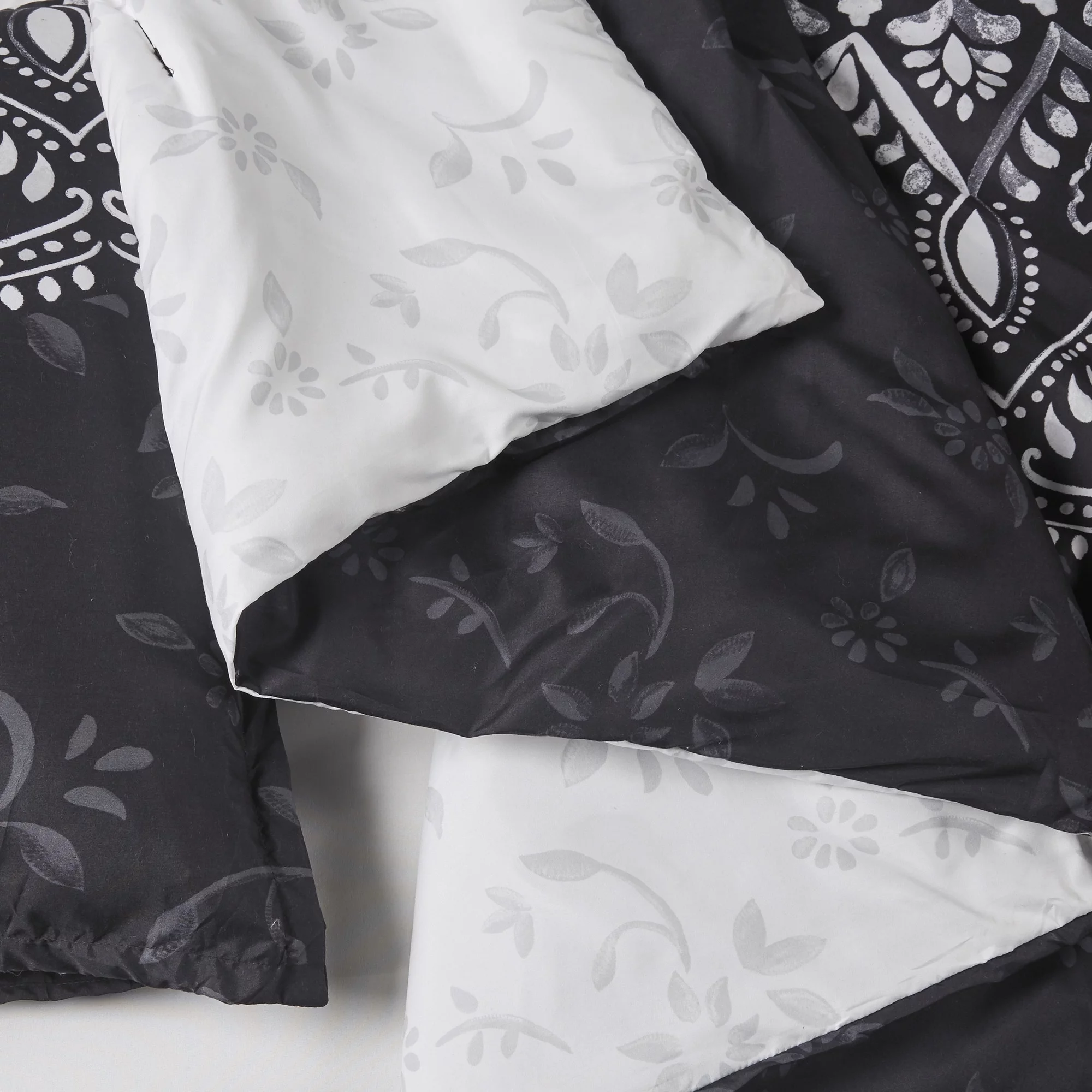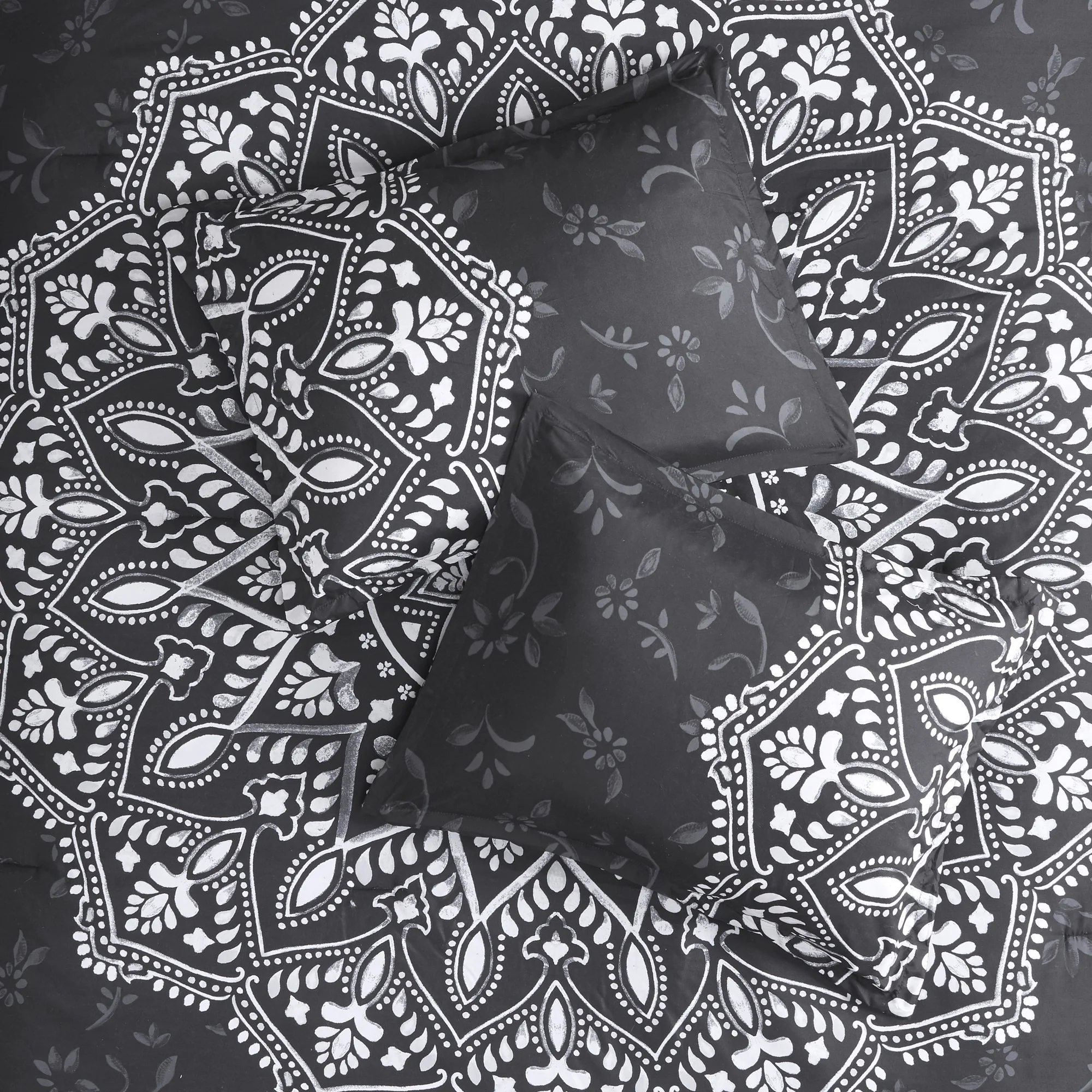 Comfort Spaces King Comforter Set with Sheets and Side Pockets Medallion 9Pcs Bed in a Bag Black