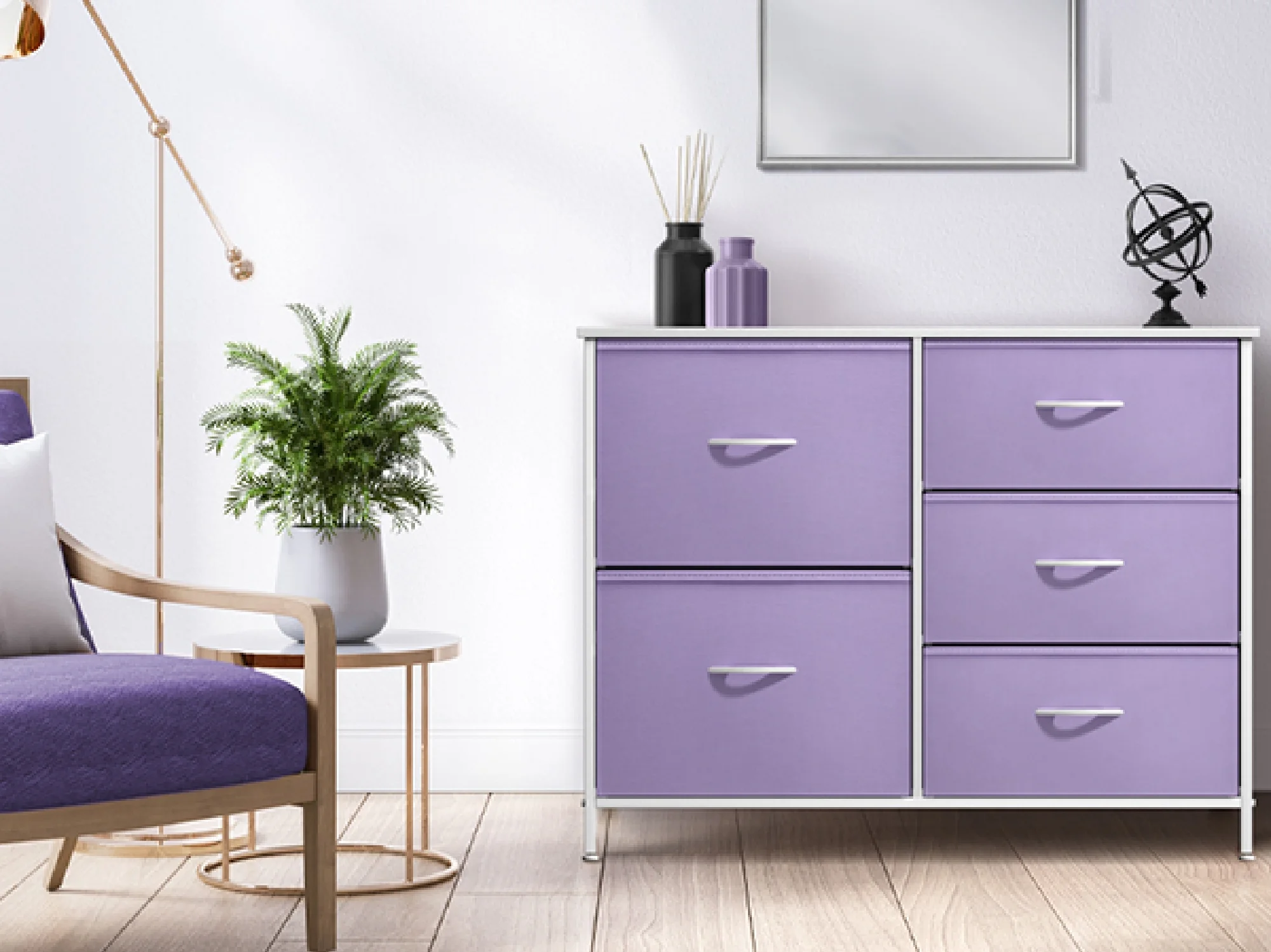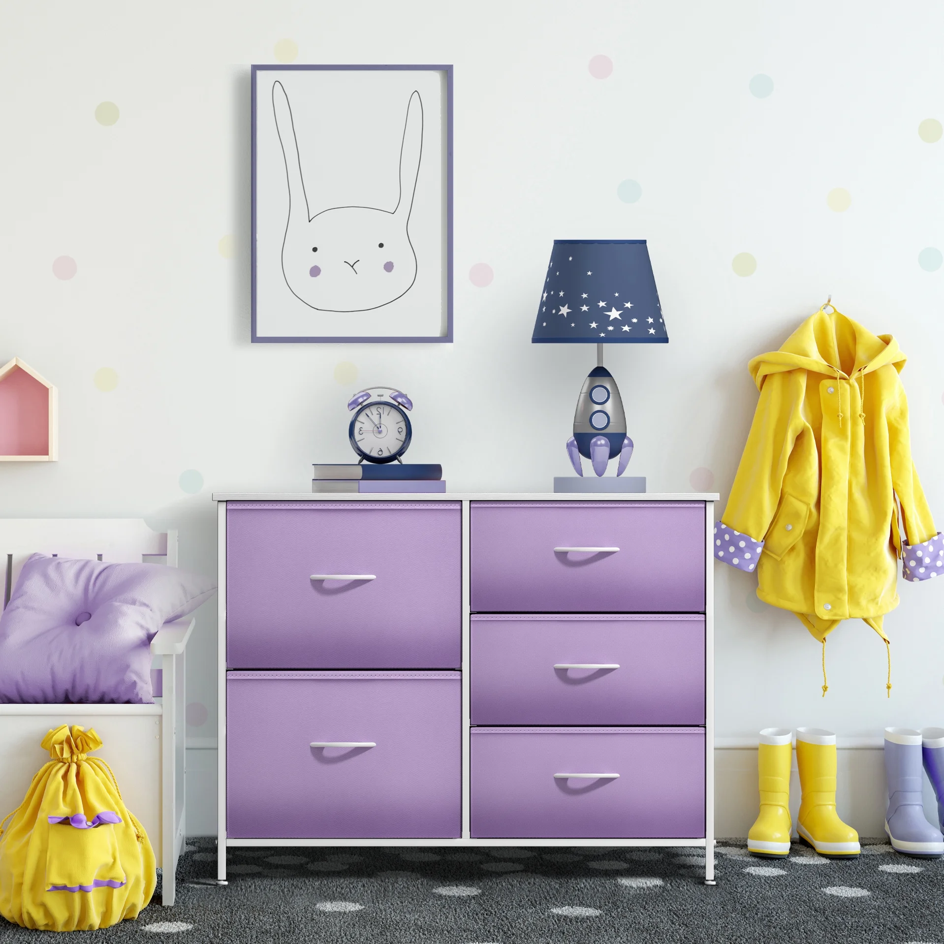Sorbus 5-Drawer Dresser - Nightstand End Table for Home, Bedroom, Dorm (Pastel Purple)