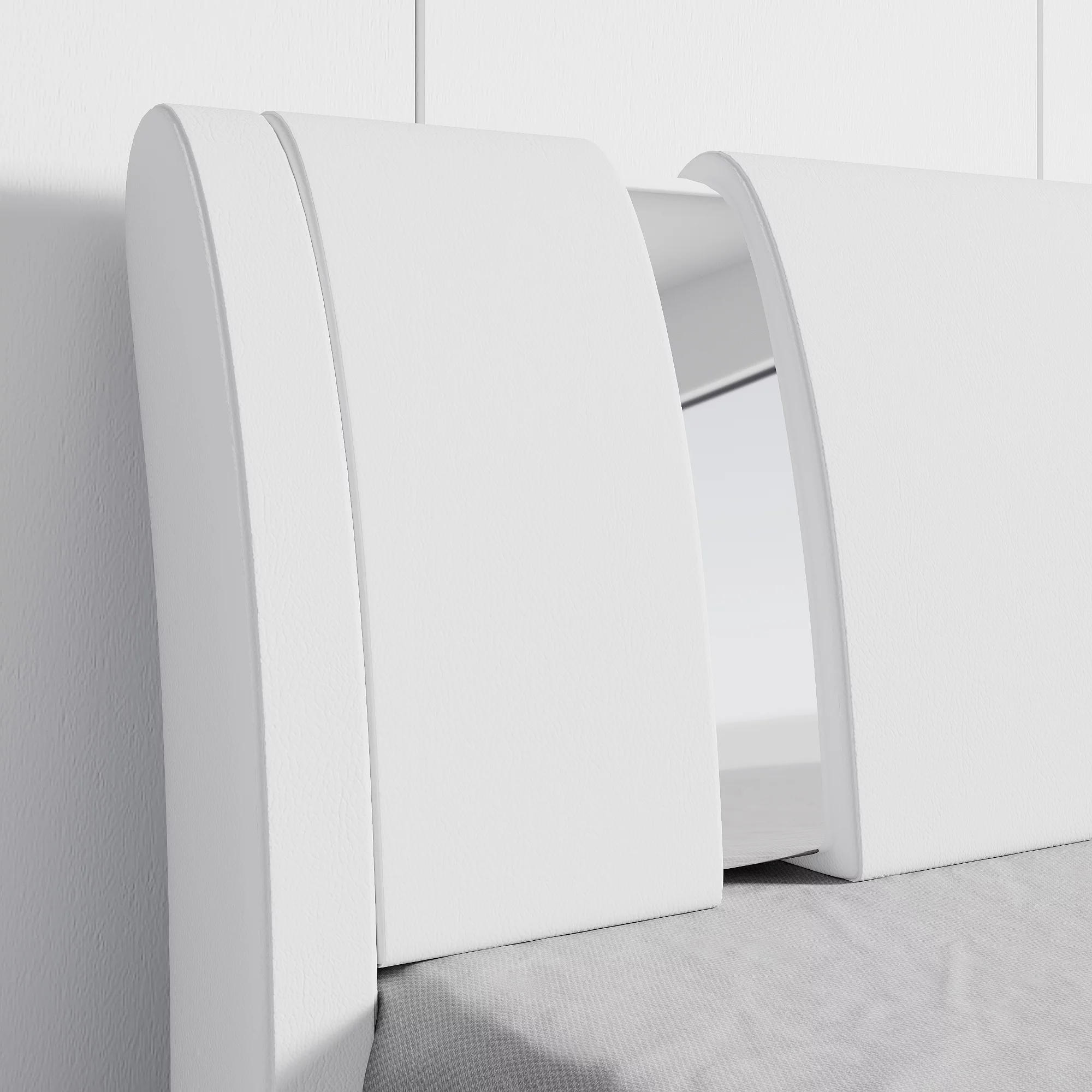 Sha Cerlin King Size Platform Bed Frame with Delux Iron Pieces Decor and Modern Faux Leather, White