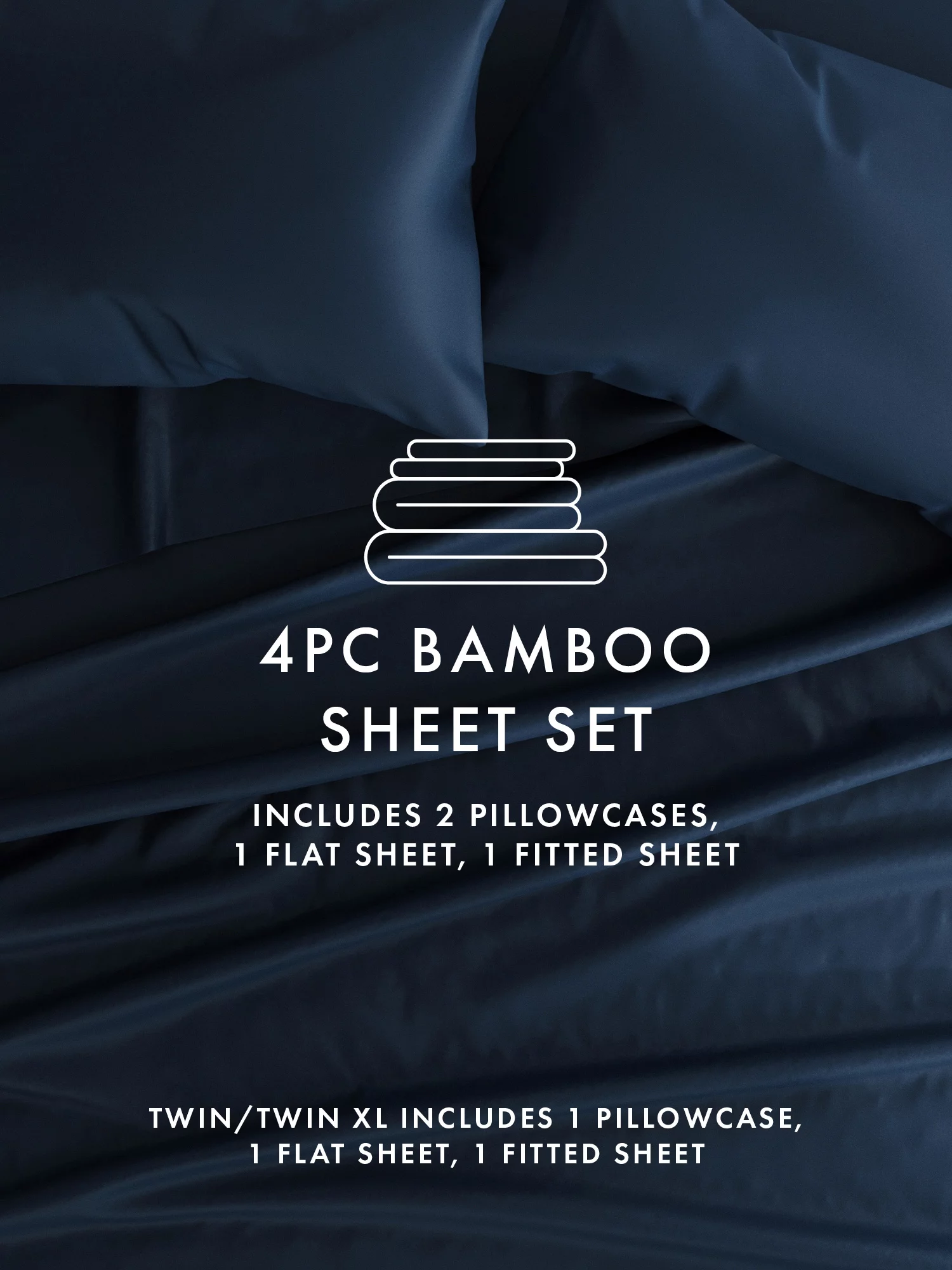 Comfort Canopy - Luxury Navy 4 Piece Bamboo Bed Sheets Set for California King Bedding