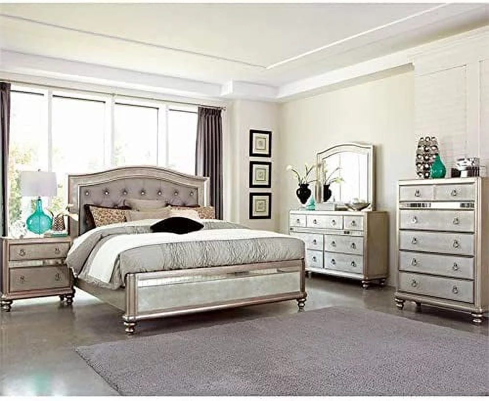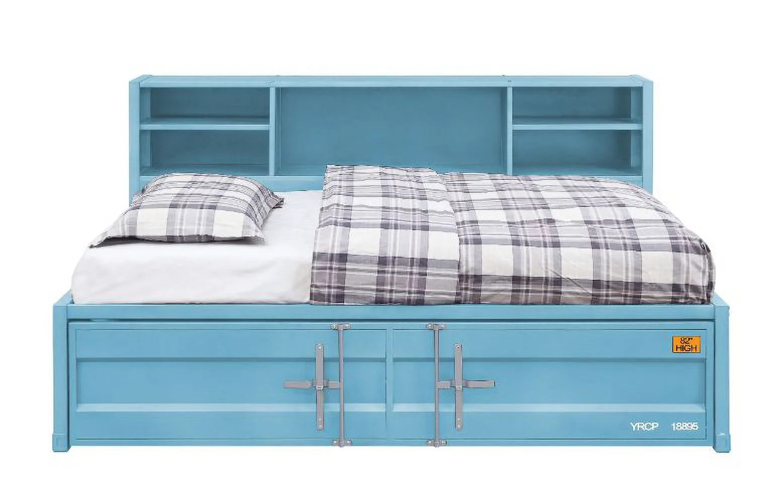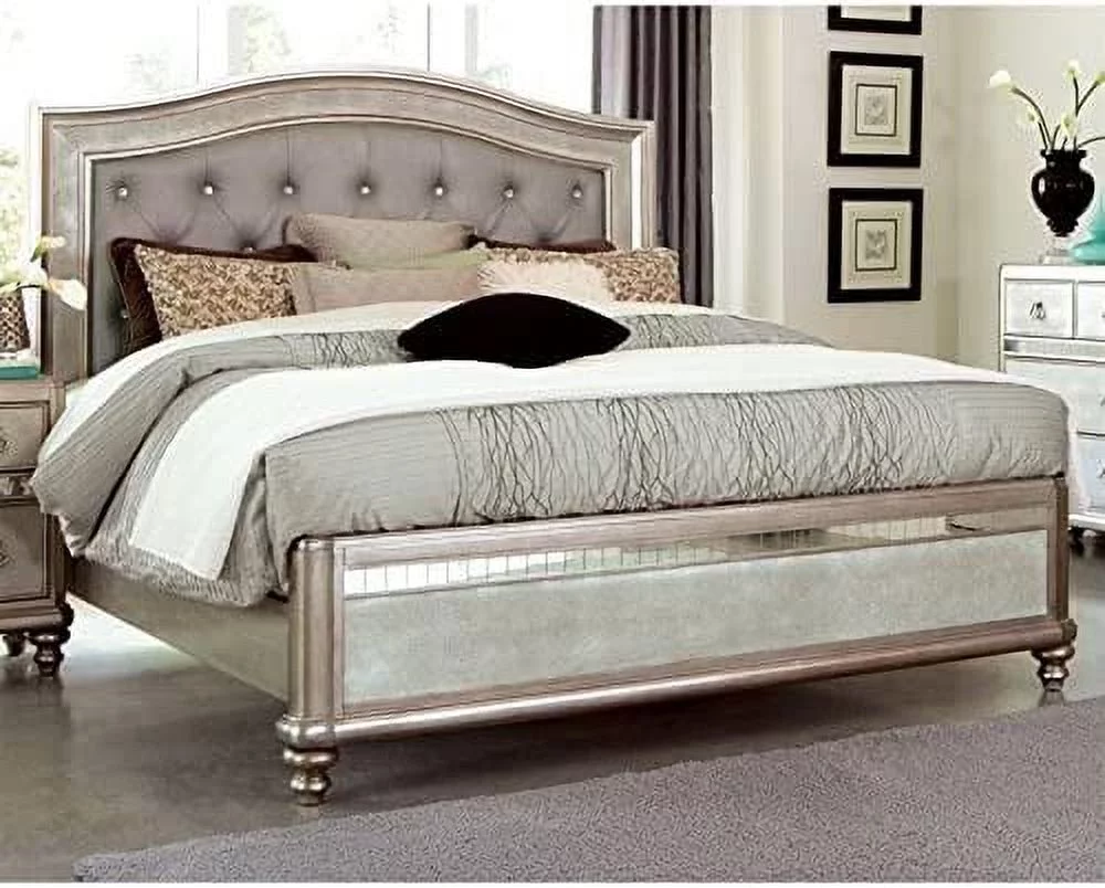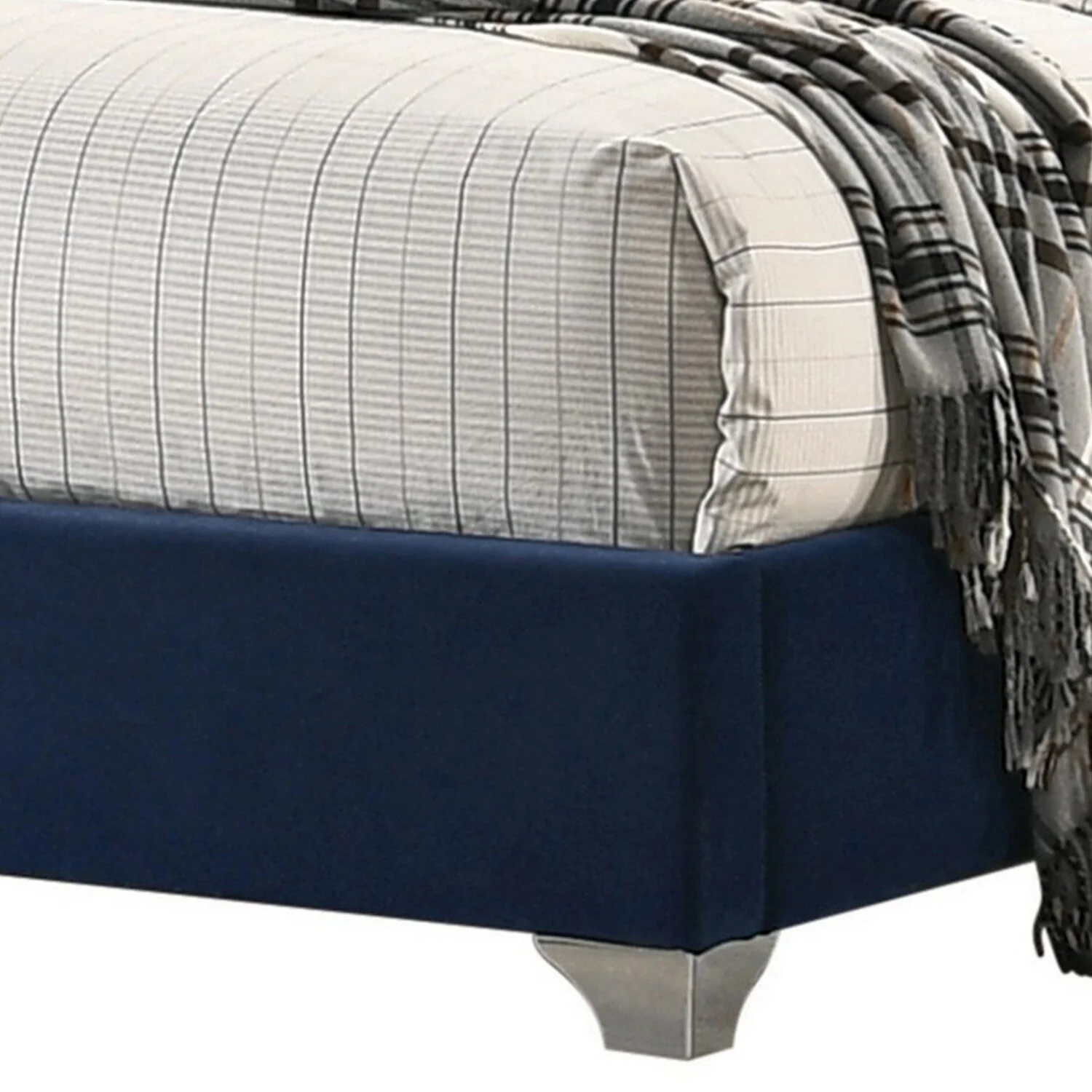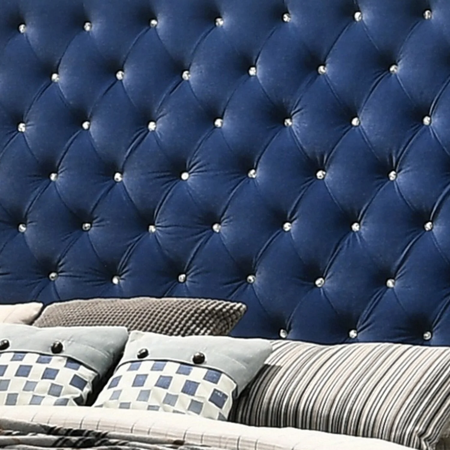 Benjara Velvet Upholstery Tufted Headboard Giya Wingback Queen Size Bed, Pacific Blue & Nickel