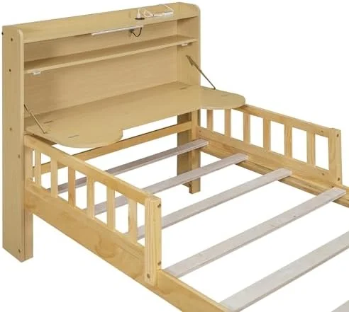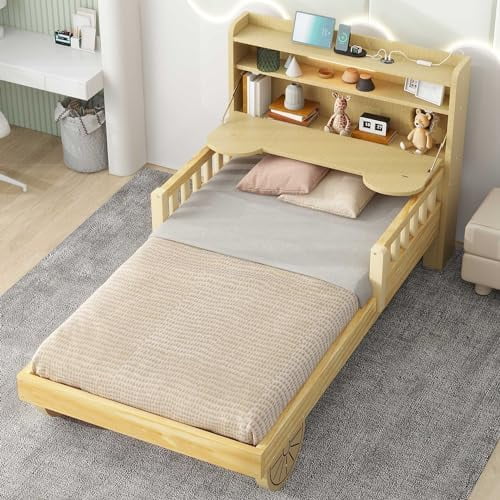 Churanty Twin Size Upholstered Daybed with Storage Armrests and USB Port, Beige