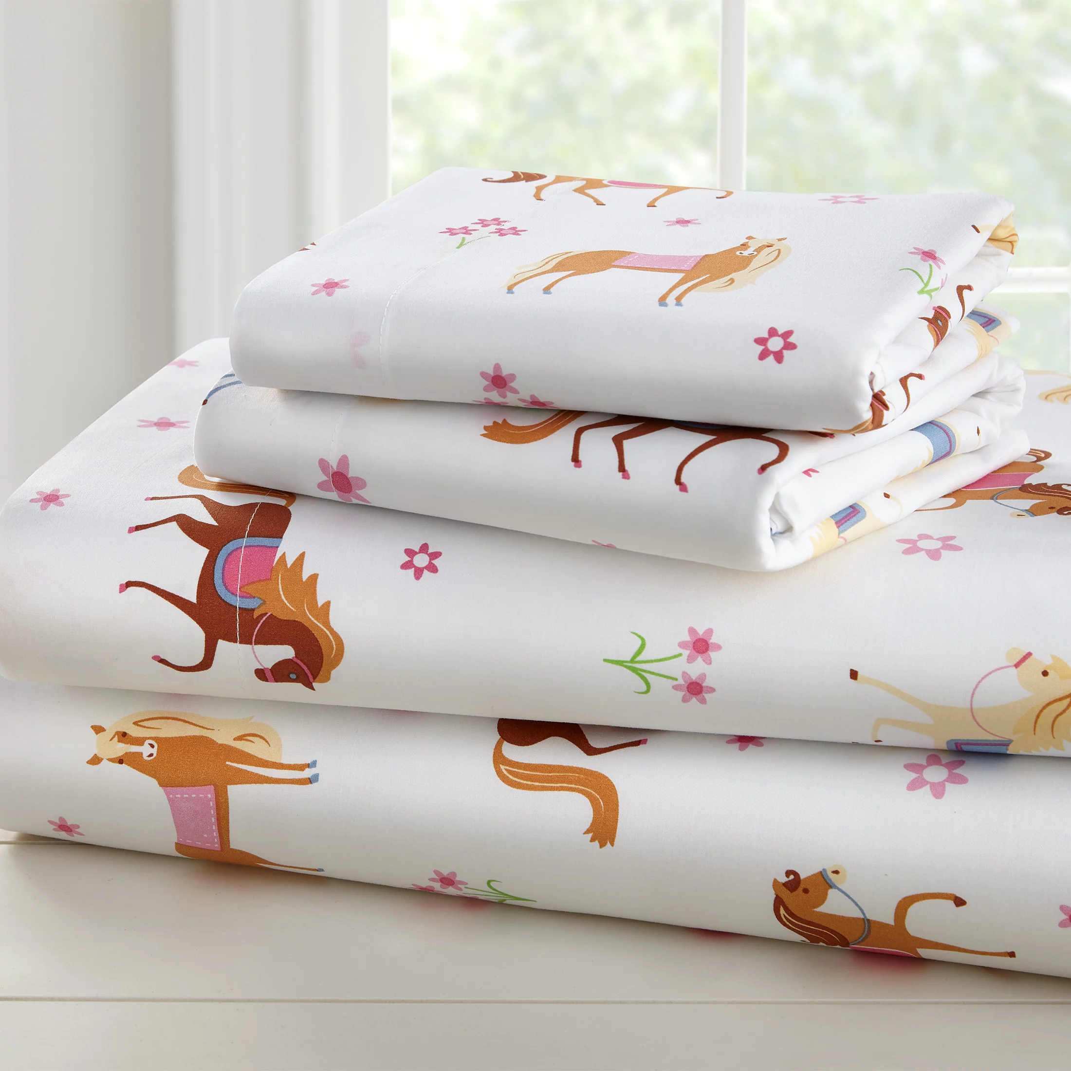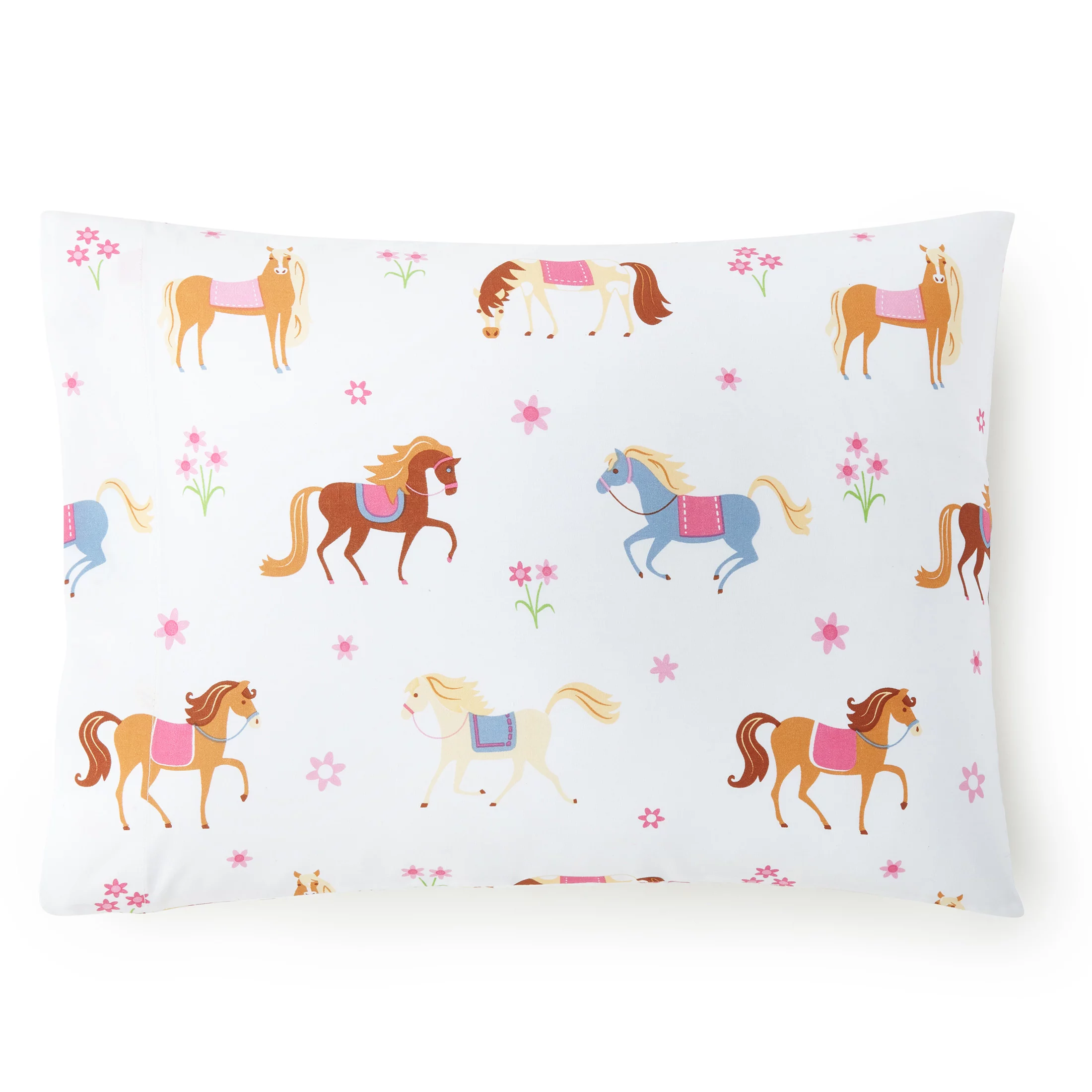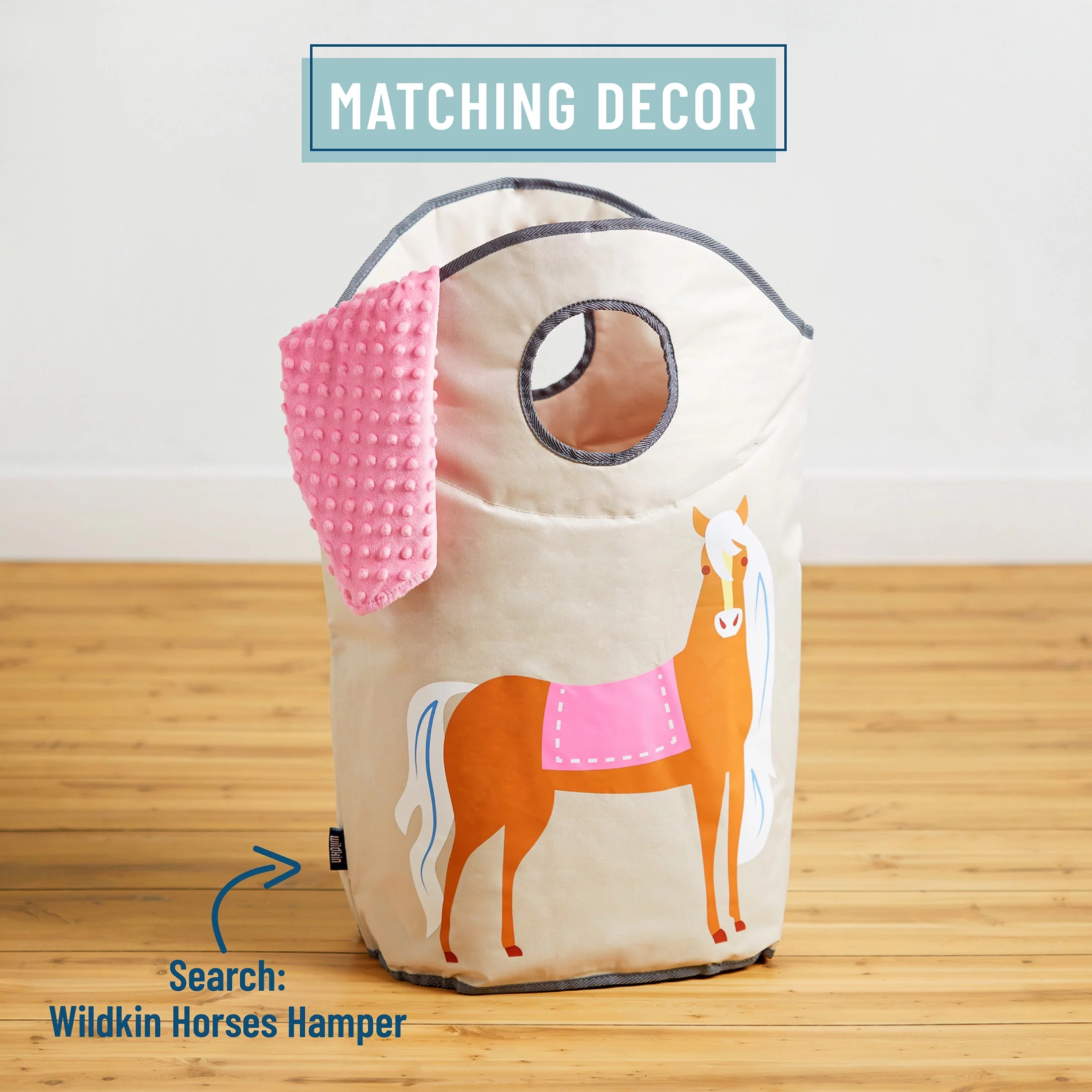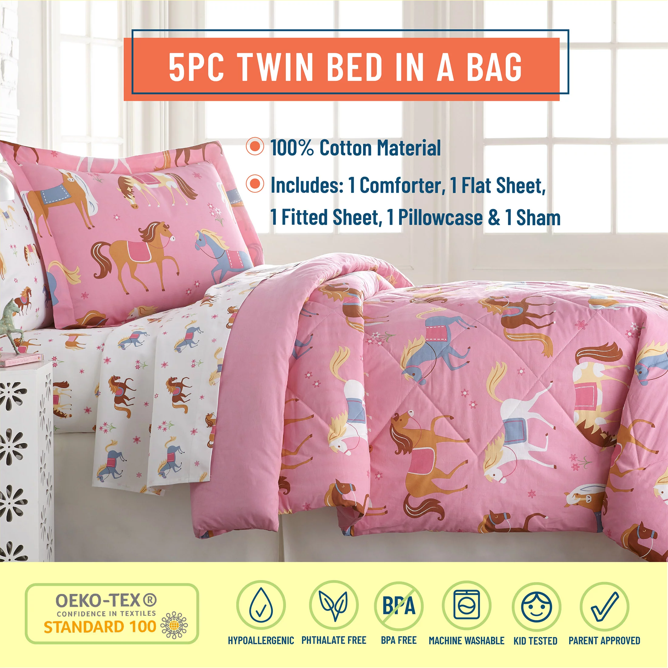 Wildkin Kids 5 Pc Twin Cotton Bed in a Bag for Boys & Girls (Horses Pink)