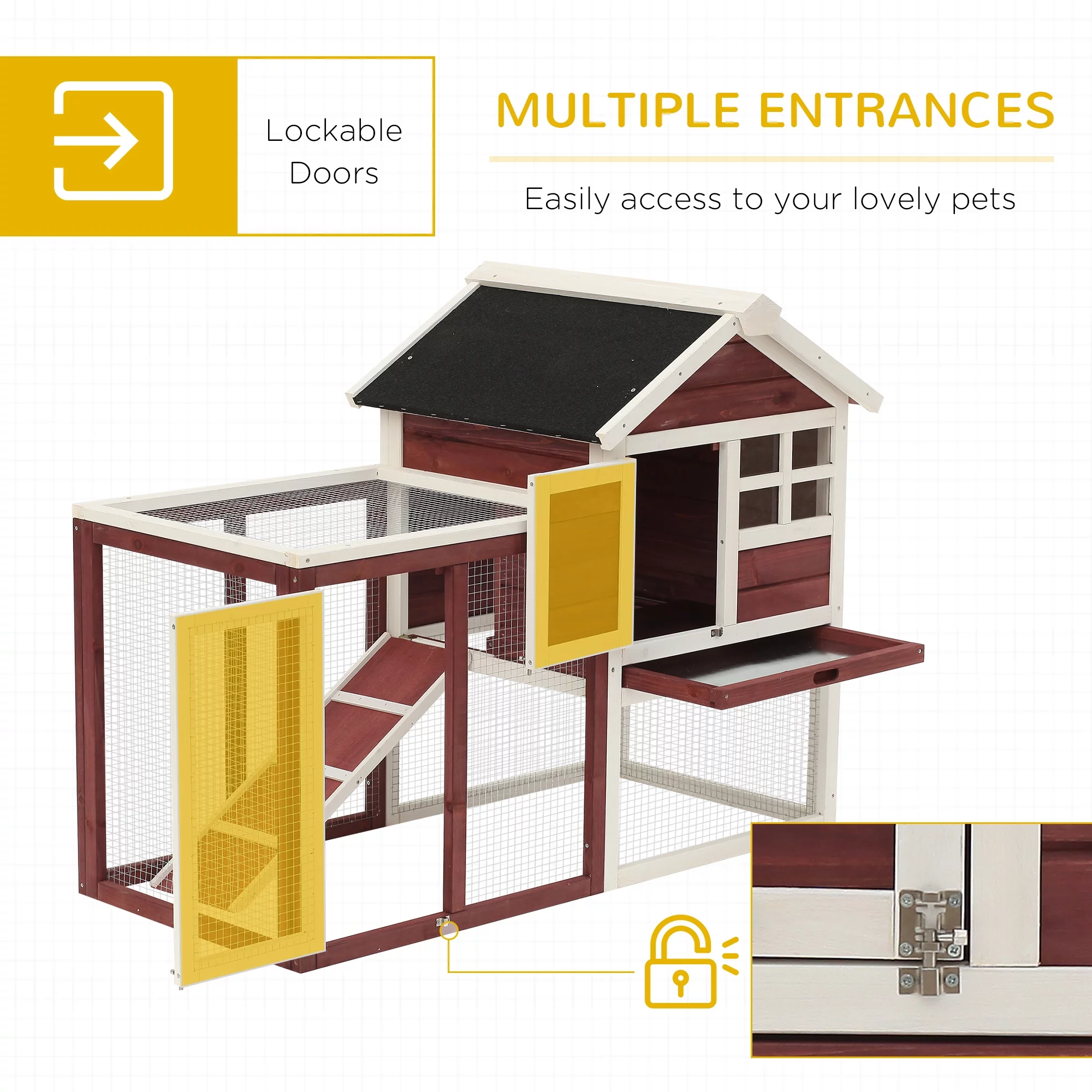PawHut 48" Weatherproof Wooden Rabbit Hutch with Slant Roof & Outdoor Run, Brown