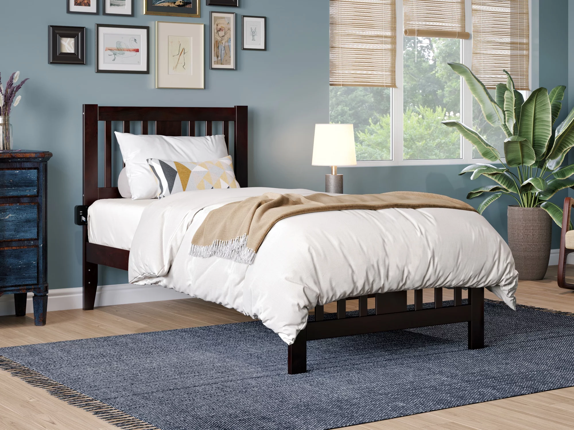 AFI Tahoe 14" Twin Wood Platform Bed with Slatted Headboard and Footboard, Espresso