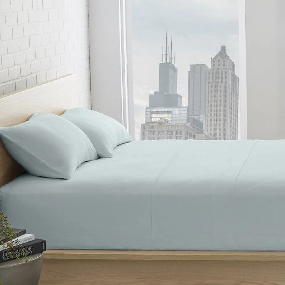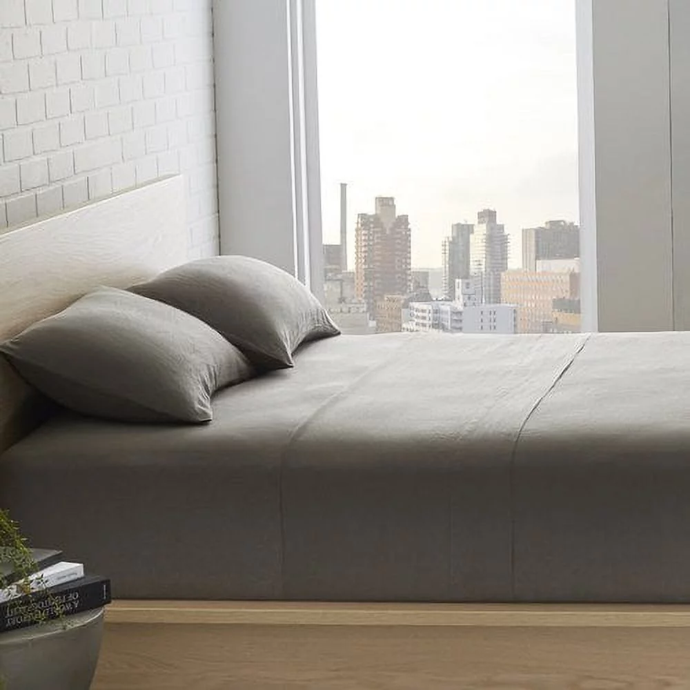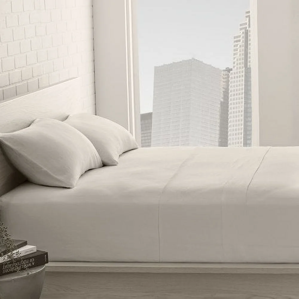 Echelon Home Washed Belgian Linen Sheet Set, California King, Eggshell White
