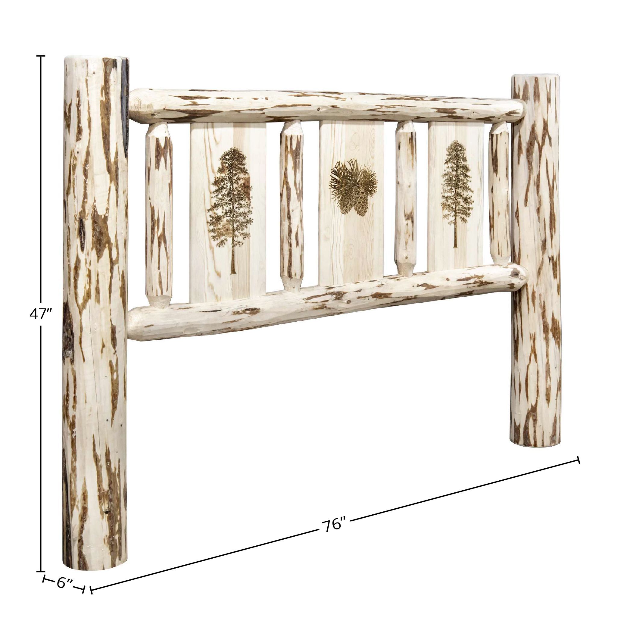 Montana Collection California King Headboard w/ Laser Engraved Pine Design, Clear Lacquer Finish