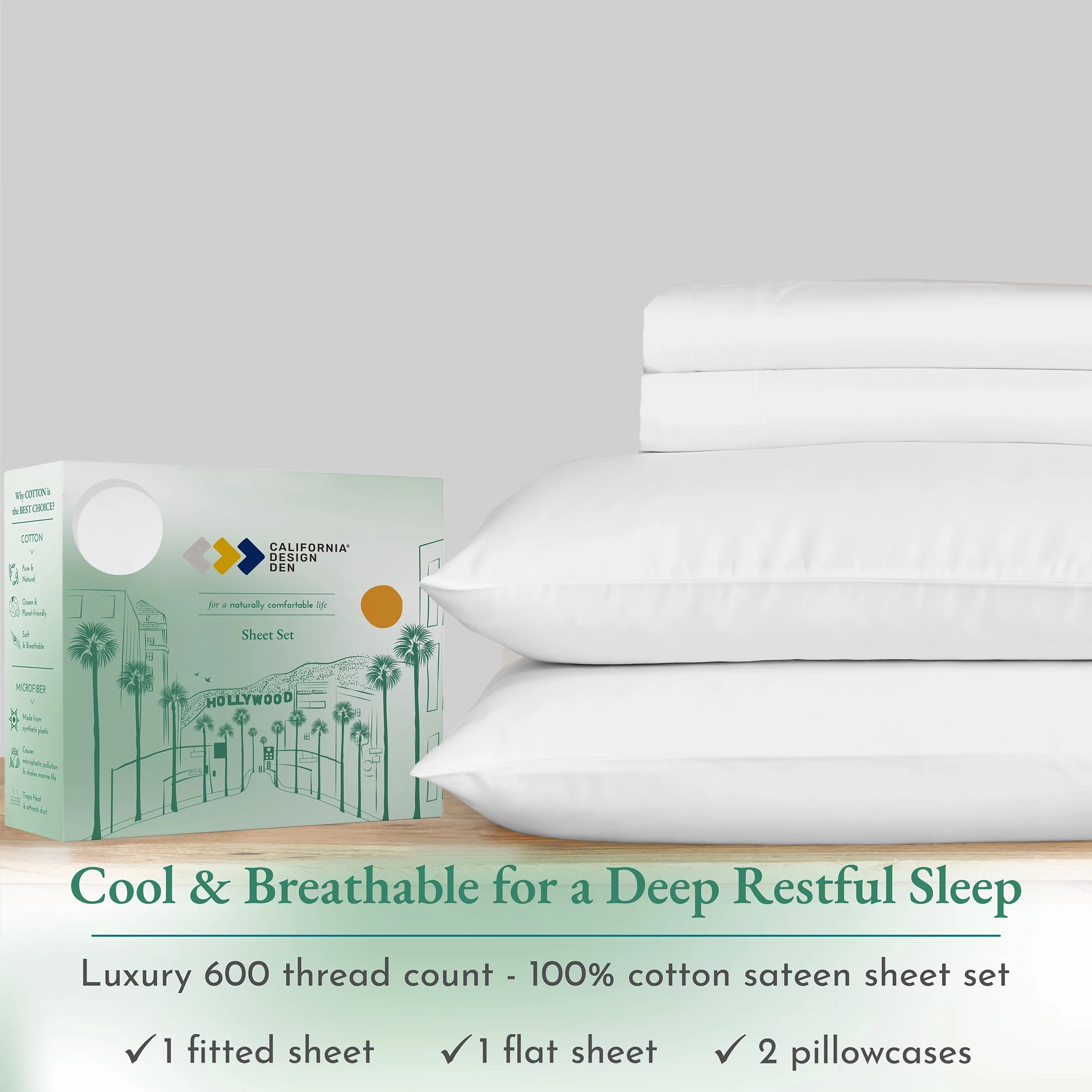 Beautyrest 600 Thread Count Khaki Cooling Cotton Blend 4 PC Sheet Set, California King