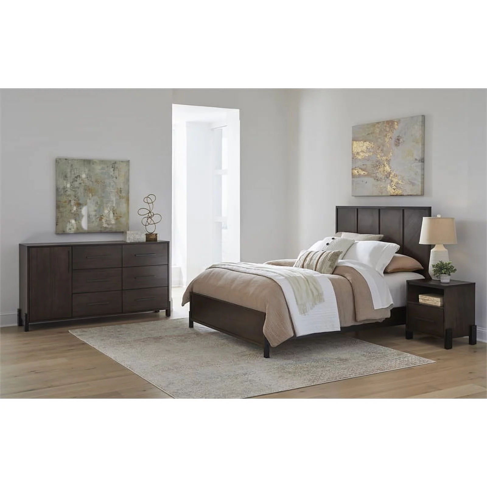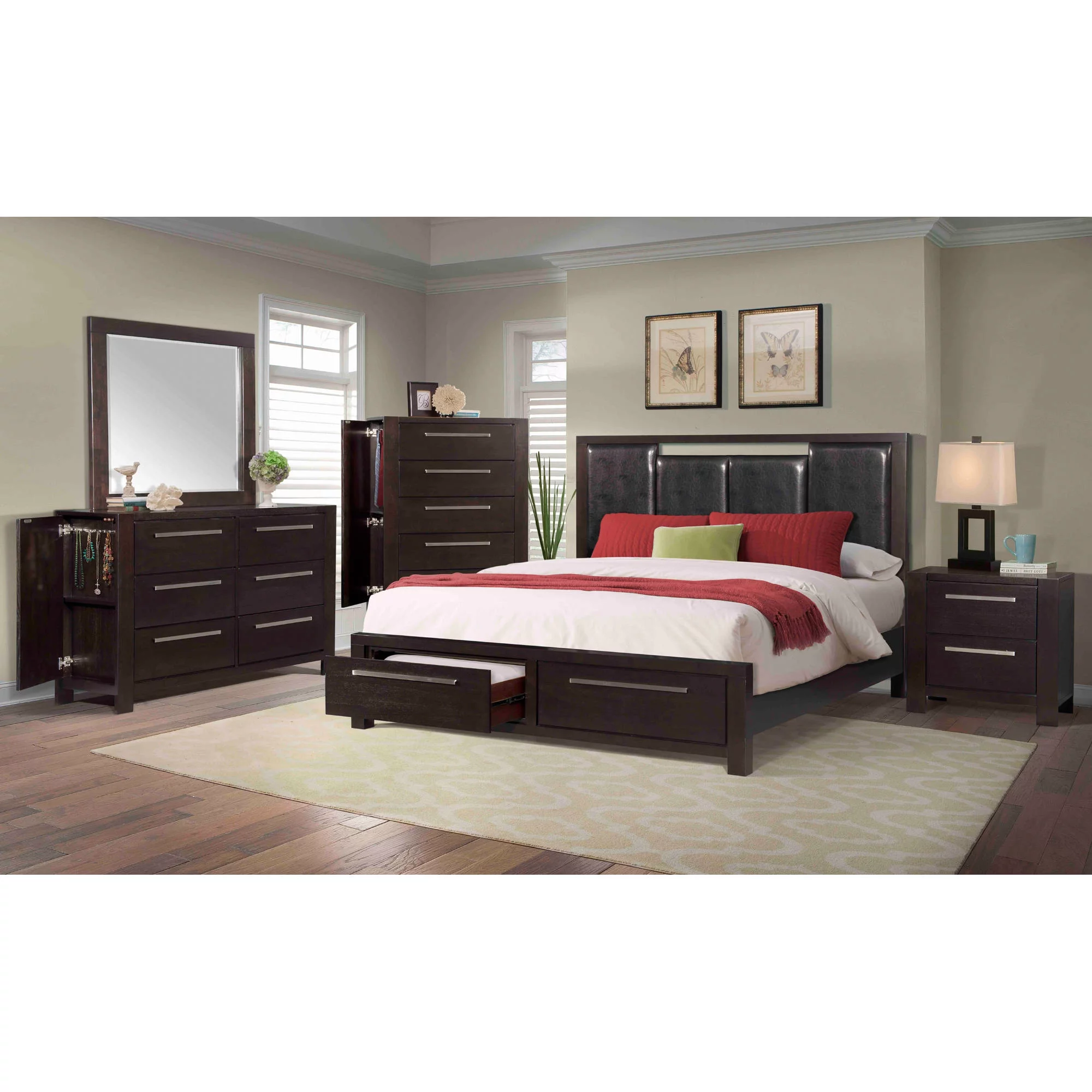 AFI Concord Platform Bed w/ Flat Panel Footboard - Color:Caramel Latte,Size:King-Color:Antique Walnut,Size:Twin