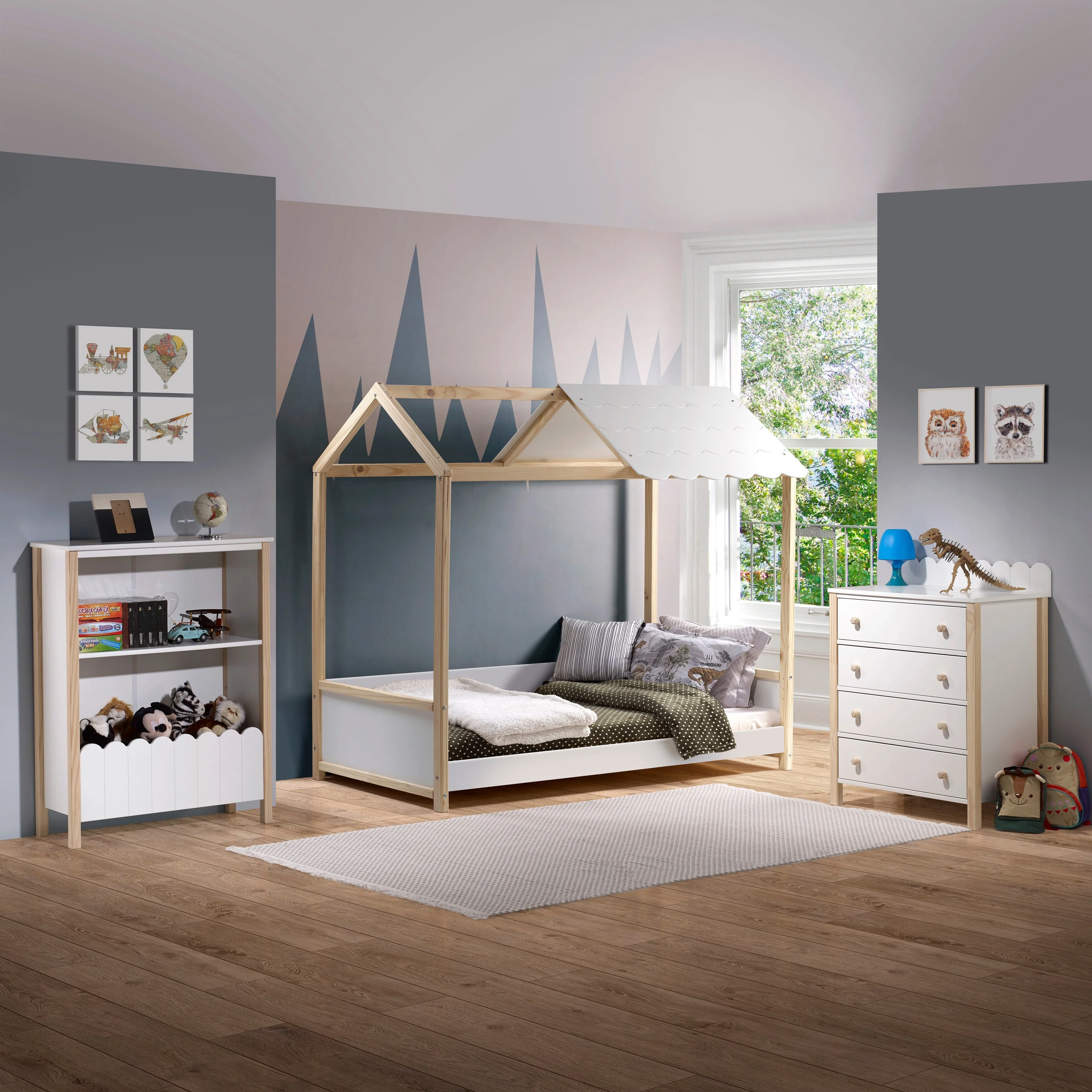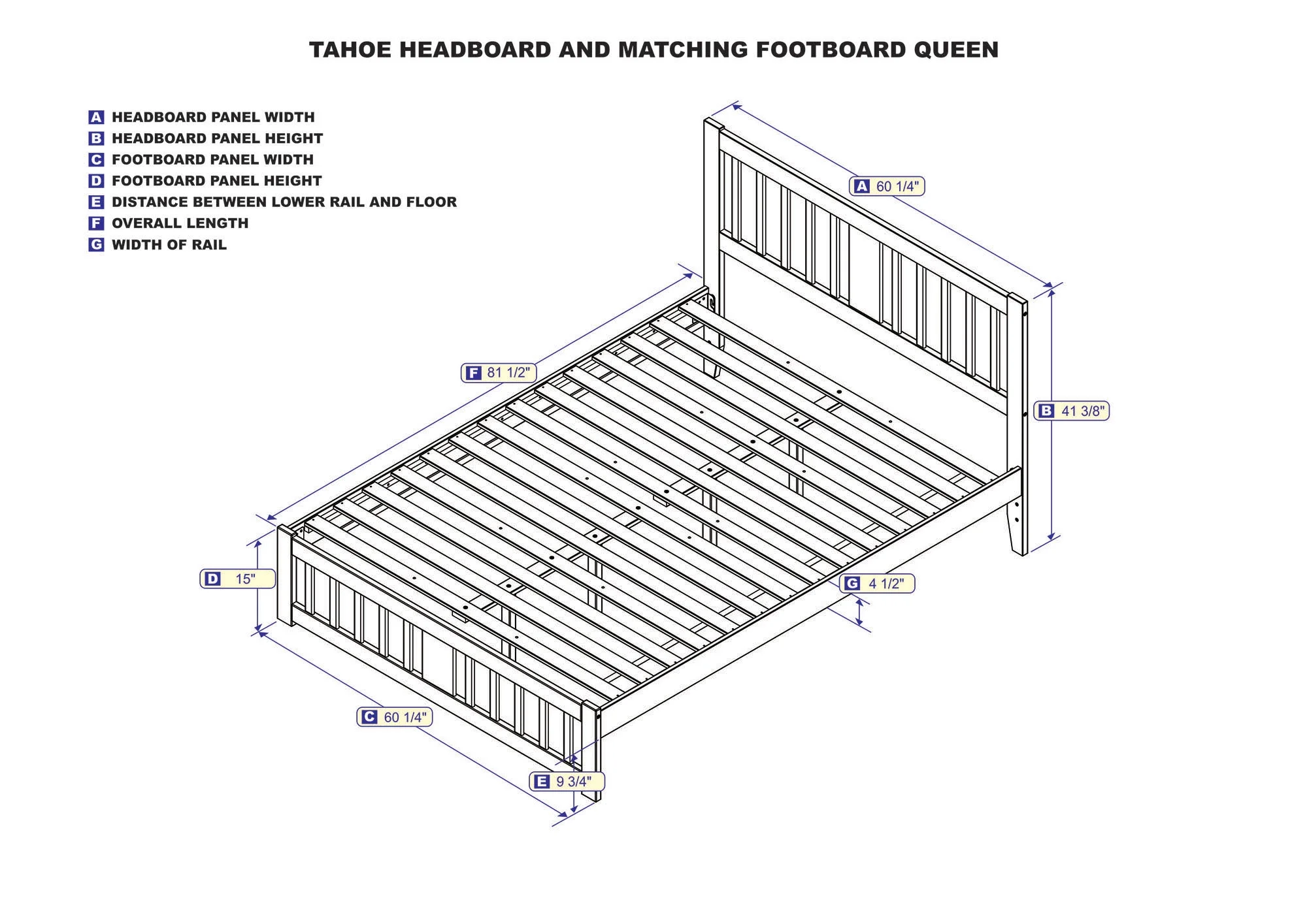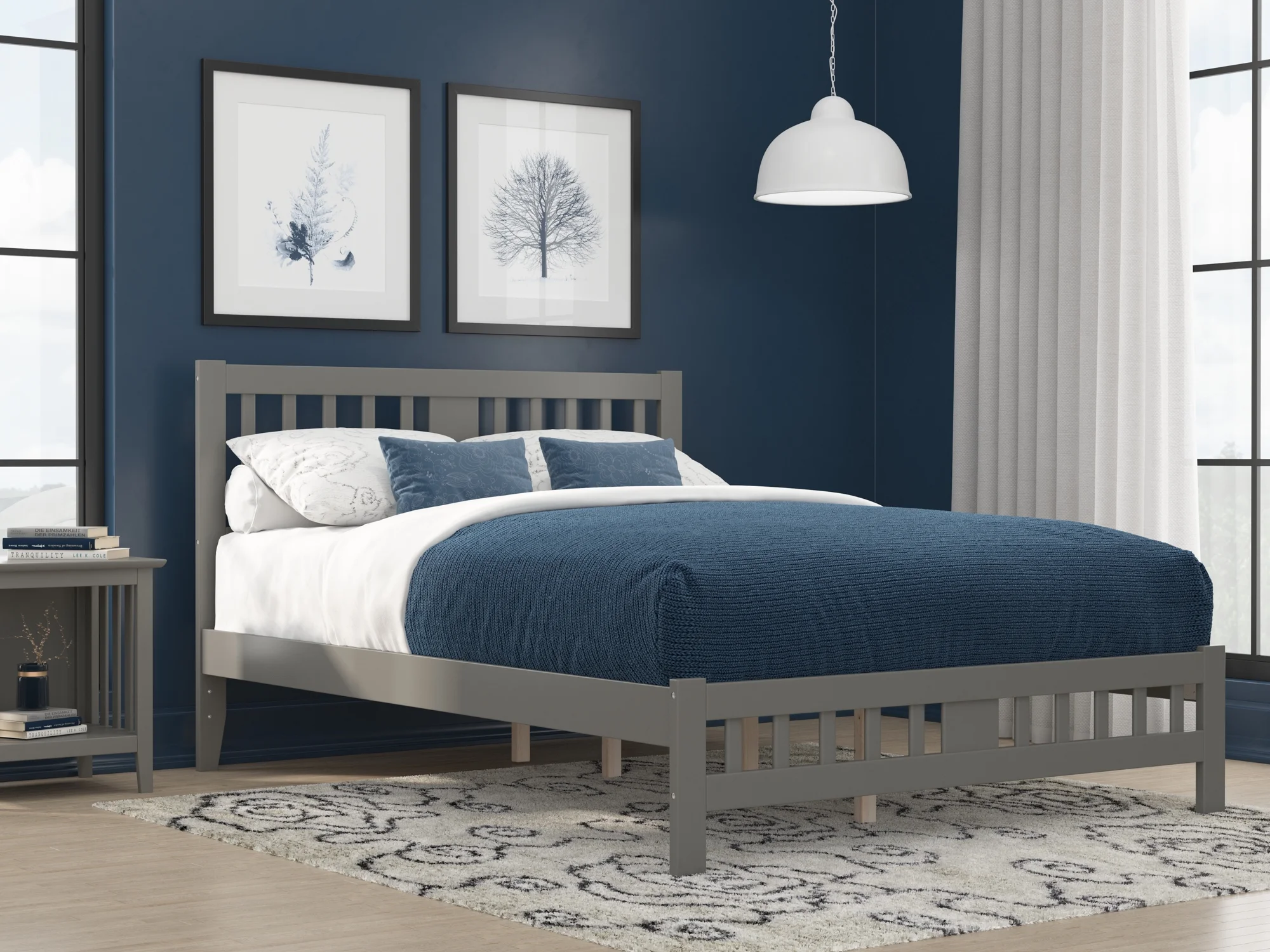 AFI Tahoe 14" Queen Wood Platform Bed with Slatted Headboard and Footboard, Grey