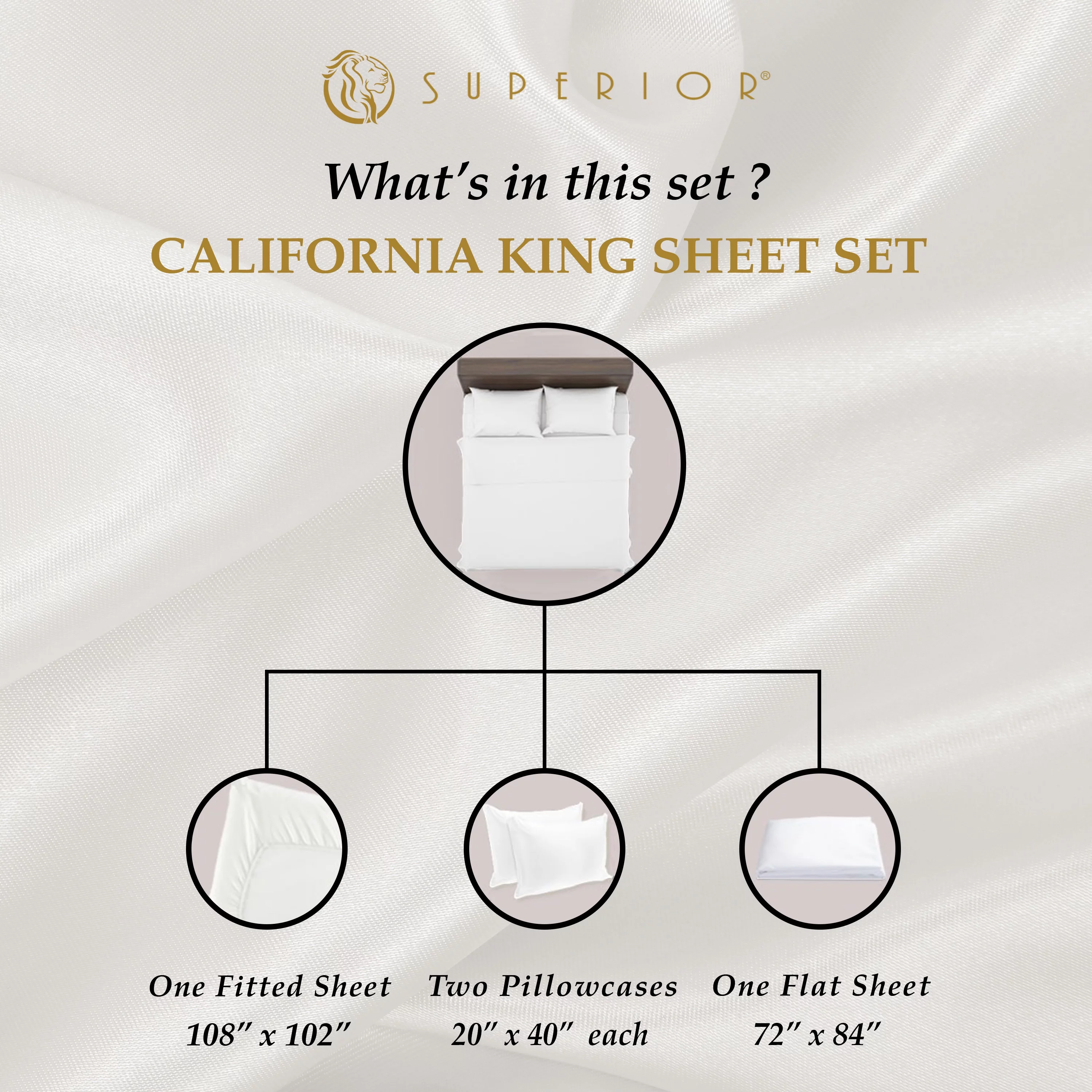 Superior 4-Piece 300 Thread Count Egyptian Cotton Sheet Set, California King, Ivory